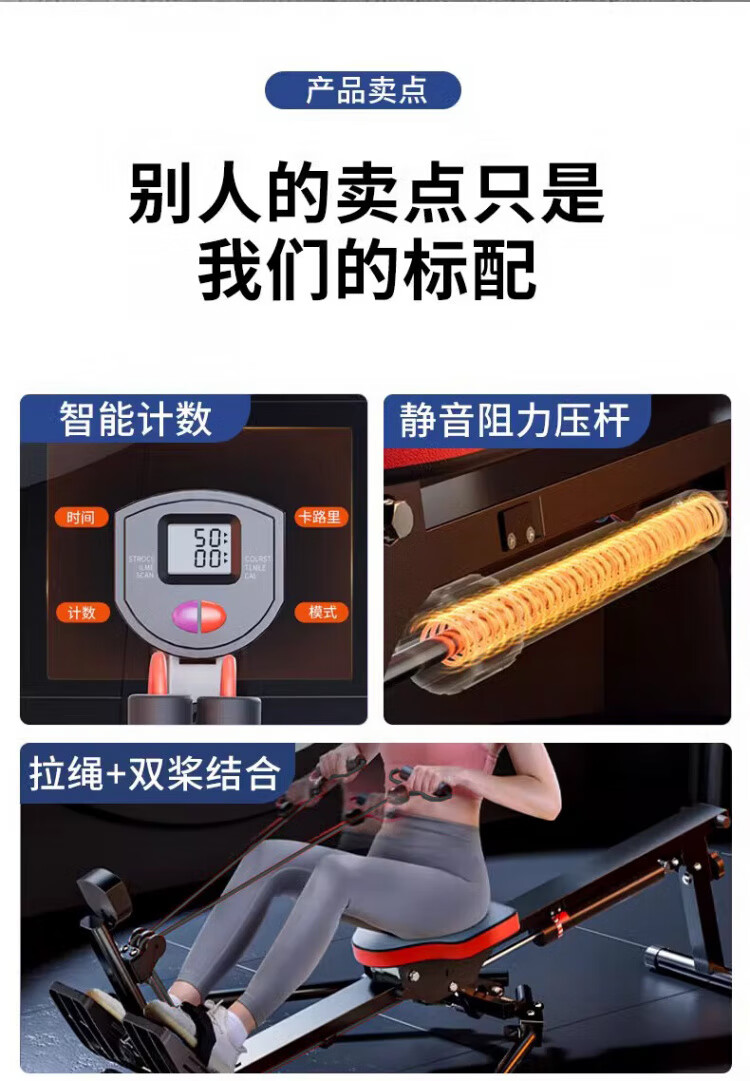 LISM rowing machine home simulation sculls hydraulic multi-function rowing machine indoor silent super fat-burning sports fitness equipment hydraulic 12-speed resistance/high-strength alloy track