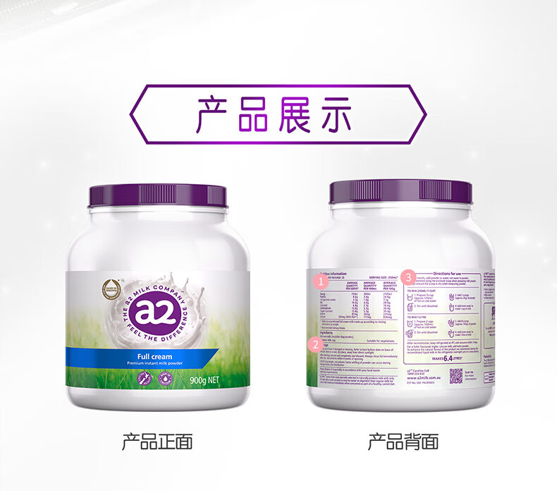 A2 Australian original imported purple ton barrel full-fat high calcium milk powder for middle-aged and elderly women 900g*2 (full-fat purple ton ton 900g/can)*2