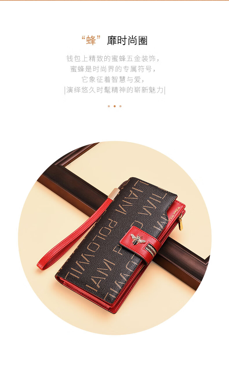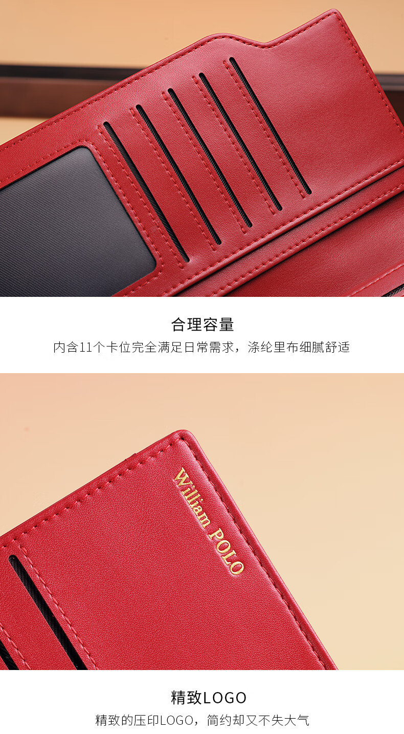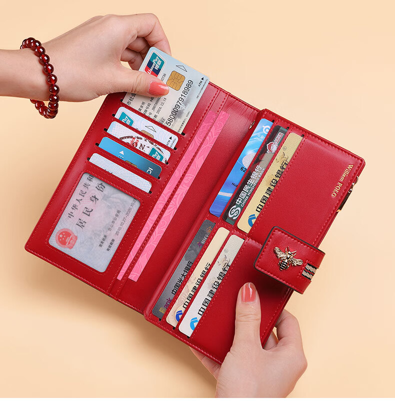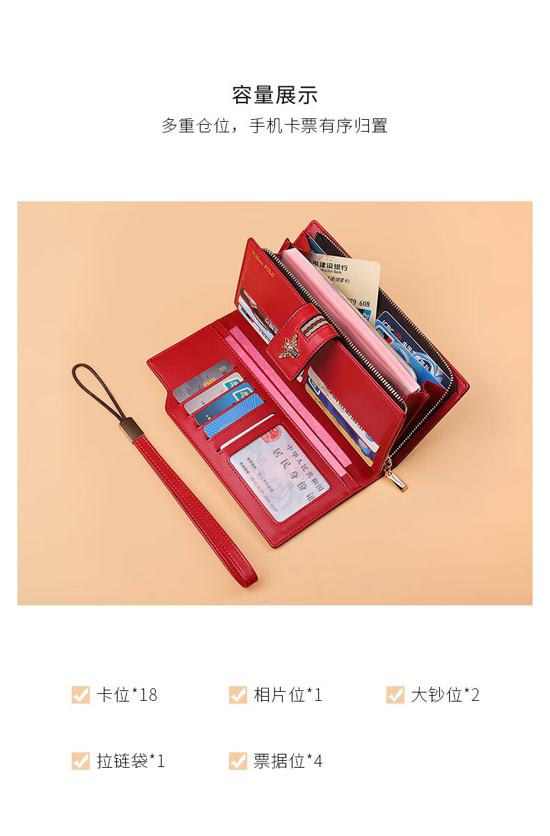 British Paul 2026 new anti-theft brush wallet for women, long leather wallet, large capacity, multiple card slots, multi-functional clutch bag for women, red first layer cowhide, anti-theft brush, anti-degaussing, wrist strap - 18 card slots