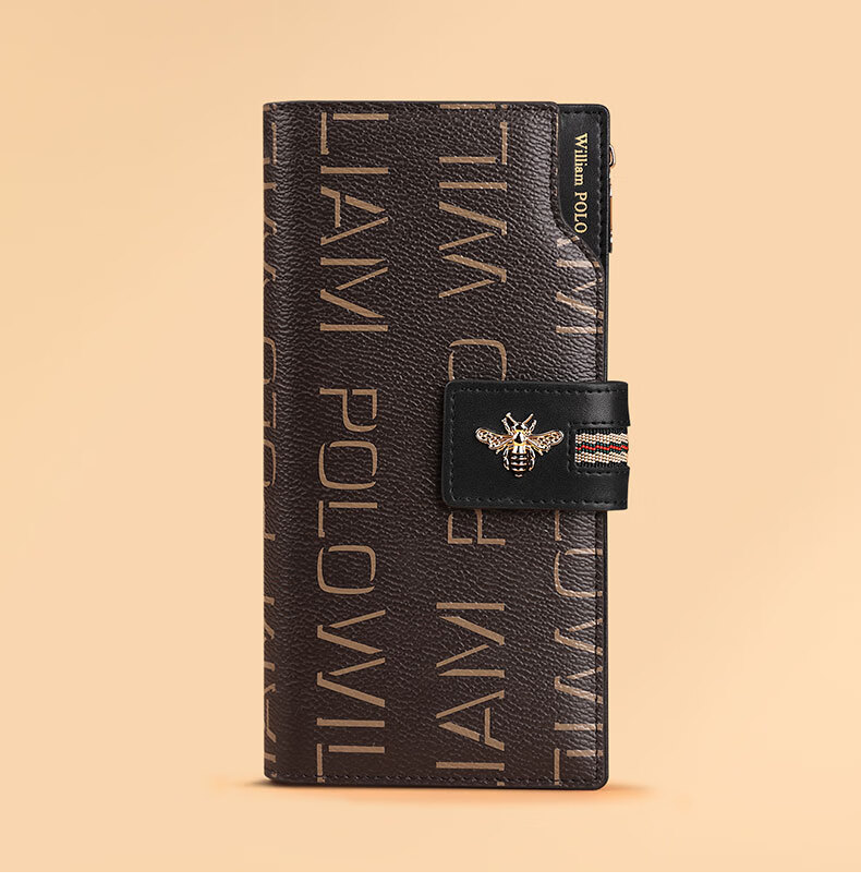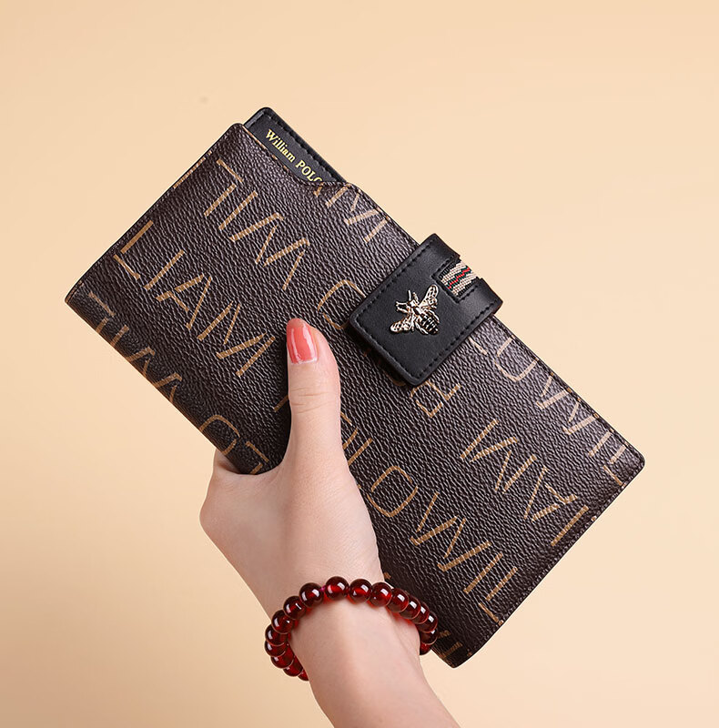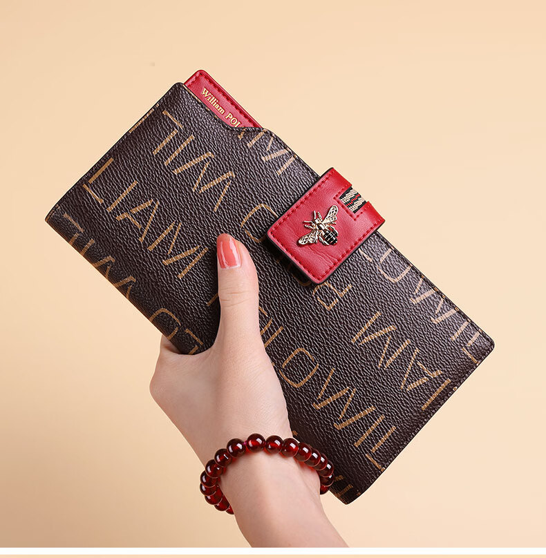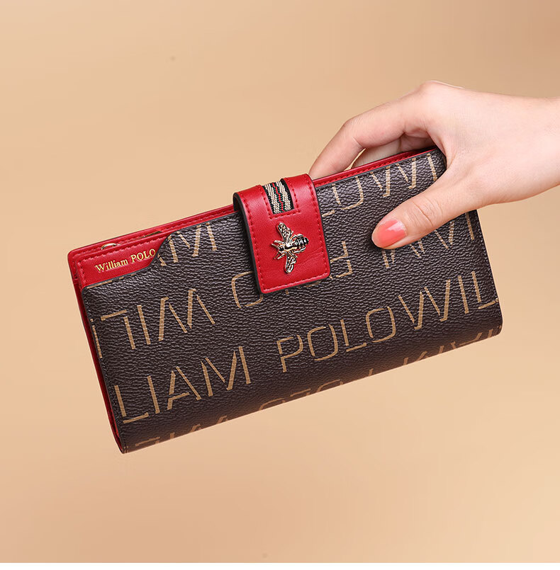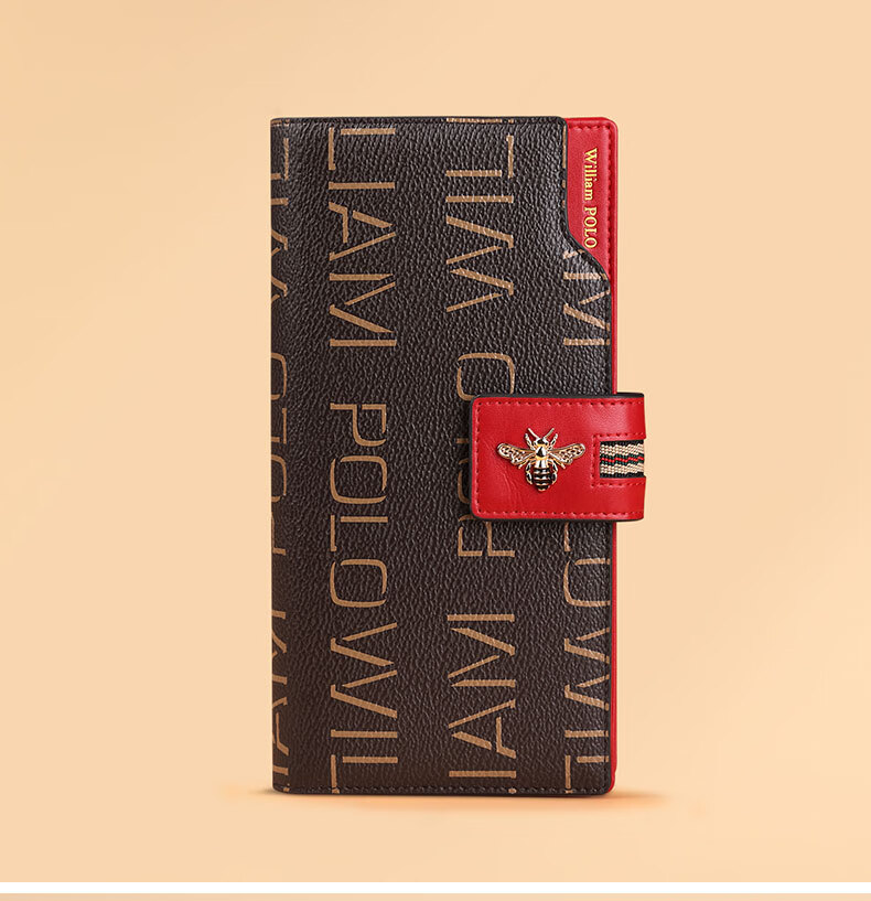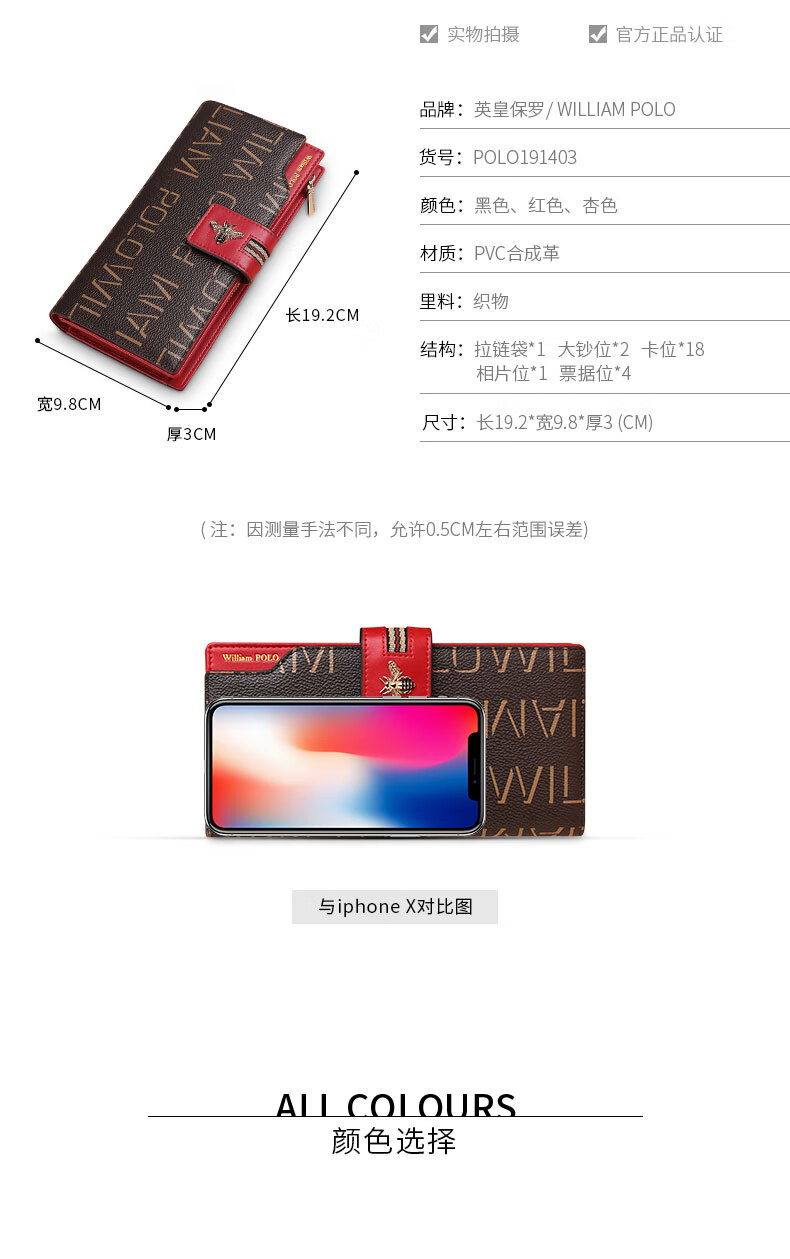 British Paul 2026 new anti-theft brush wallet for women, long leather wallet, large capacity, multiple card slots, multi-functional clutch bag for women, red first layer cowhide, anti-theft brush, anti-degaussing, wrist strap - 18 card slots