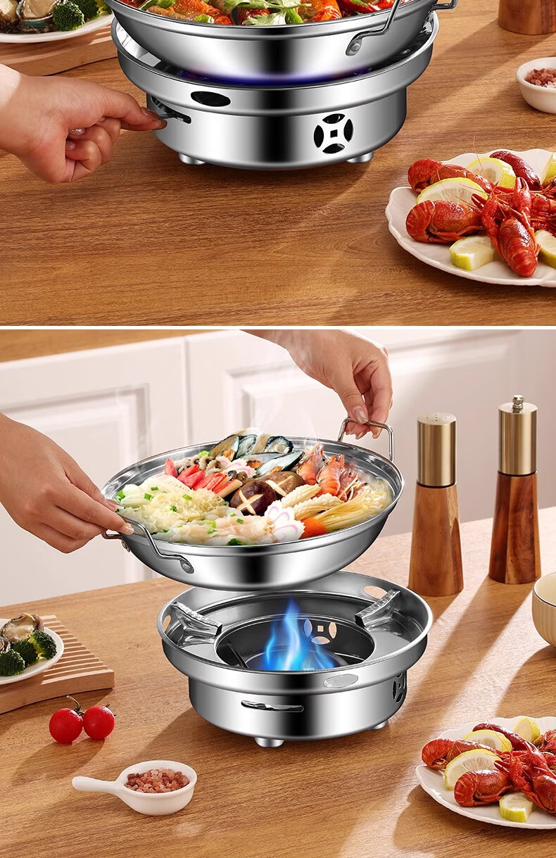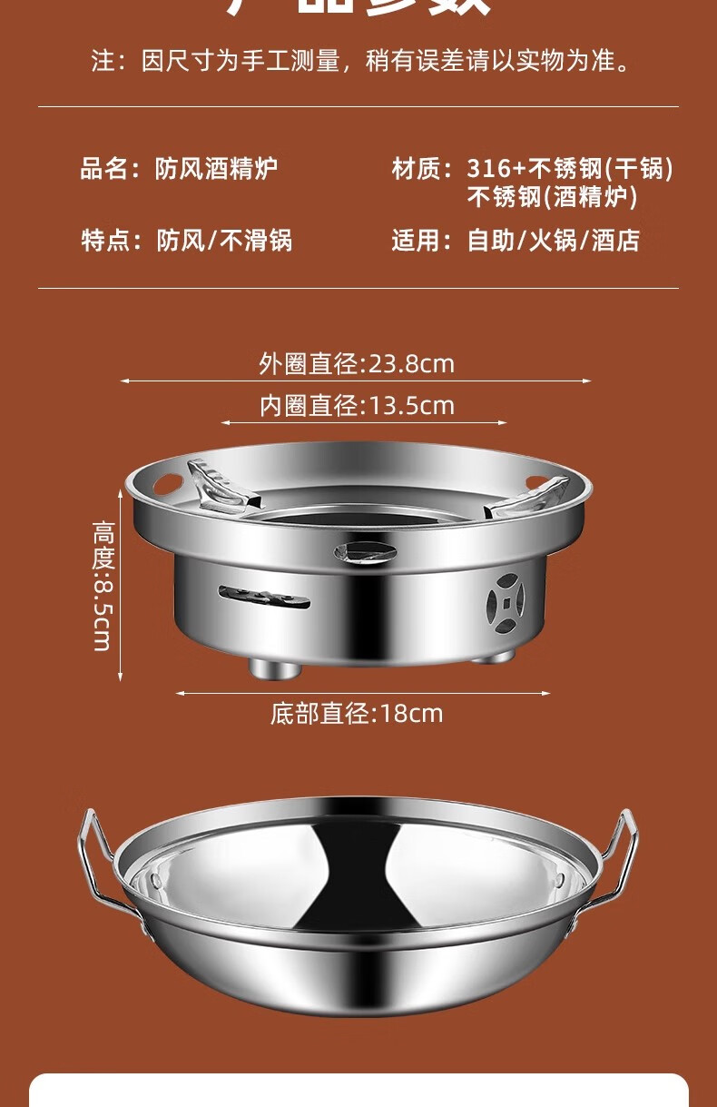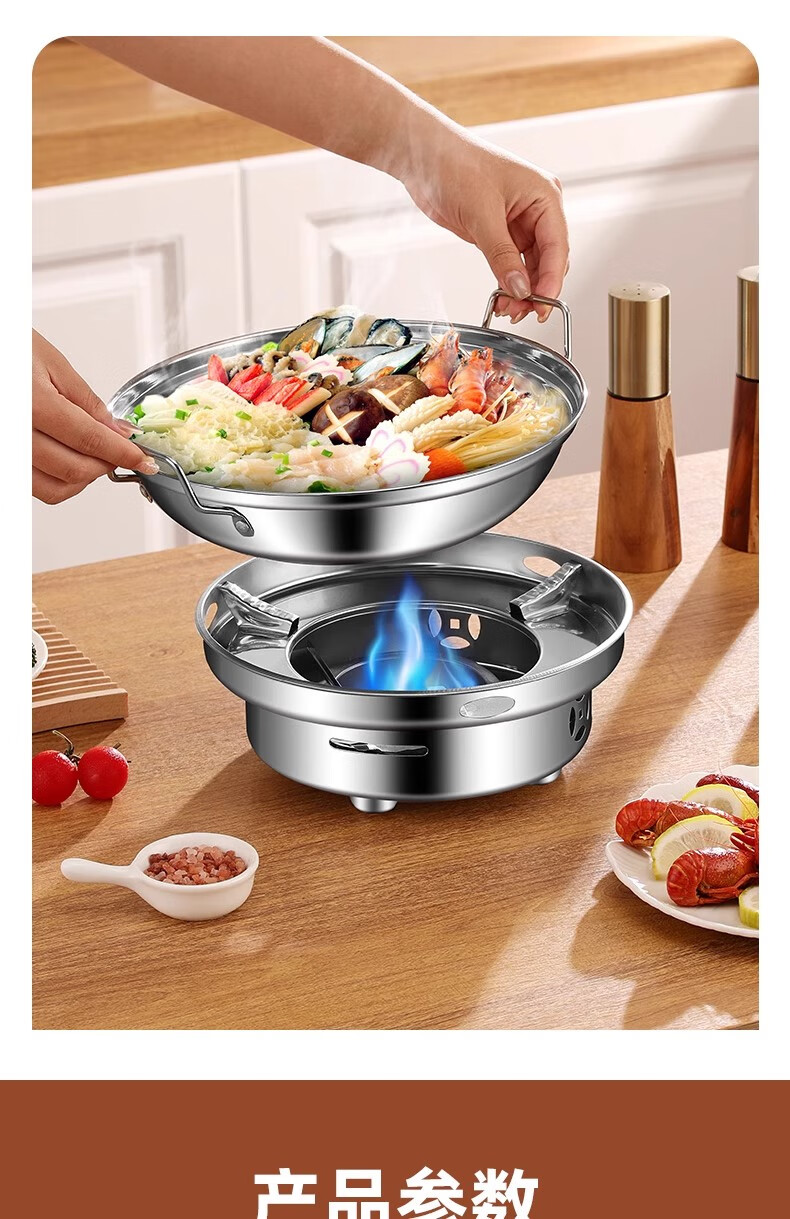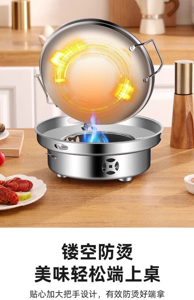 FVFH German griddle pot alcohol stove special stainless steel 316 food grade alcohol stove small hot pot for home use 11 inches - with lid 316 antibacterial steel small hot pot + alcohol stove 26cm