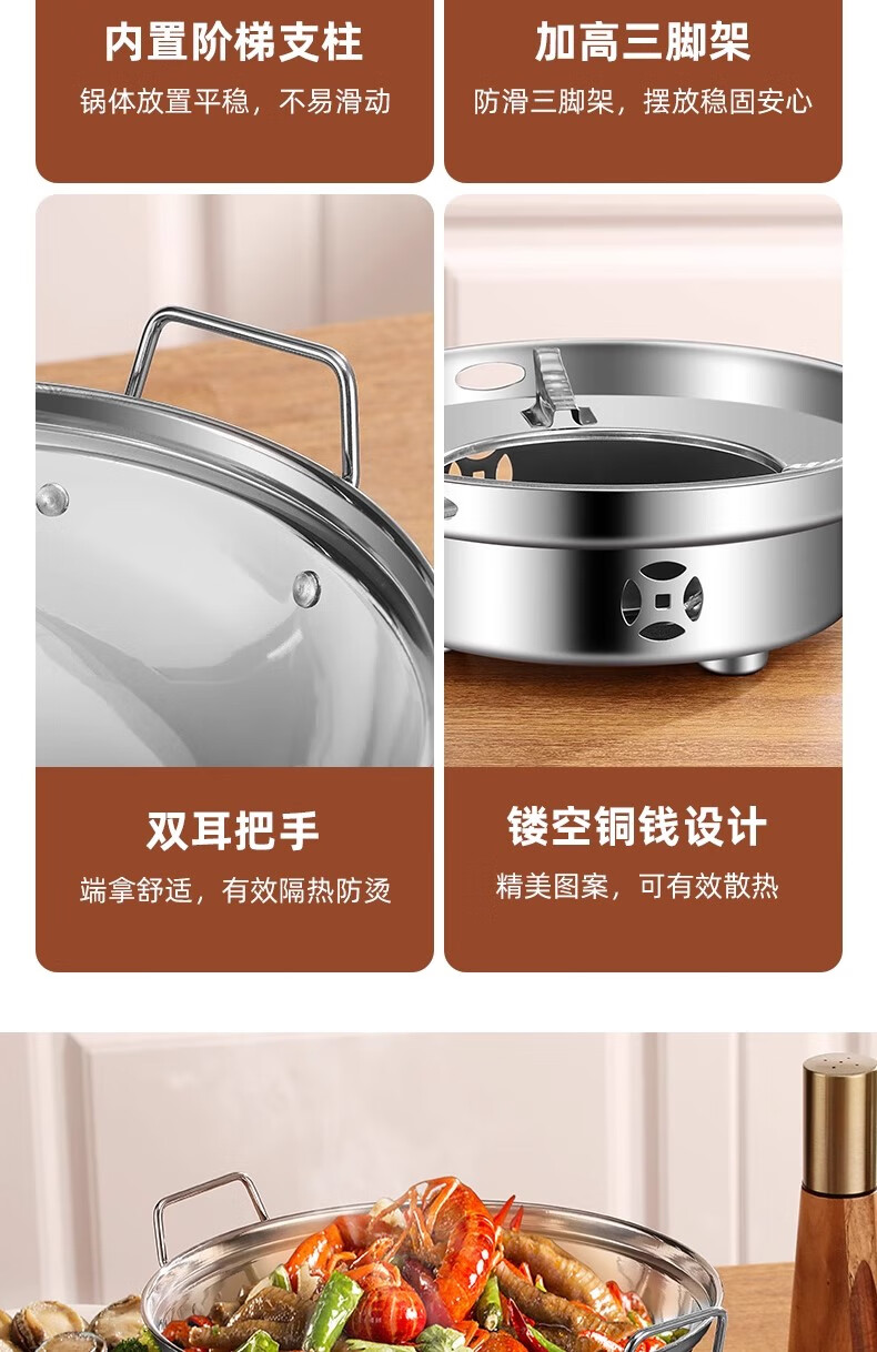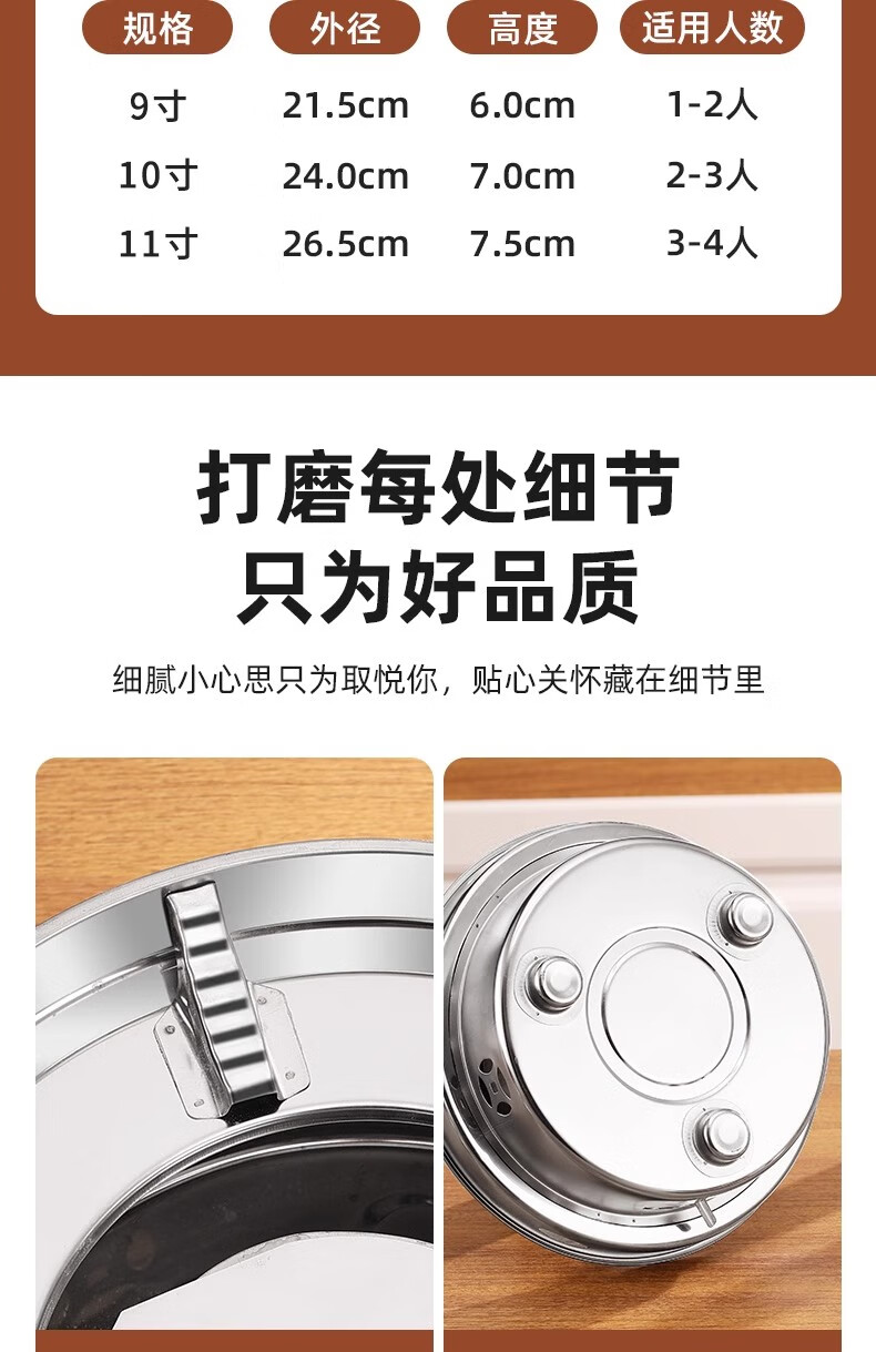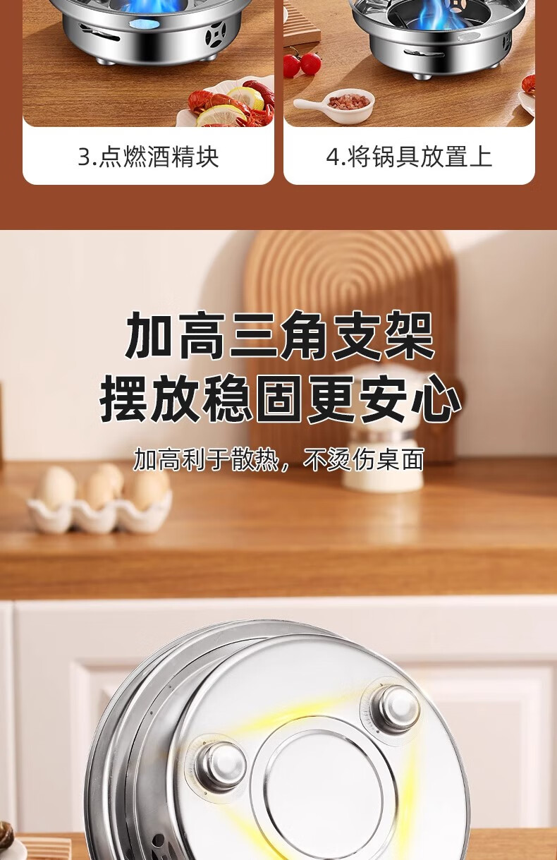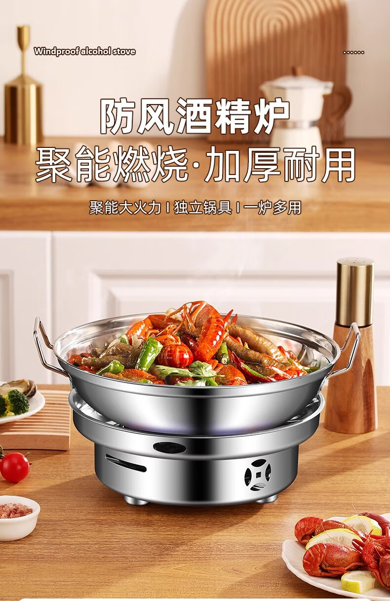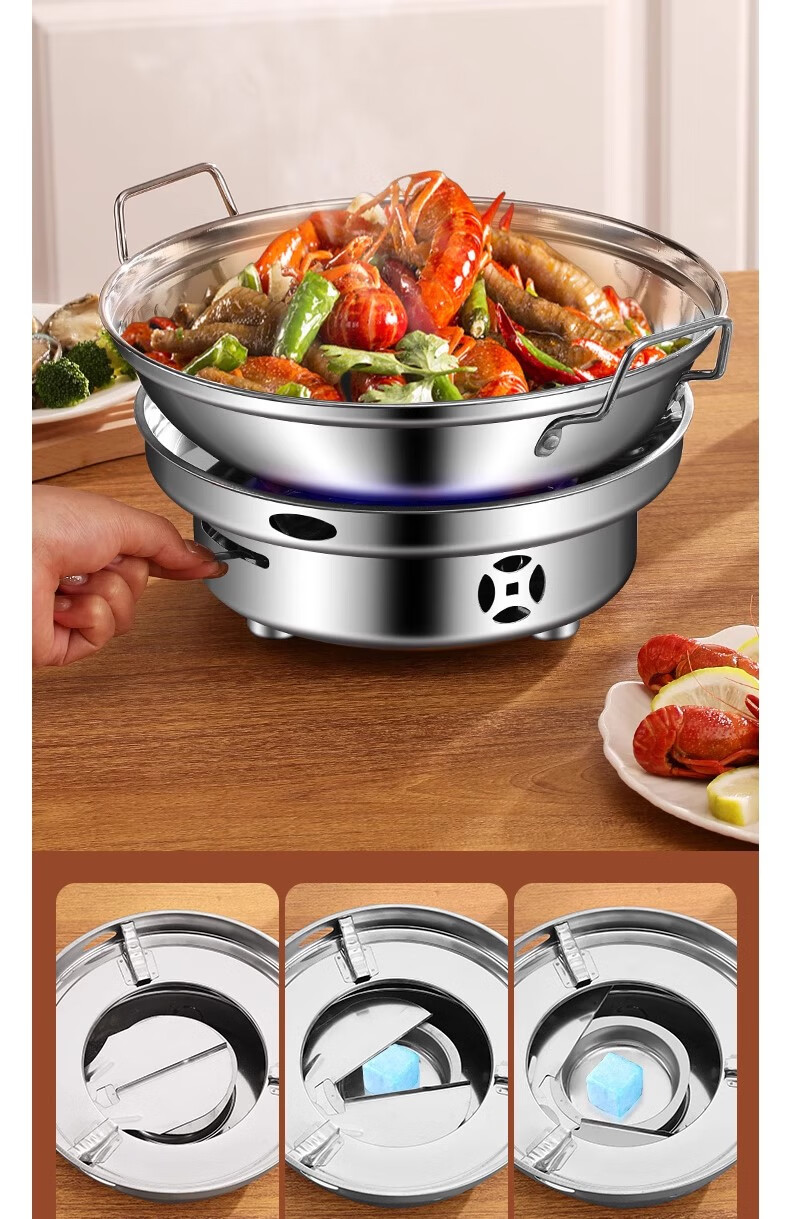 FVFH German griddle pot alcohol stove special stainless steel 316 food grade alcohol stove small hot pot for home use 11 inches - with lid 316 antibacterial steel small hot pot + alcohol stove 26cm