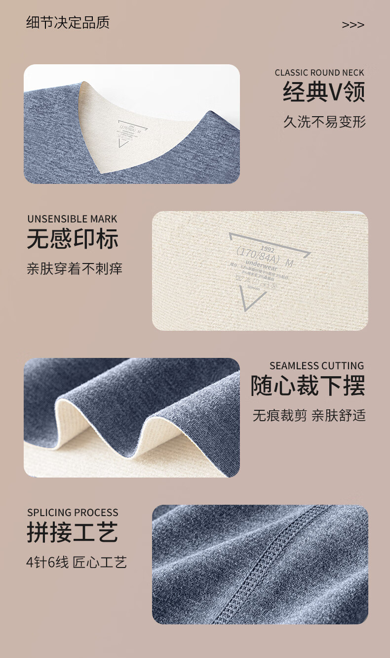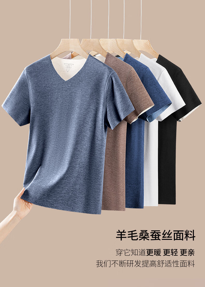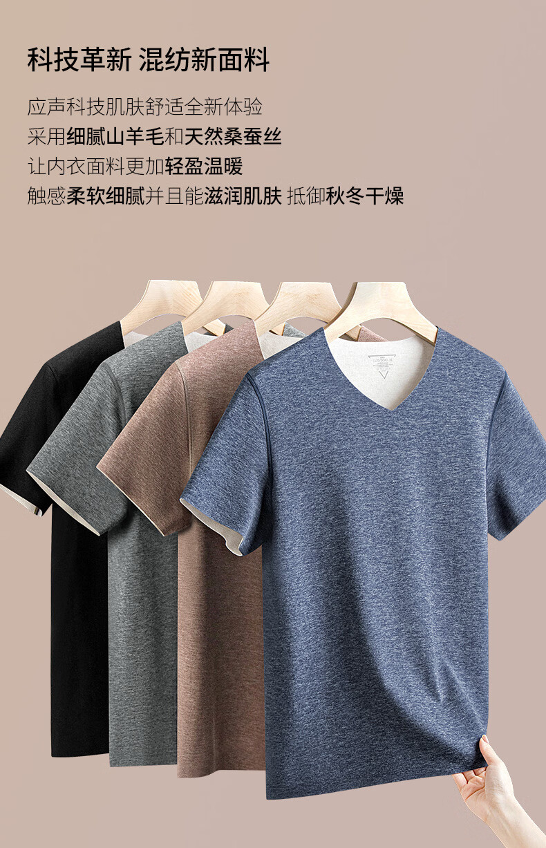 OLIDGE wool mulberry silk velvet warm seamless short-sleeved underwear men's winter v-neck inner wear bottoming shirt autumn clothes men's fashion white L (120-135 pounds)