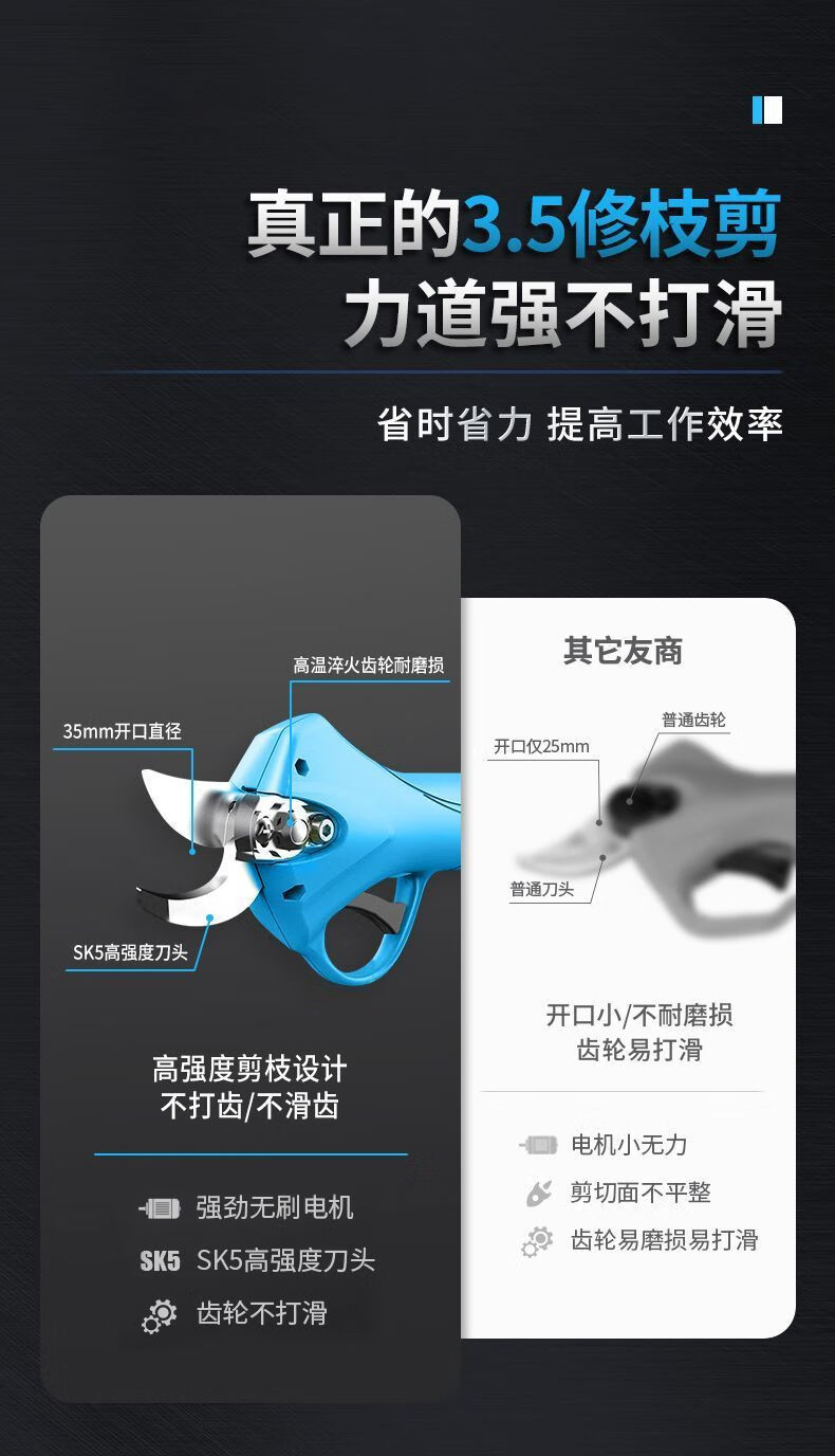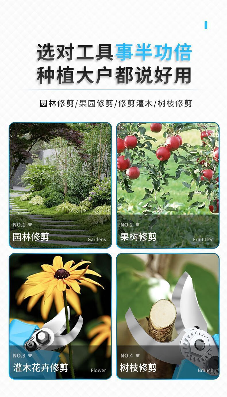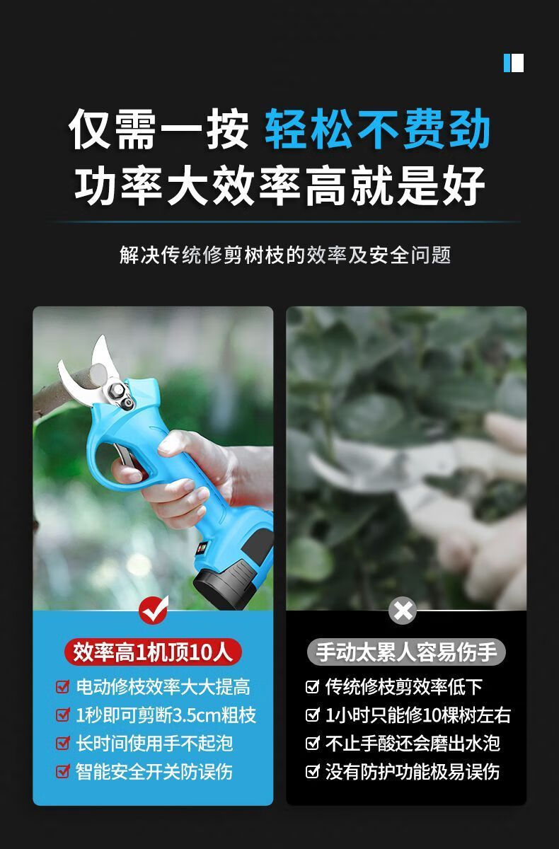 Pupan Electric Pruning Scissors Powerful Rechargeable Thick Branch Fruit Tree Scissors Cordless Multifunctional Branch Pruning Scissors 3cm Powerful 2 Batteries + Two Blades + Waist Bag