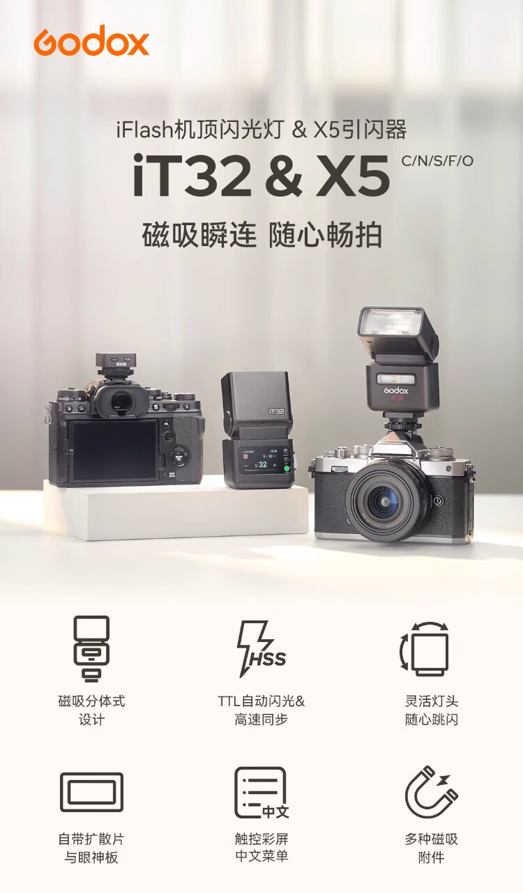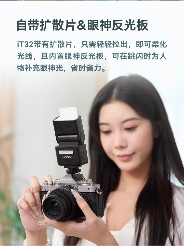 Godox, join the membership and receive gifts IT32 mini camera flash, small portable TTL high-speed synchronization, automatic metering, outdoor shooting, hot shoe camera, external on-camera flash, Sony version X5 base