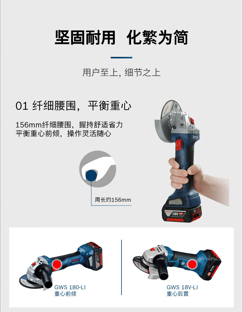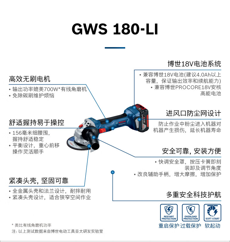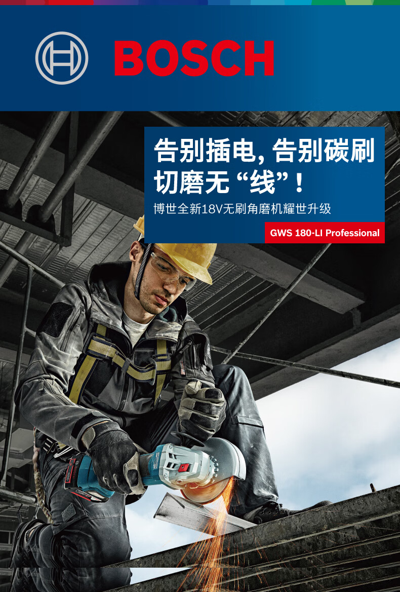 Bosch BOSCH rechargeable angle grinder GWS180Li brushless 18V lithium electric cutting machine metal wood cutting GWS180-4.0 single battery no gifts