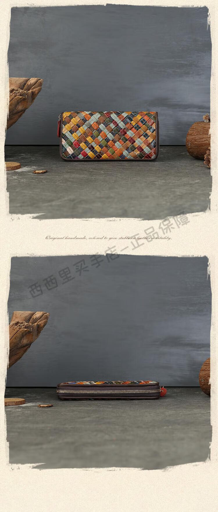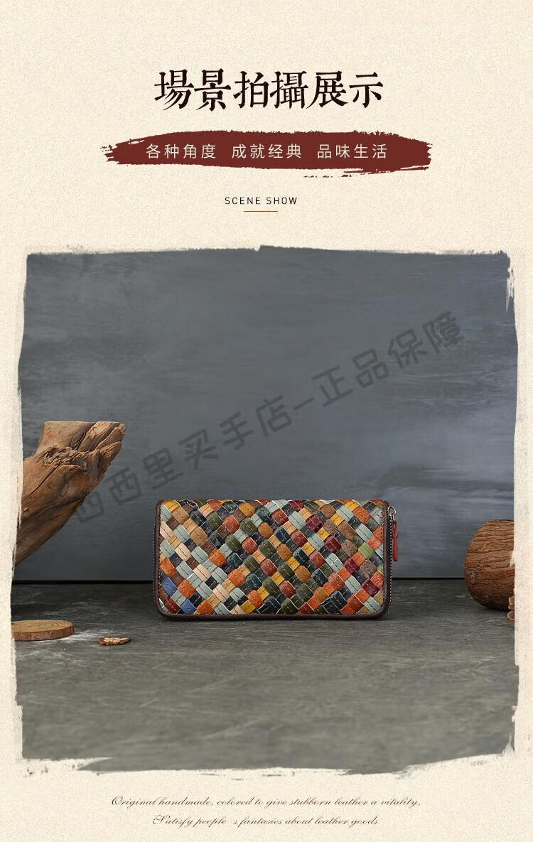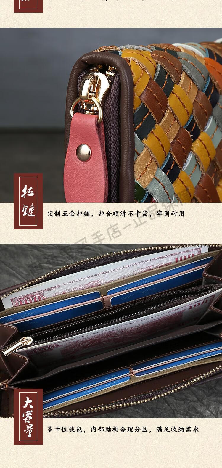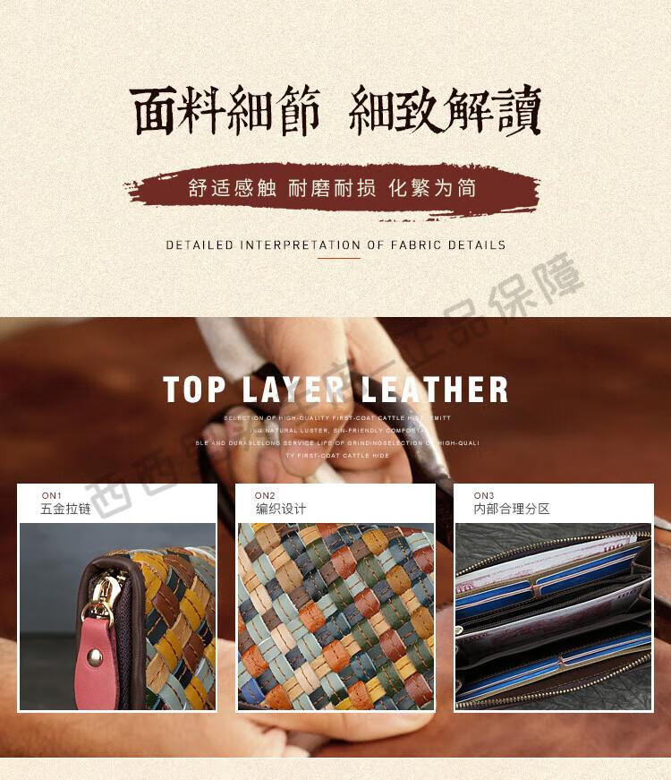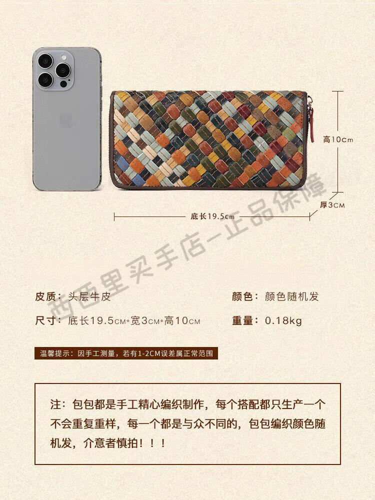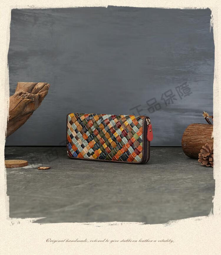 ANYSMIC luxury brand bag women's genuine leather woven long wallet women's 2025 new multi-card zipper bag women's color
