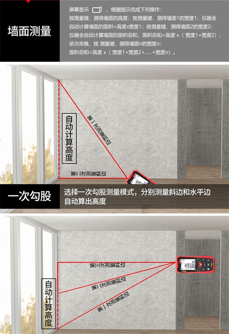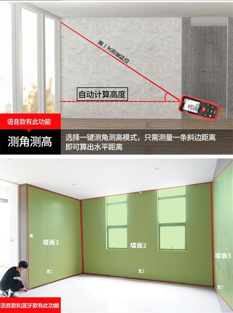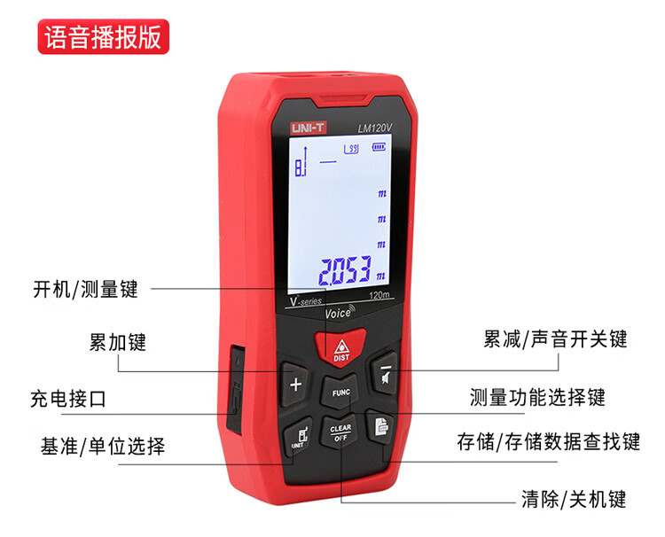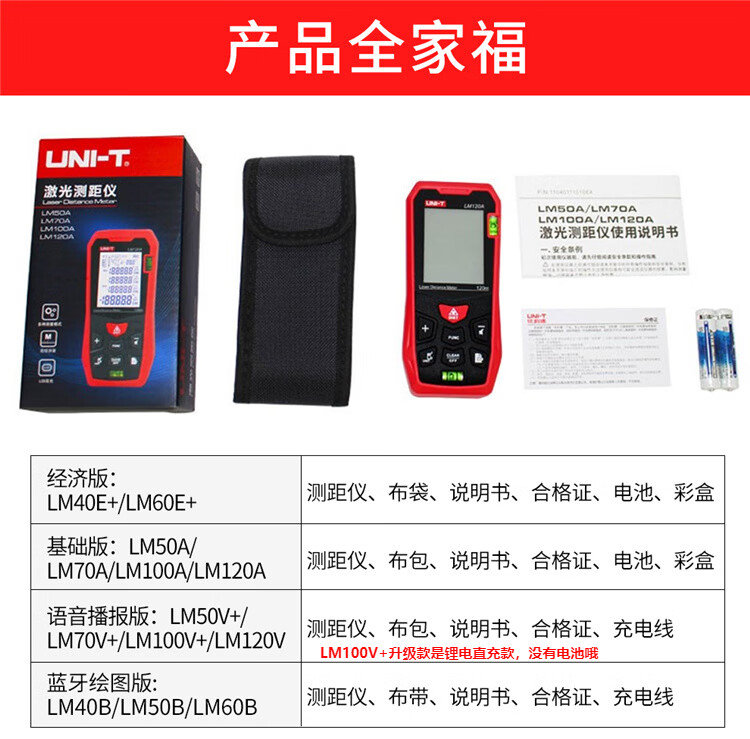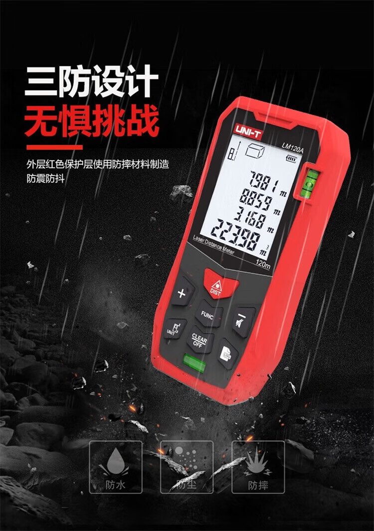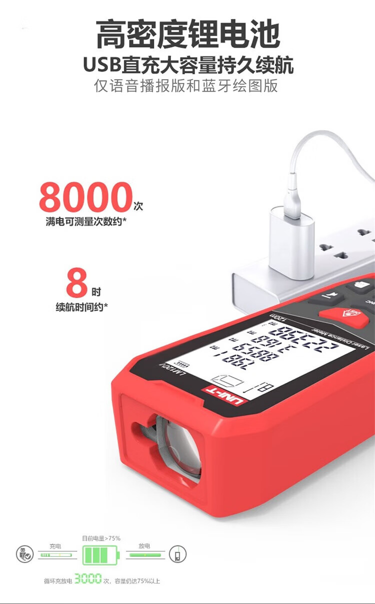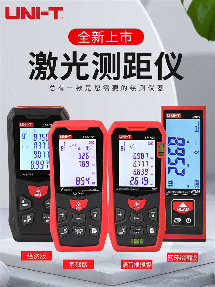 UNI-T laser rangefinder high-precision infrared laser ruler handheld indoor and outdoor measuring room inspection instrument electronic ruler lithium battery outdoor model green light 100 meters LM100GS