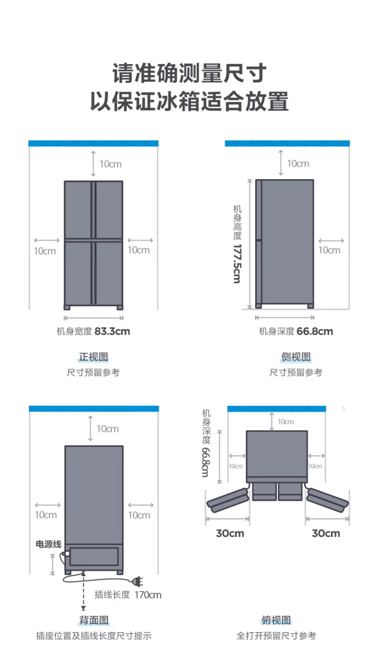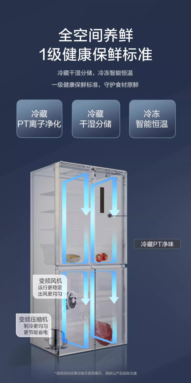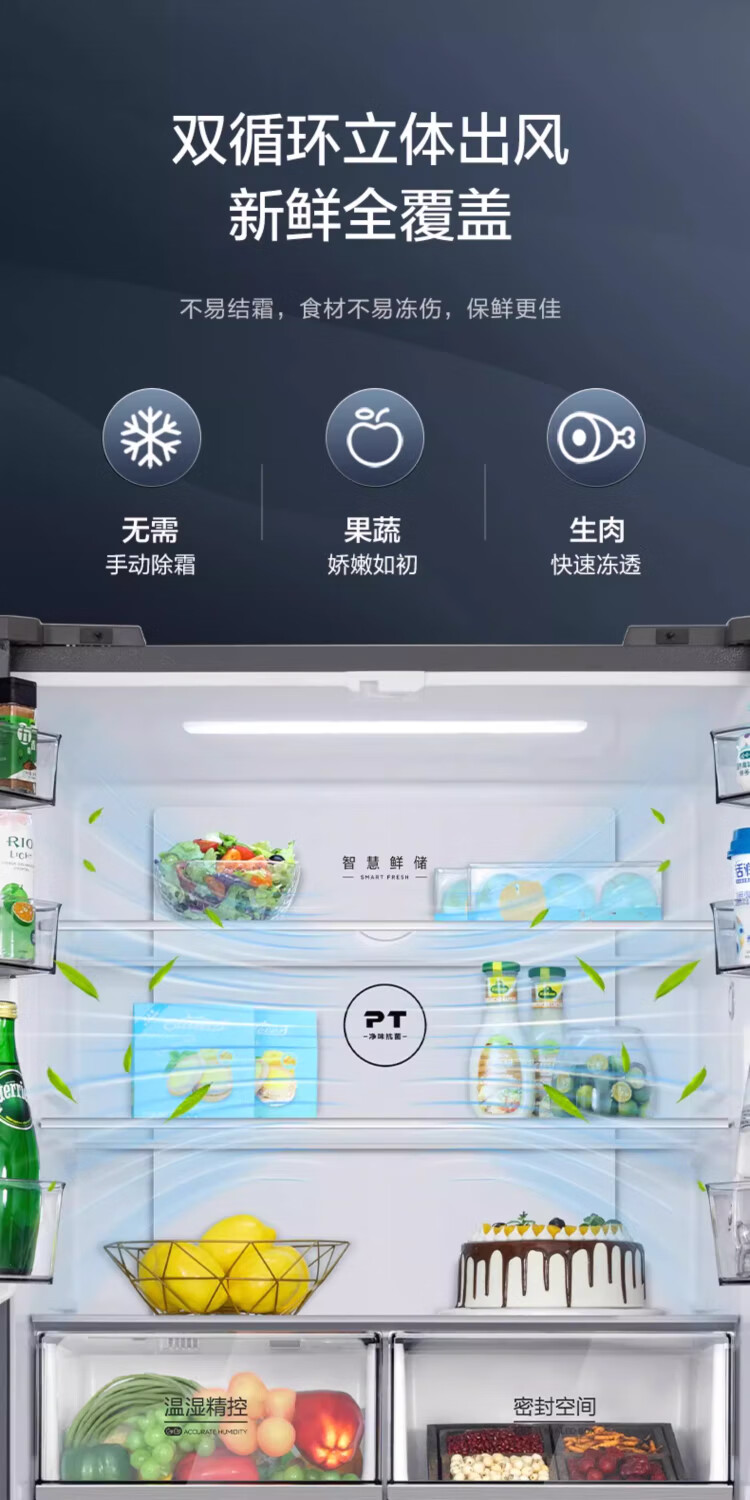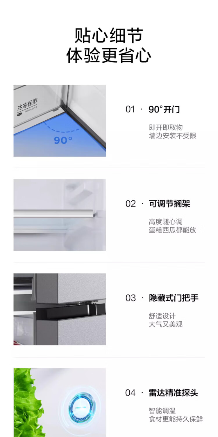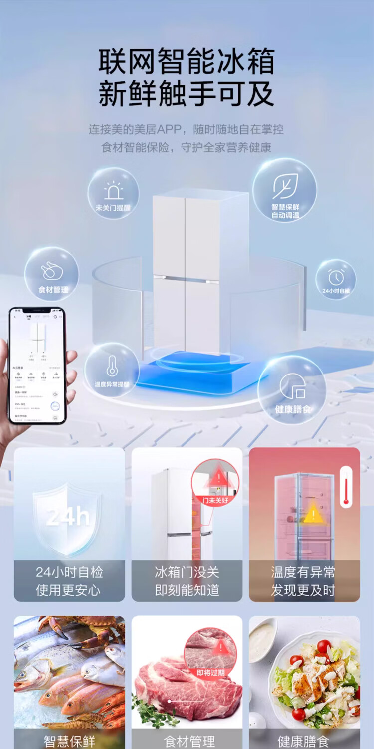Midea 480-liter cross-door refrigerator, first-level energy-efficiency home smart variable frequency air-cooled, frost-free, large-capacity four-door energy-saving home appliance BCD-480WSPZM(E)
