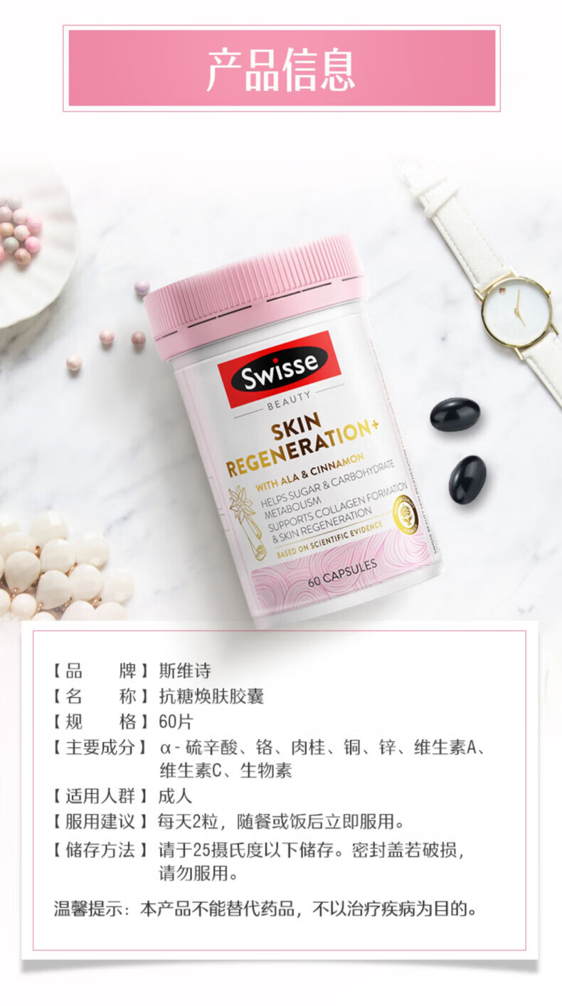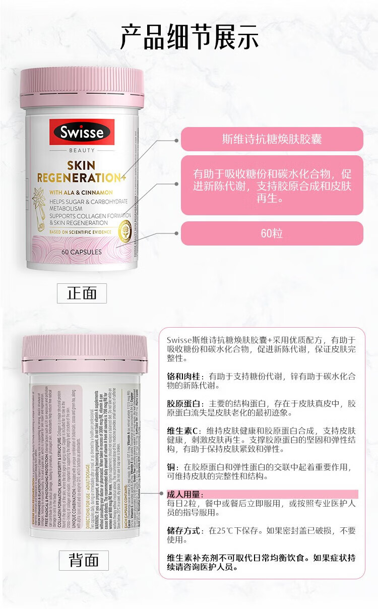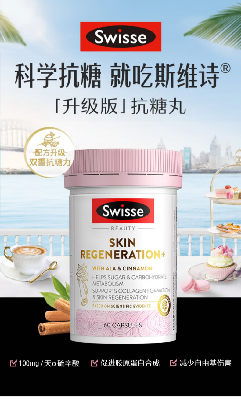 Swisse anti-sugar rejuvenating capsules upgraded anti-sugar 2.0 oxygen sugar double anti-2 times lipoic acid brightening skin color anti-sugar pills new upgraded anti-sugar 2.0 60 capsules * 1 bottle