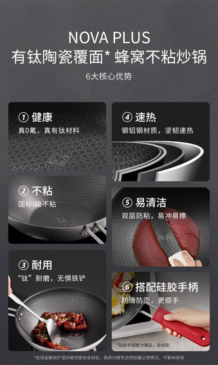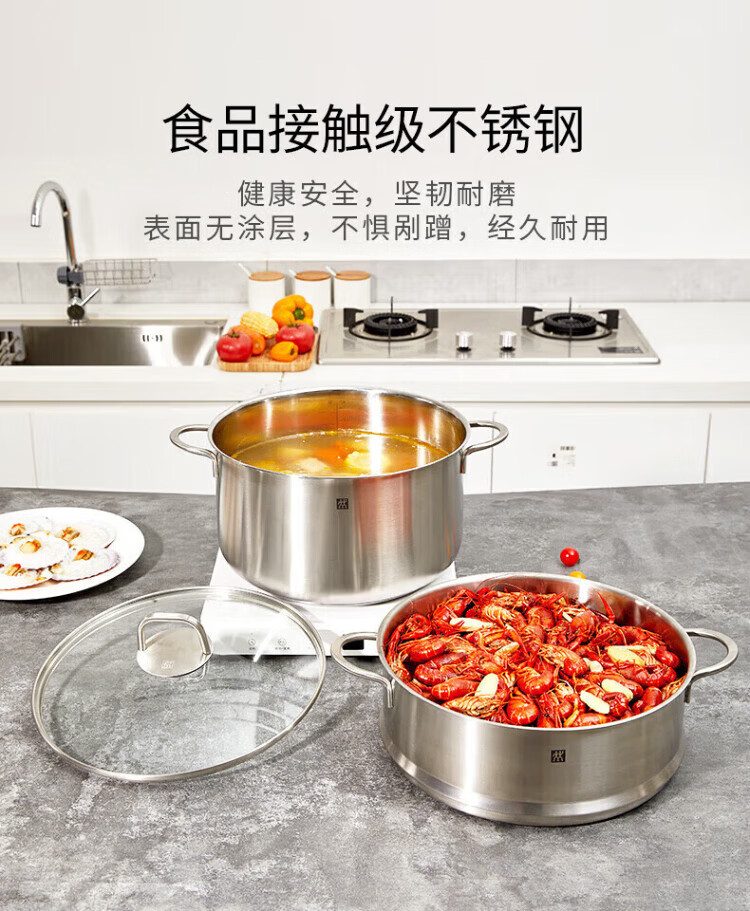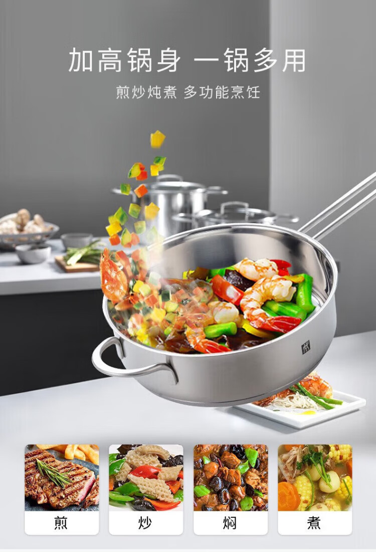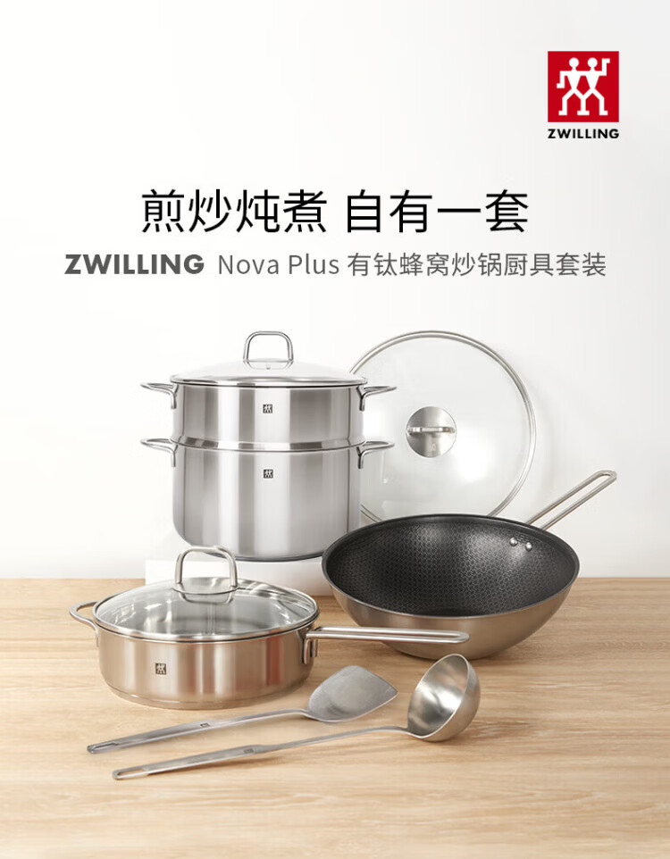 ZWILLING pot set includes titanium honeycomb stainless steel wok, pan, frying pan, soup pot, spatula, spoon, kitchenware set, titanium wok + soup pot, steamer + frying pan + milk pot + spatula, 6-piece set