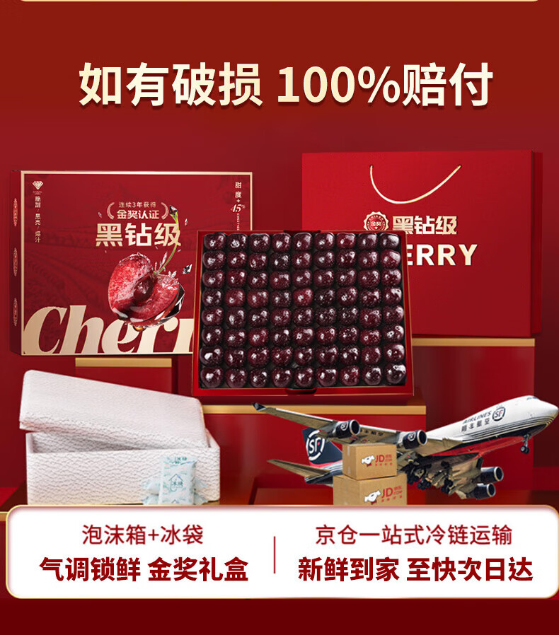 Uncle Sam Chilean Cherries JD-Next Day Delivery to Many Places 4J Grade Imported Cherry Fruit Gift Box New Year's Gift Box 3kg (Net Weight) 80% Choice - Great Deals Delicious Gift Box Top Version | Crispy and Sweet 4J Super Big Mac Fruit 32-34mm
