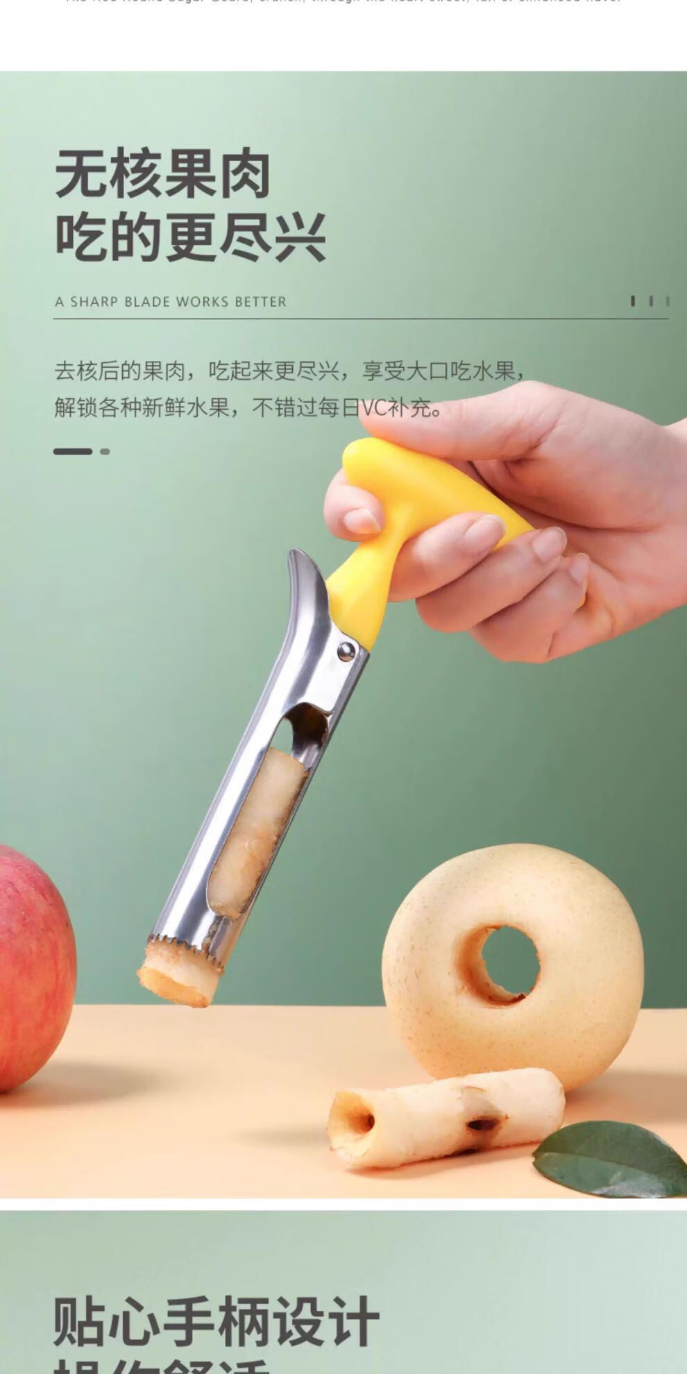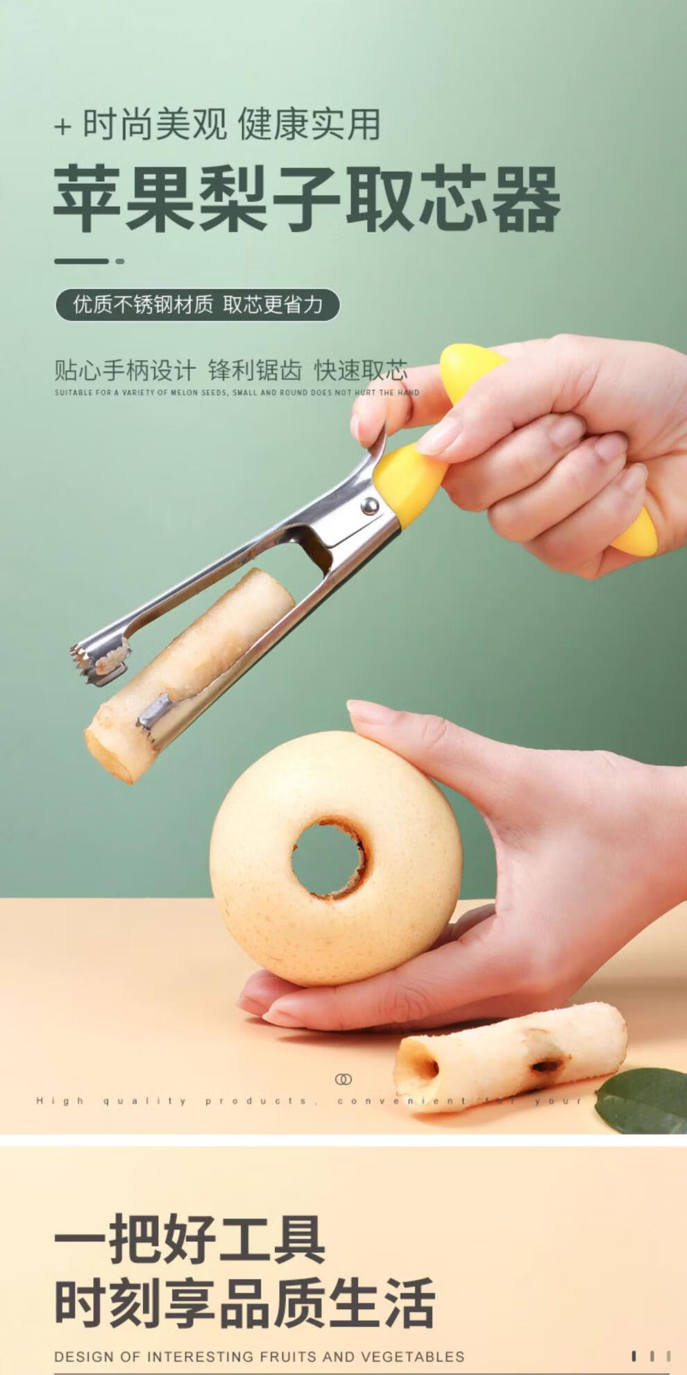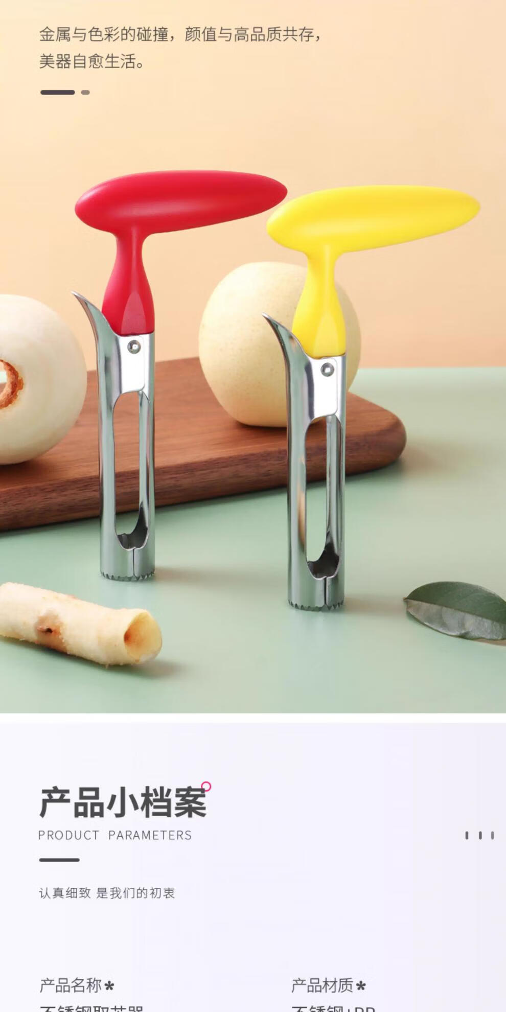 LZJV German core remover stainless steel household apple pear fruit push-type multi-functional coring and seed removal tool stainless steel core remover red