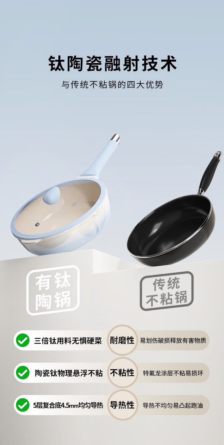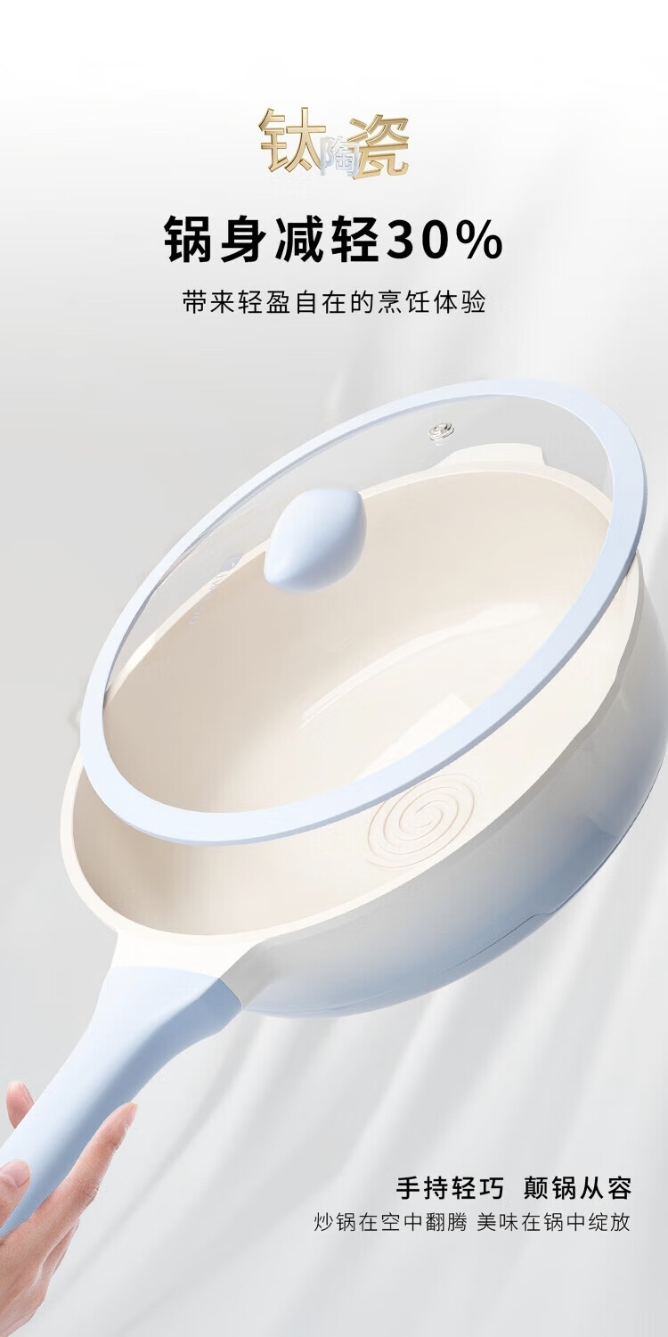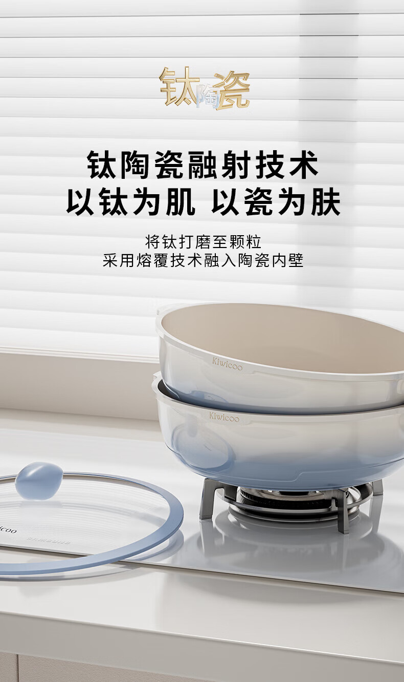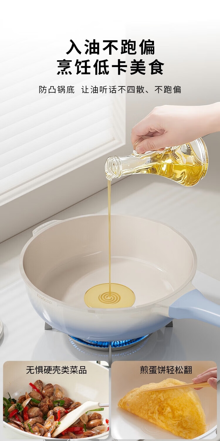 KIWICOO titanium ceramic 0 fluorine coated pan non-stick pan household steak deep frying pan induction cooker gas stove special wok slightly concave poly oil thick bottom anti-convex titanium ceramic 28CM with lid