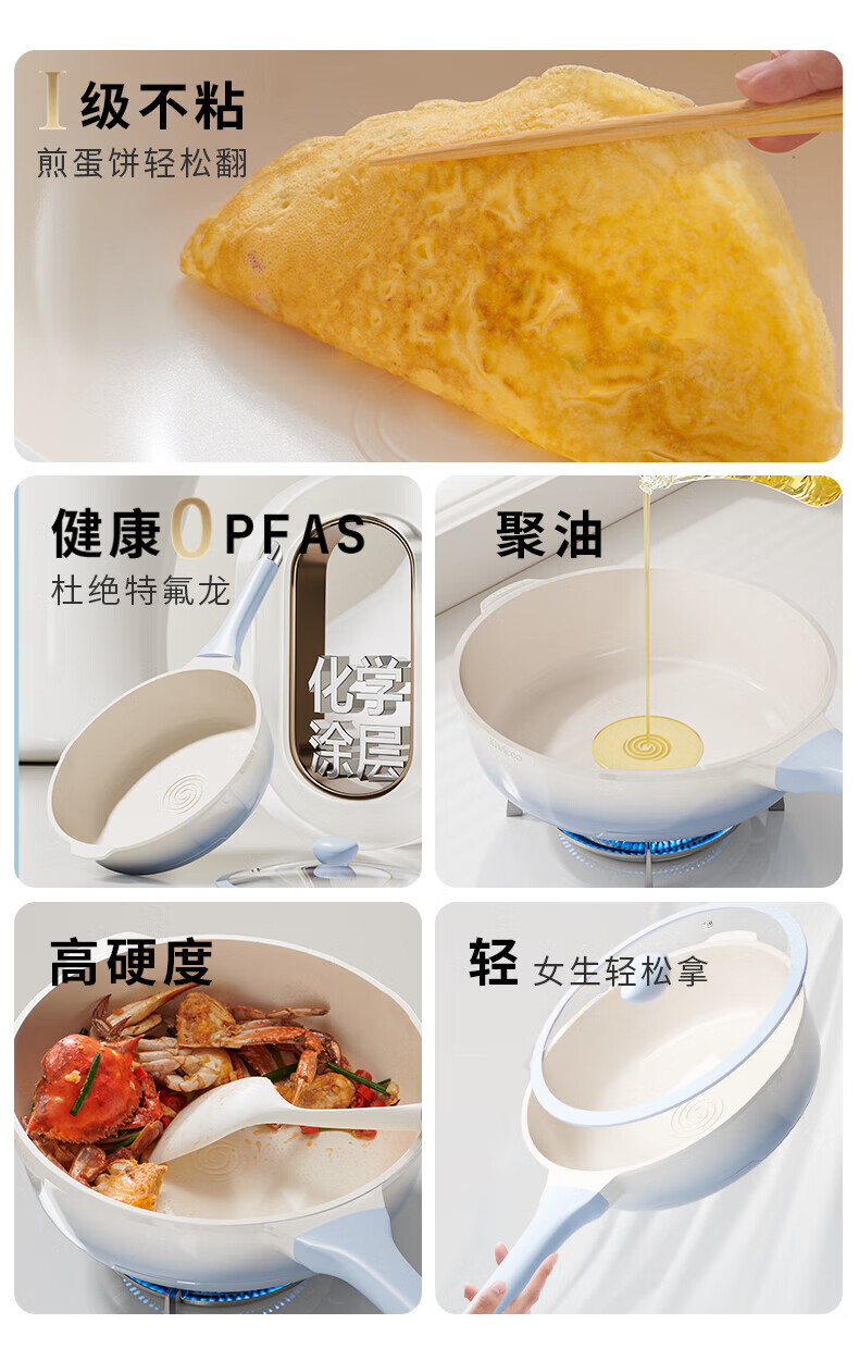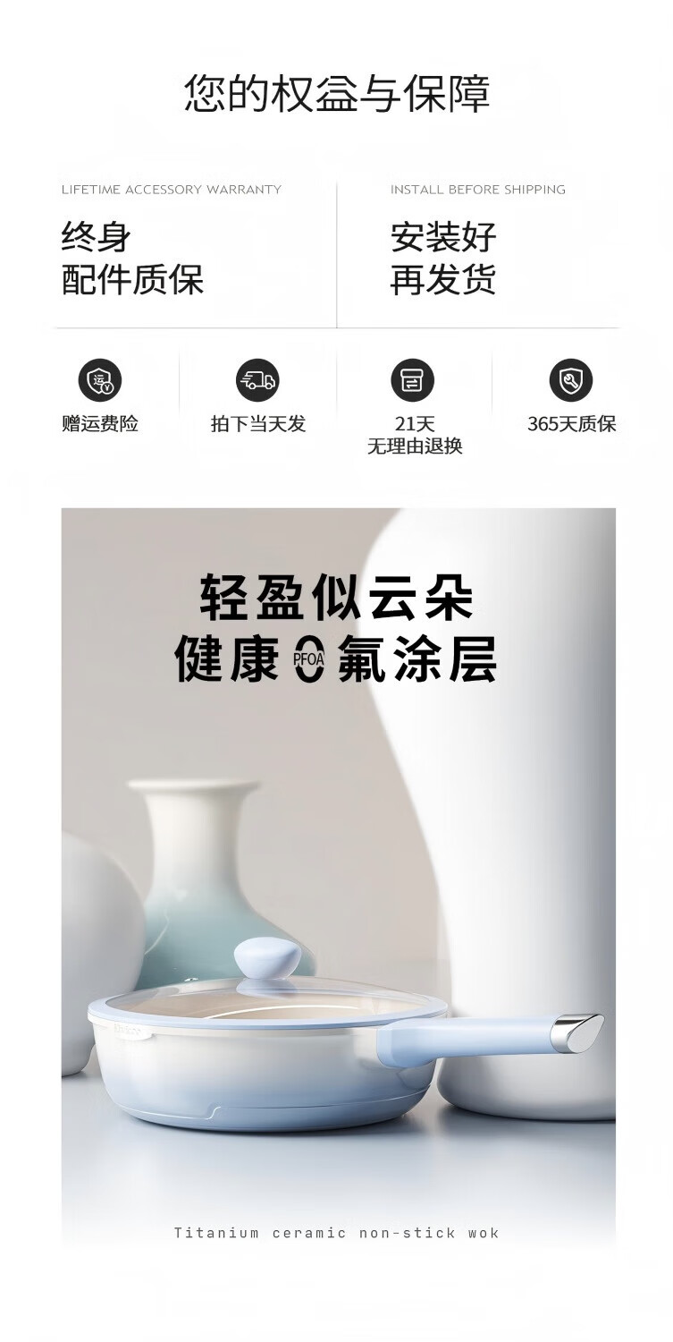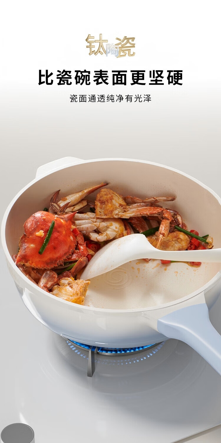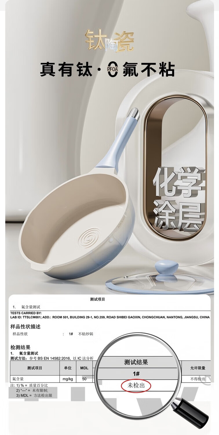 KIWICOO titanium ceramic 0 fluorine coated pan non-stick pan household steak deep frying pan induction cooker gas stove special wok slightly concave poly oil thick bottom anti-convex titanium ceramic 28CM with lid
