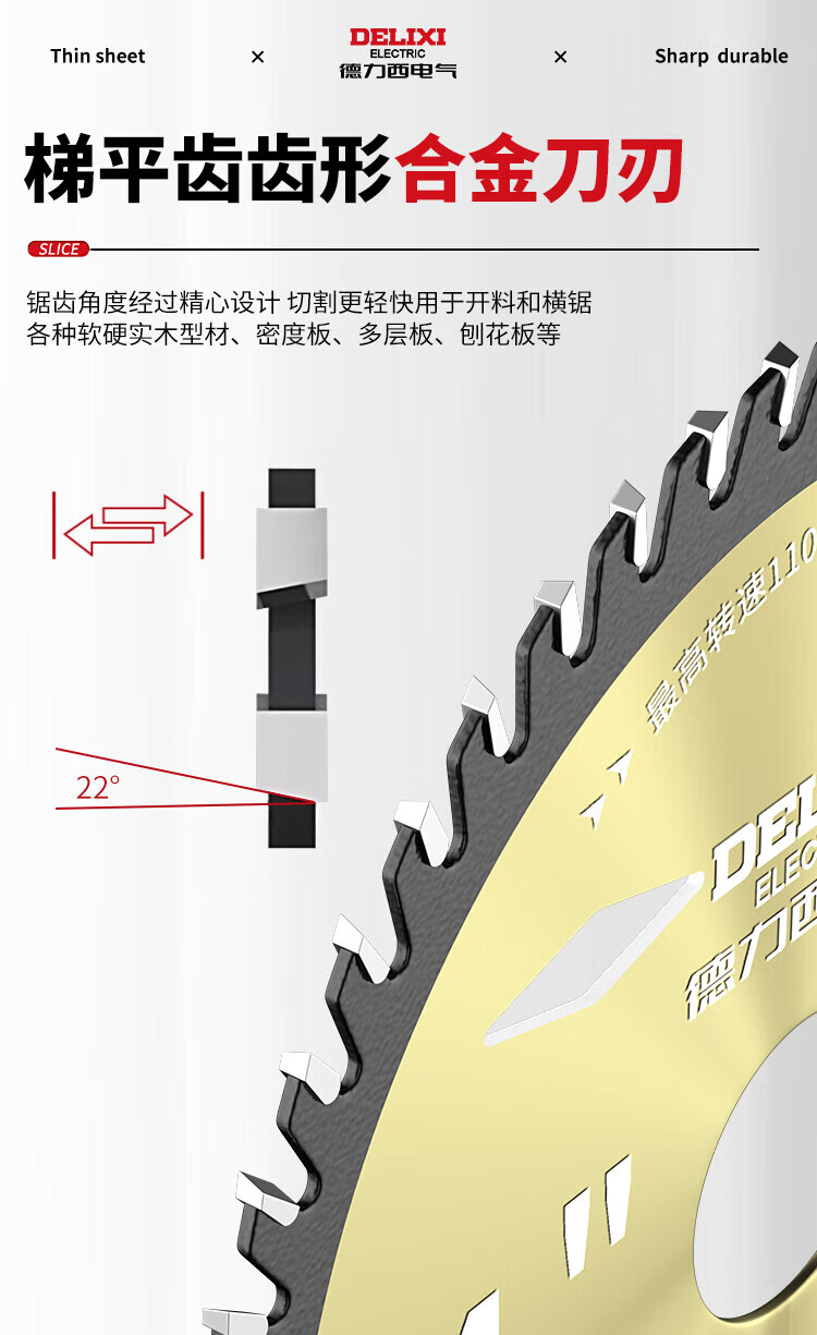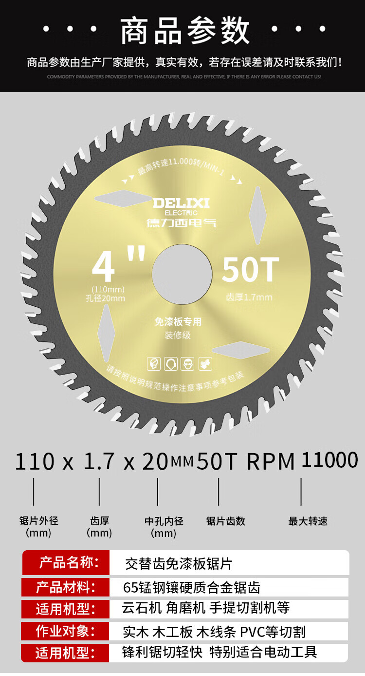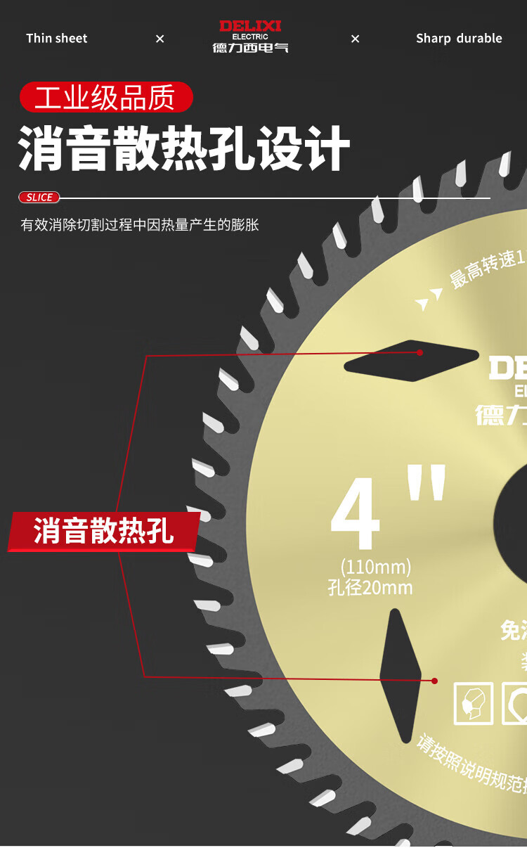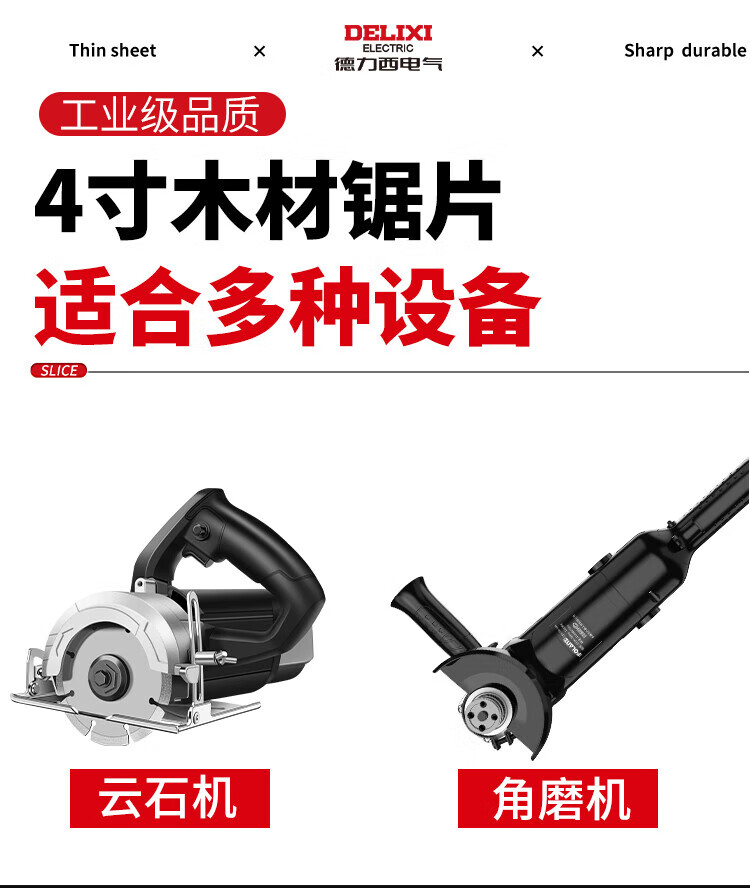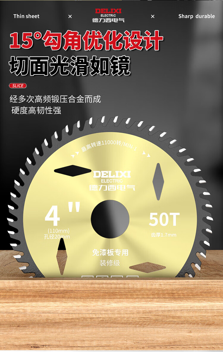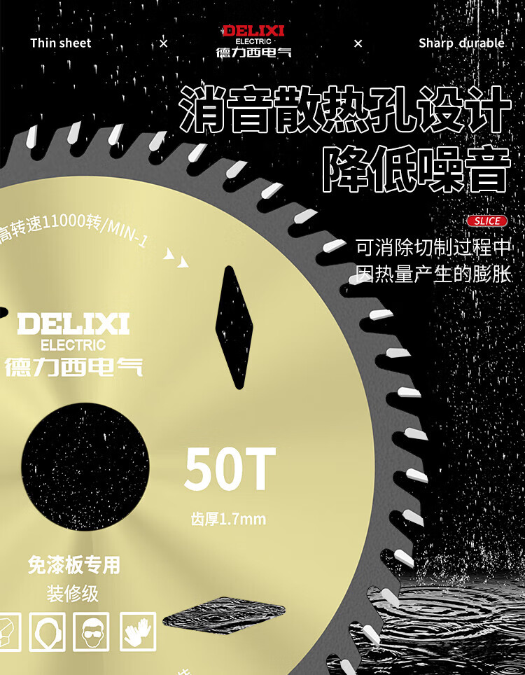 Delixi Electric woodworking saw blade paint-free board cutting tile glass marble alloy saw blade sharp and durable nail-resistant wood wear-resistant 4-inch 50-tooth with silencer hole (1 piece)