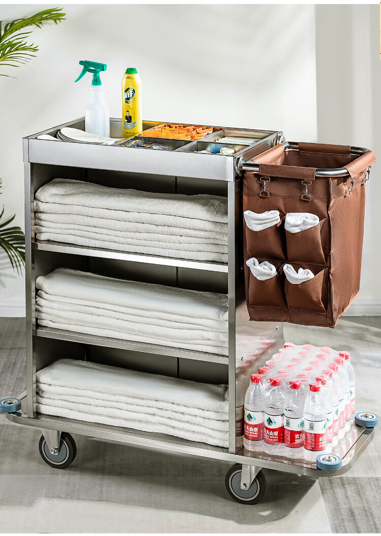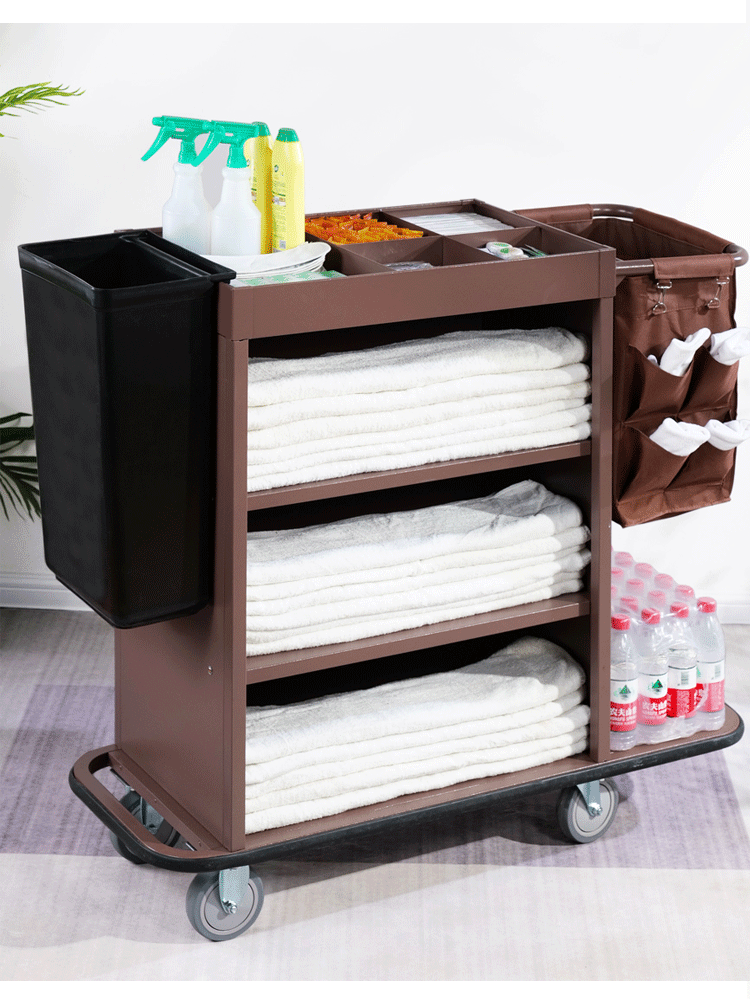 Hotel hotel small short guest room multi-functional hand push linen cart cleaning work cart cleaning cart guest room entrance hygiene service cart quality model (covered and covered)