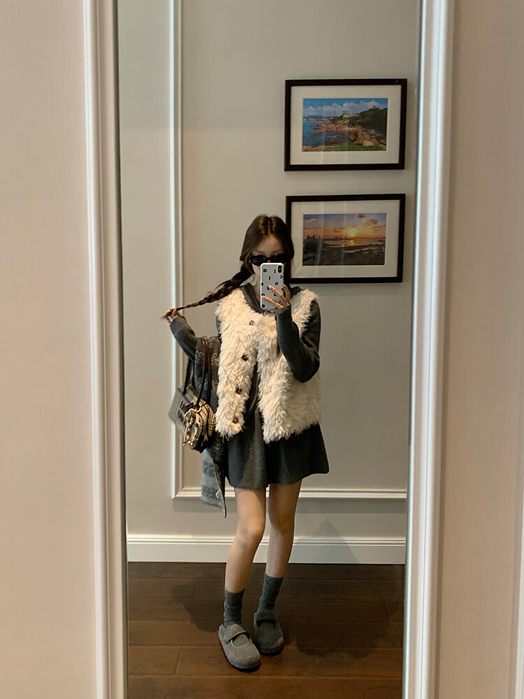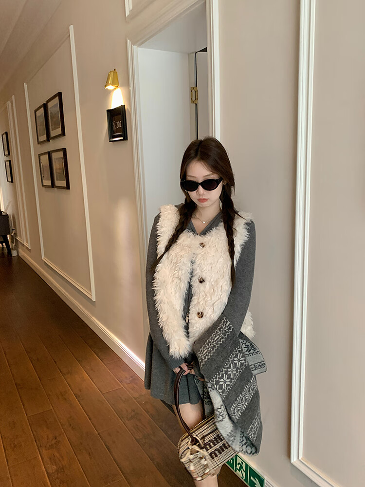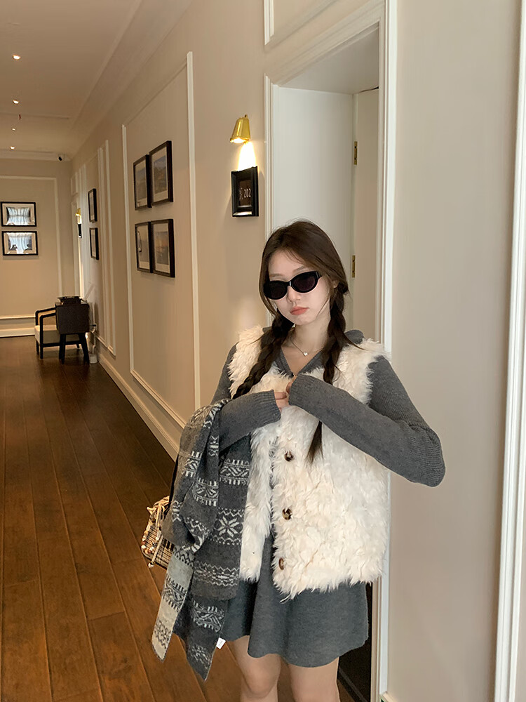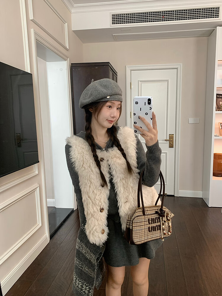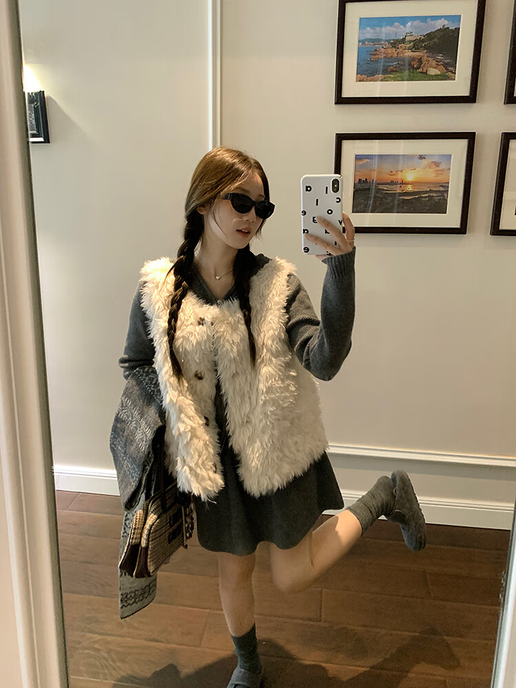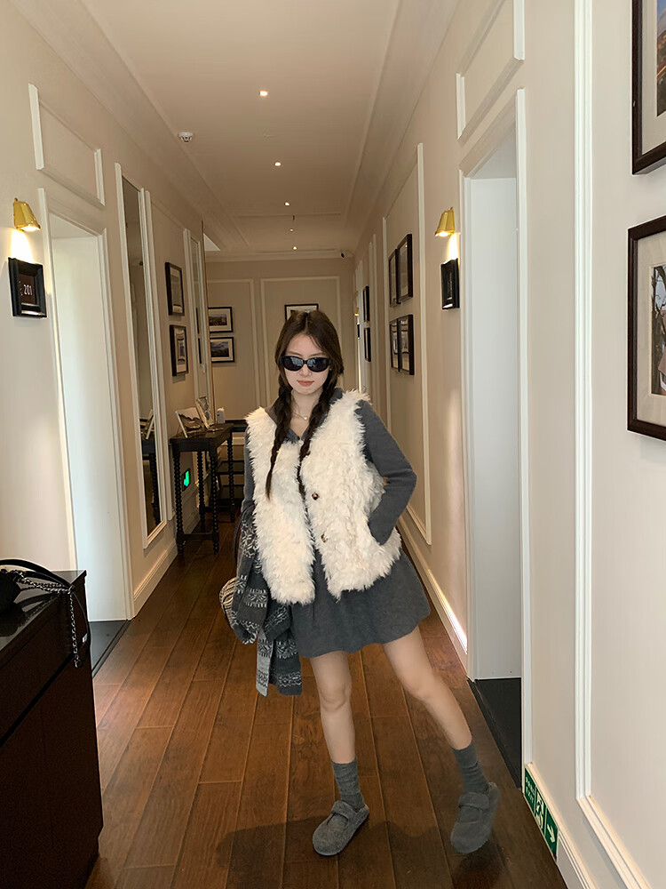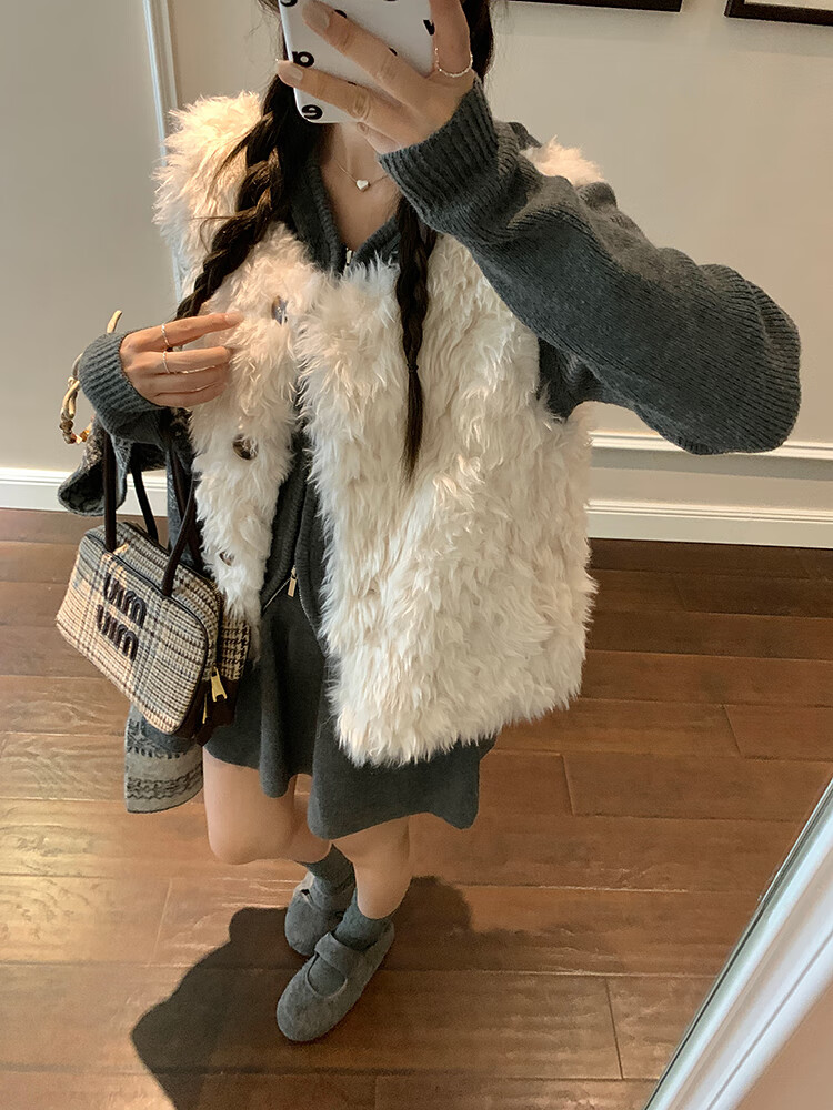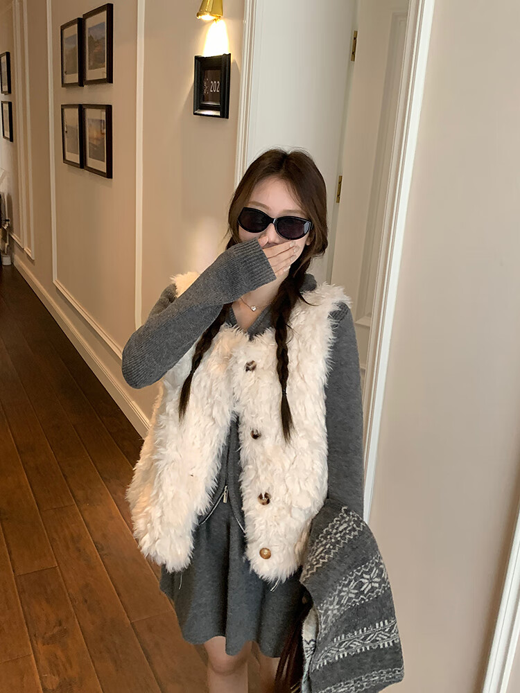 Yipinyuan Eco-Friendly Fur Vest Jacket Women's 2025 Autumn and Winter New Thickened Warm Fur One-Sleeveless Vest Vest White One Size (90-125 Jin)