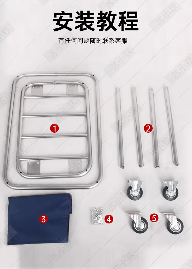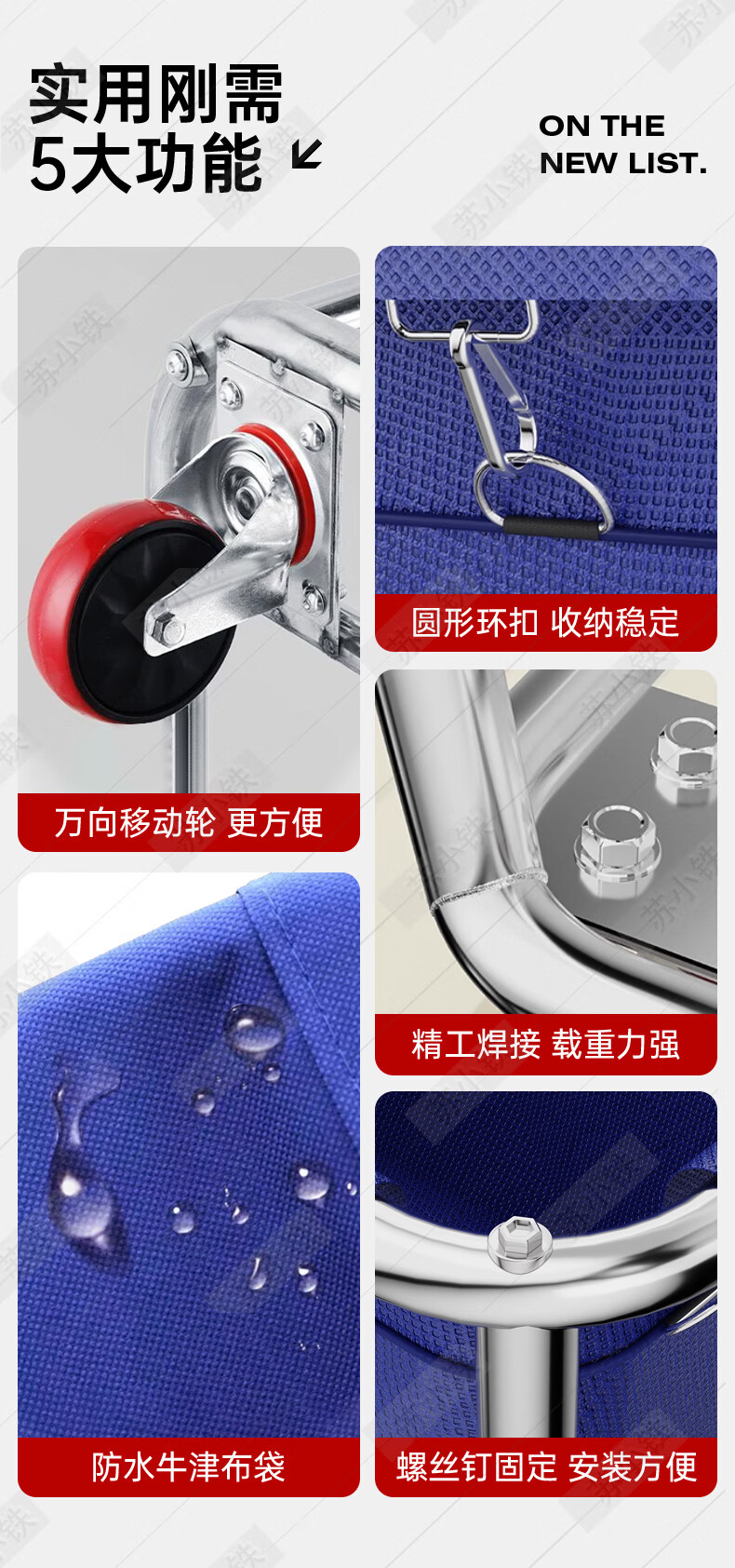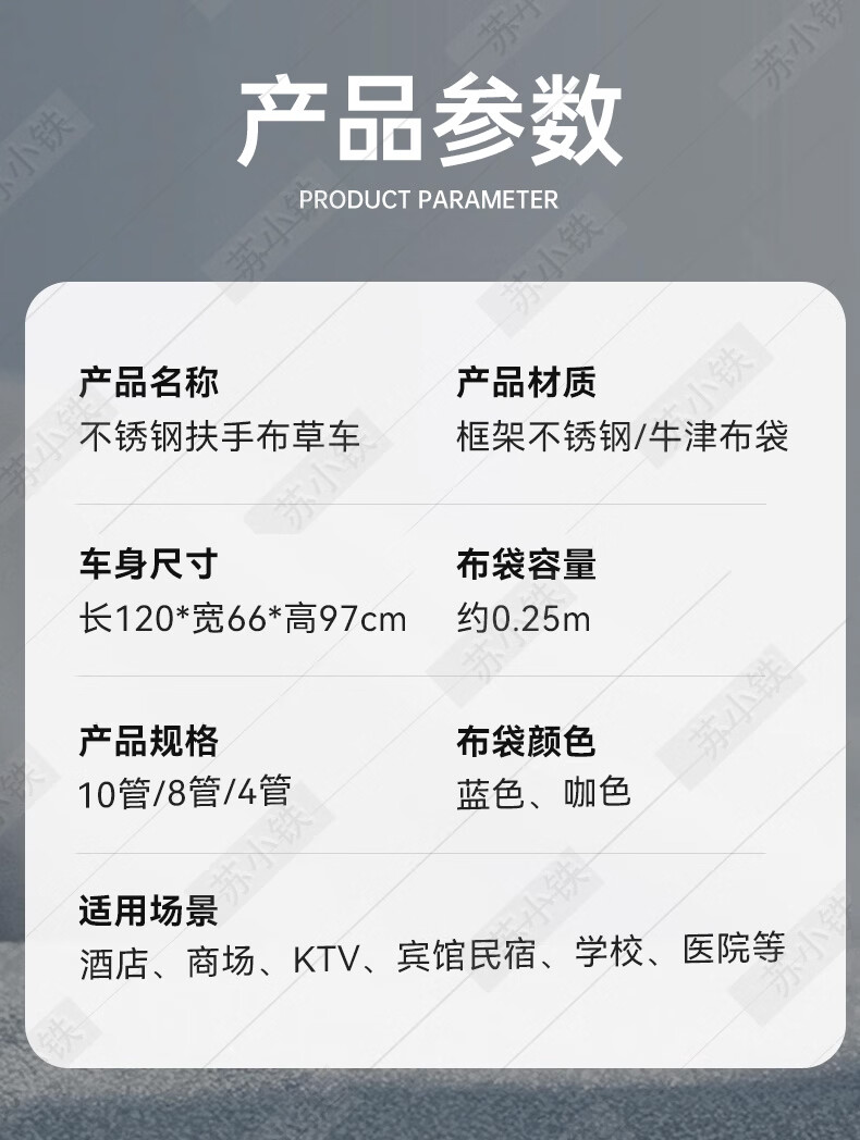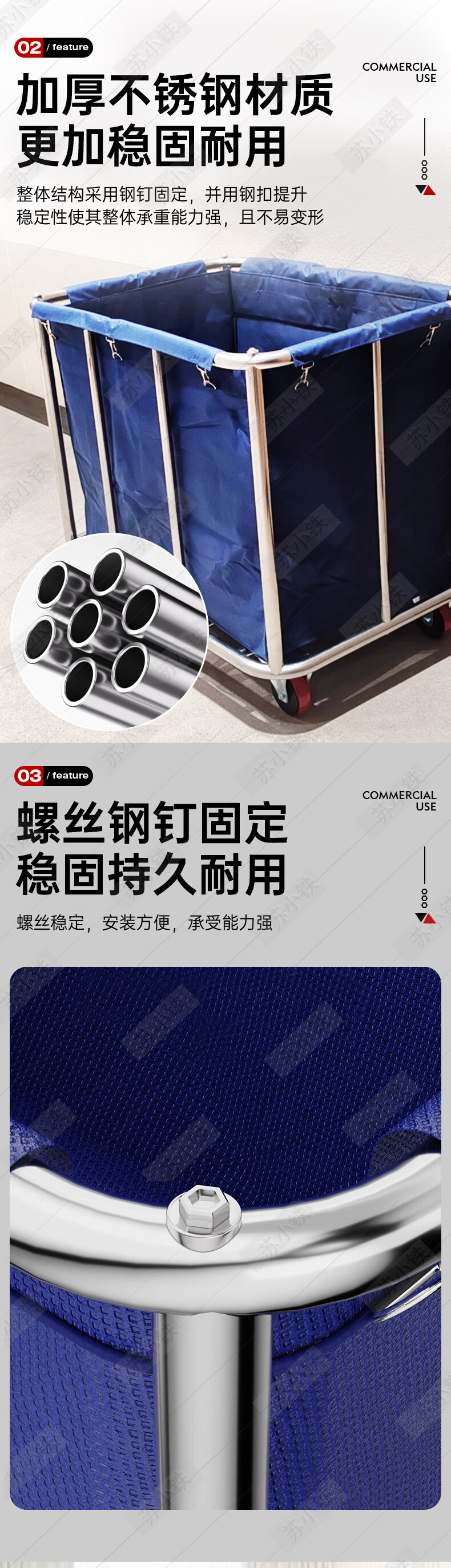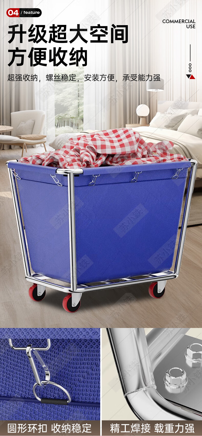 Su Xiaotie linen cart, hotel cleaning cart, cleaning cart, multi-functional trolley, room service cart, thickened stainless steel work cart, 4-inch carpet wheel-disassembled and assembled 8 tubes, thickened blue, disassembled and assembled 8 tubes