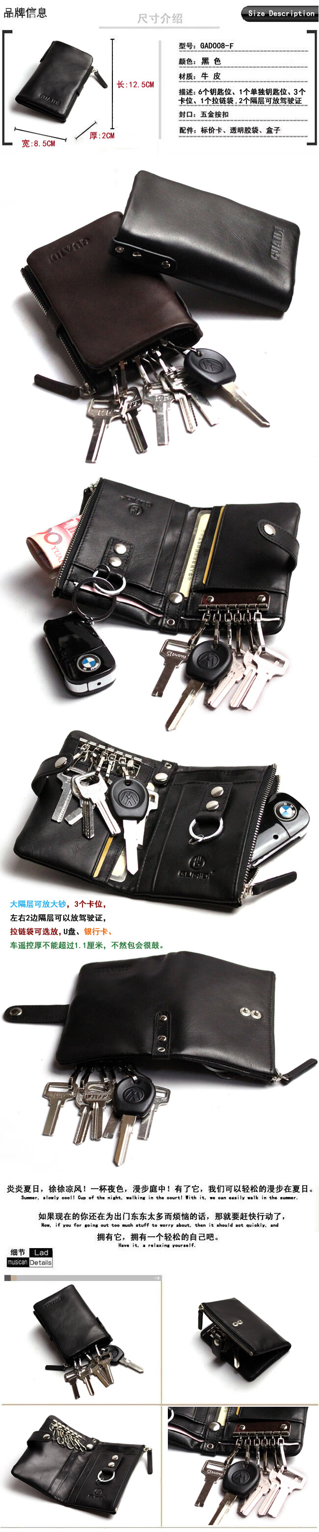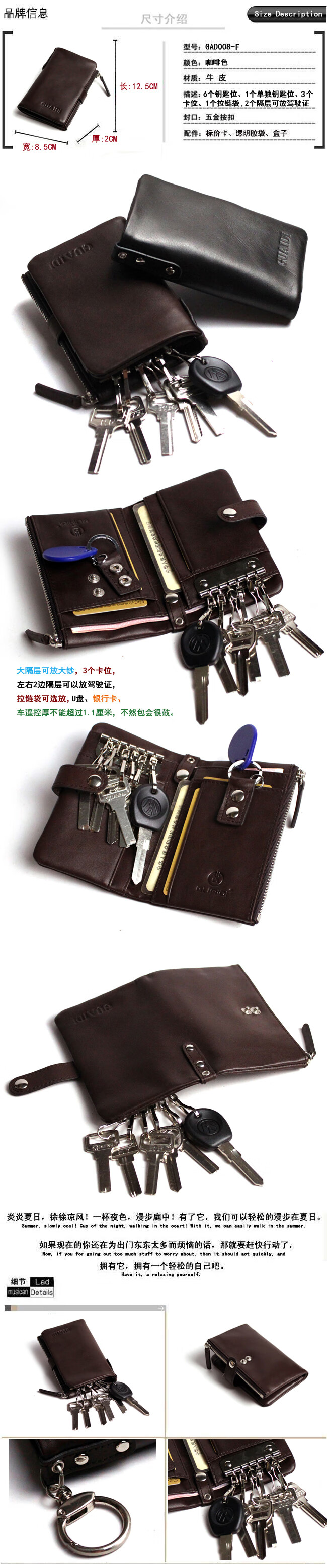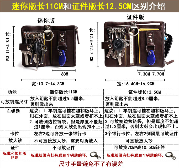 Key Bag Men's Genuine Leather Multi-Function Car Lock Keychain Cover Storage Waist Driver's License Zipper Women's Coin Purse Internet Celebrity ID Card Brown Standard Edition Length 12.5CM
