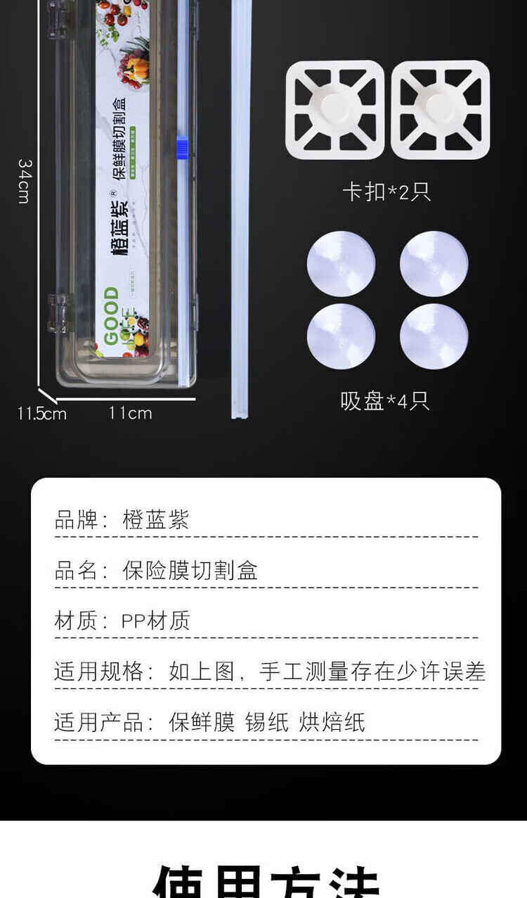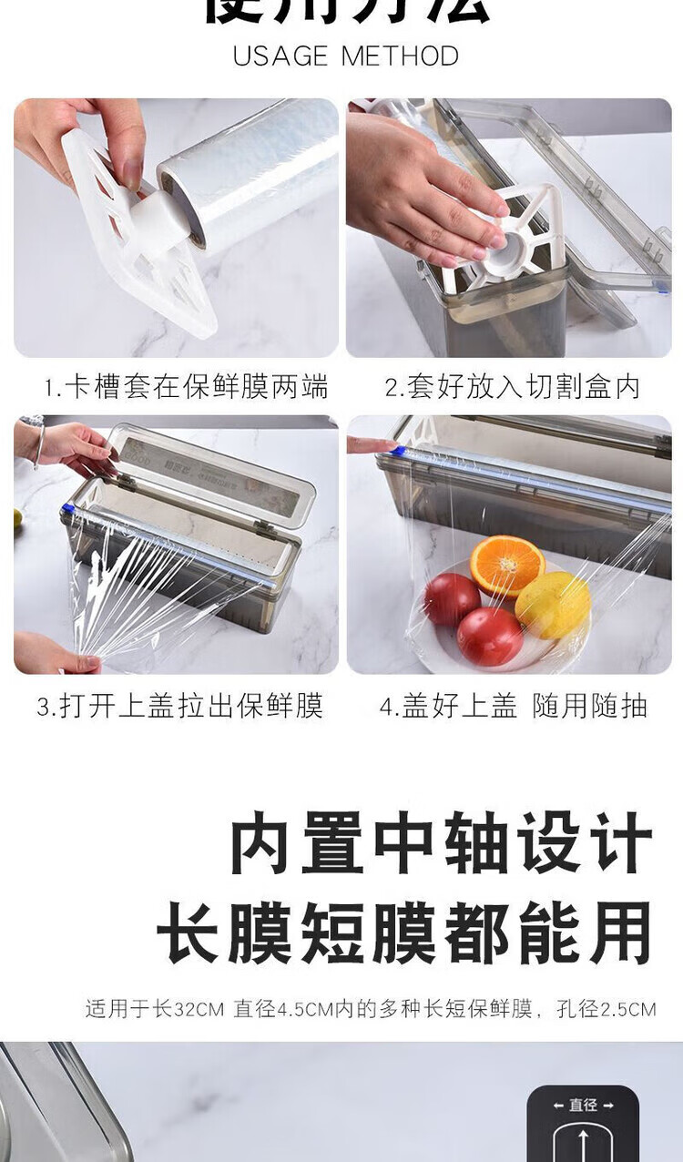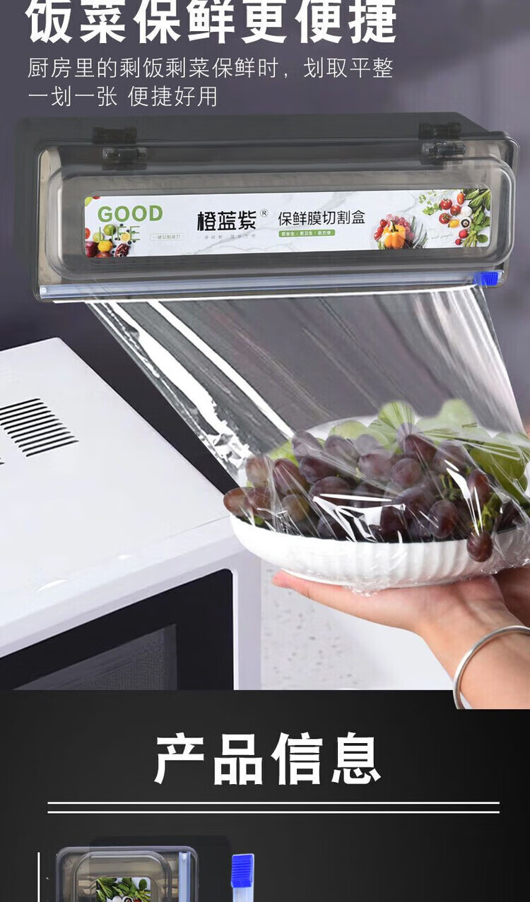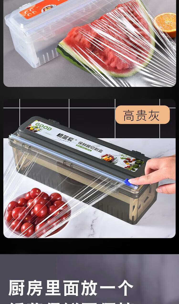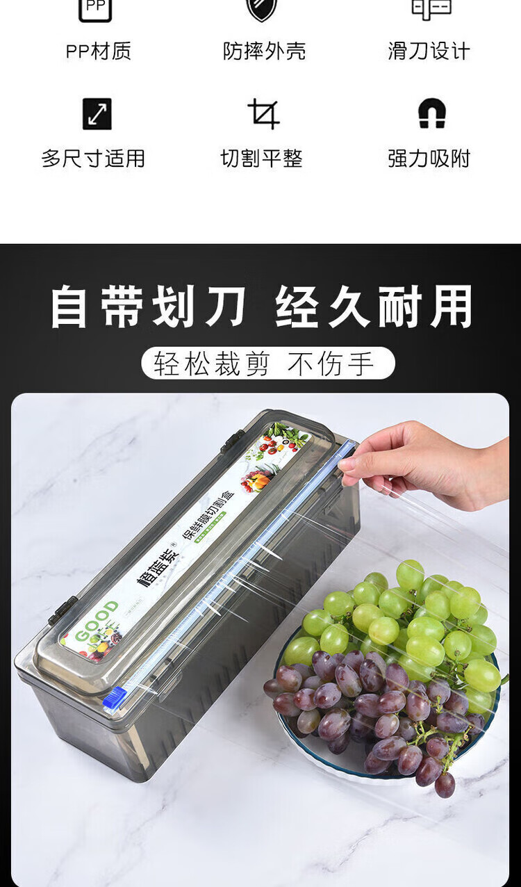 He Jiagong (JINGYE) cling film cutting box kitchen household large roll economical packaging PE food special food grade resistant noble gray recyclable