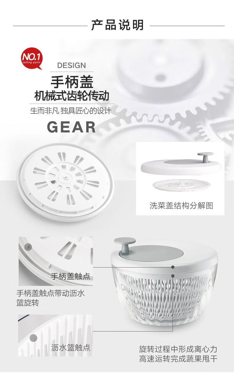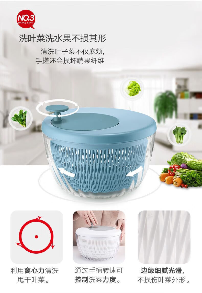 NAOISKEY vegetable dehydrator household drain basket manual spin dryer kitchen with lid yellow