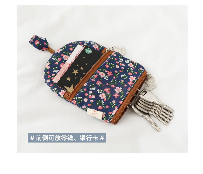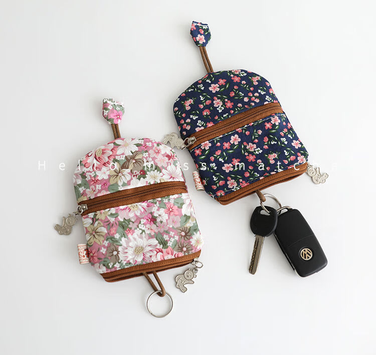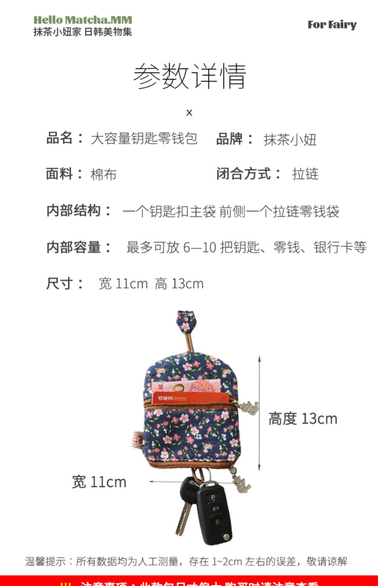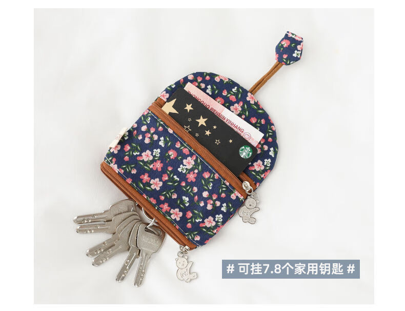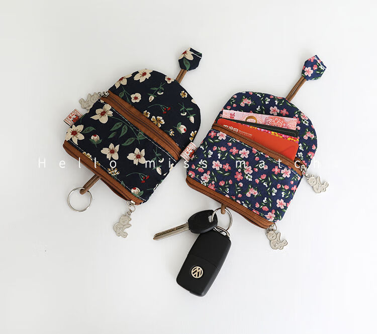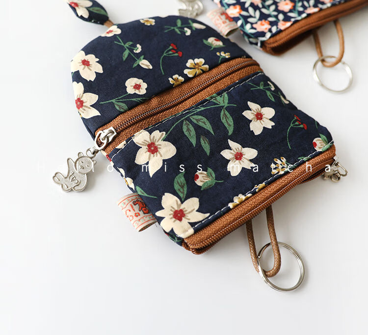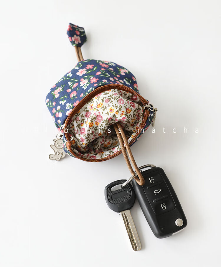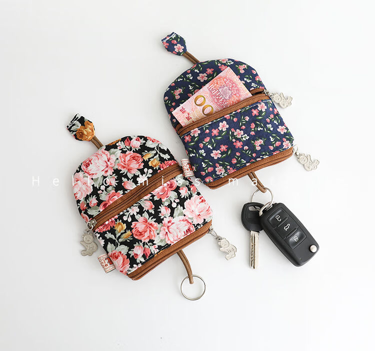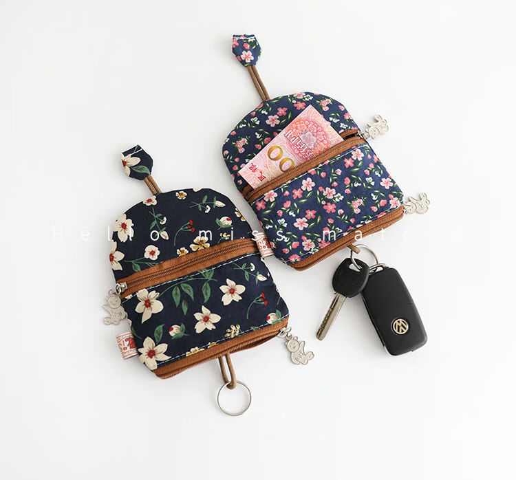 Large-capacity key bag with card slot for women, pull-out car multifunctional Japanese and Korean fabric cotton coin purse, fabric pineapple