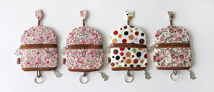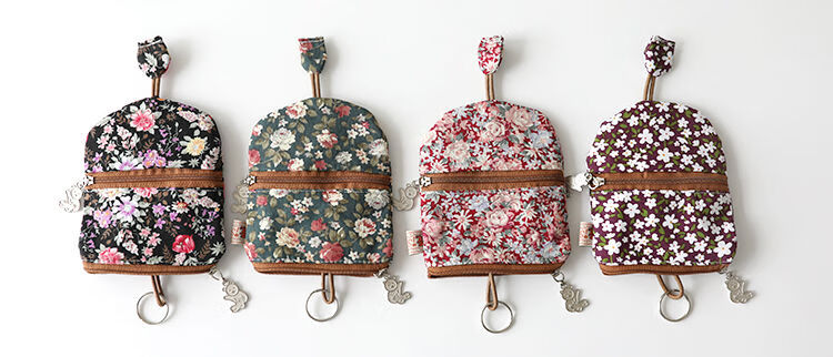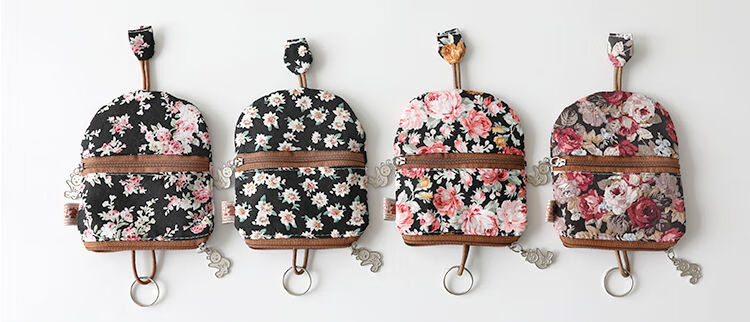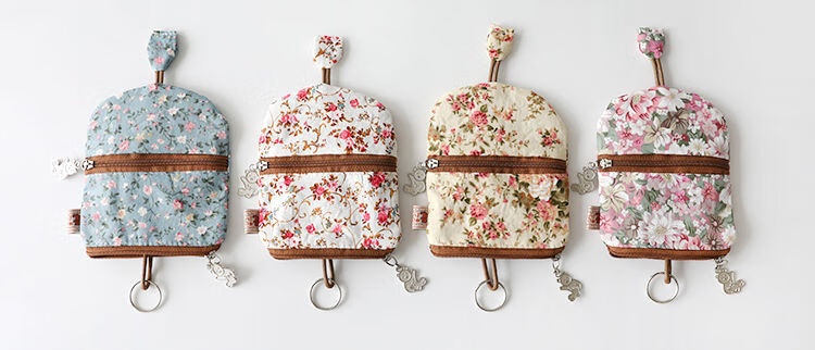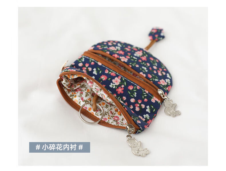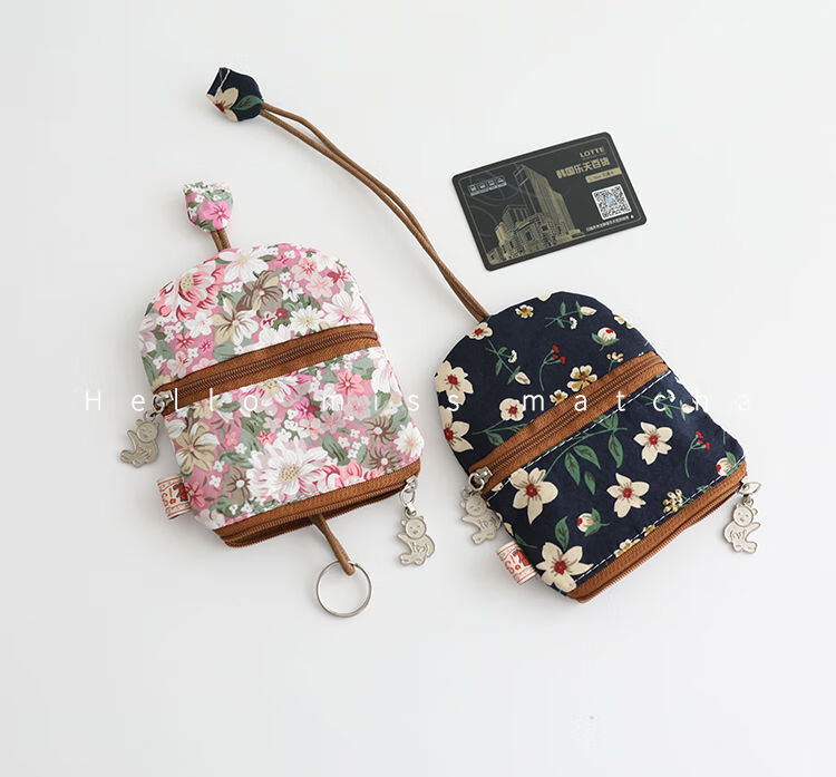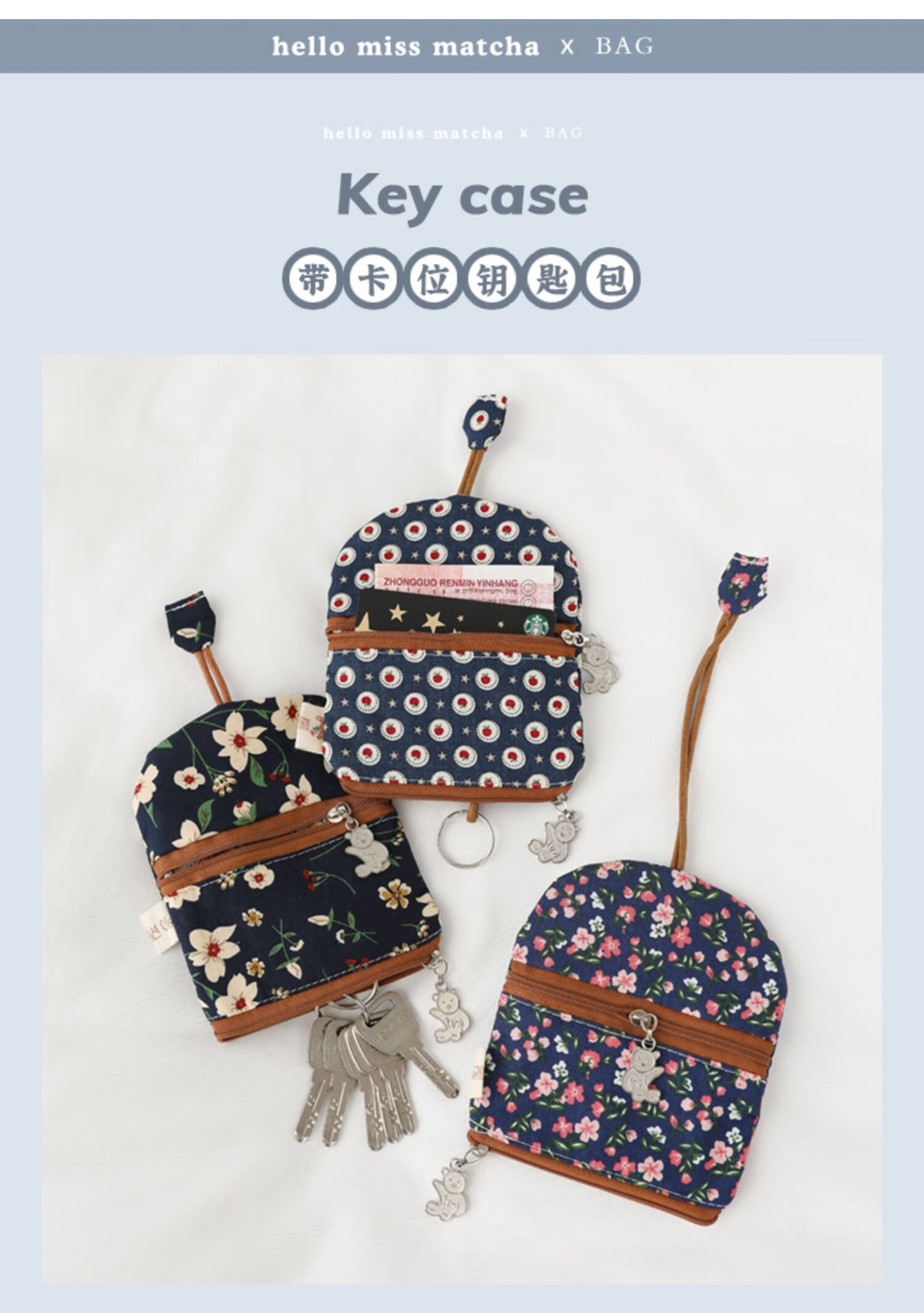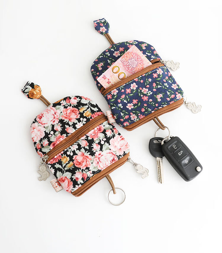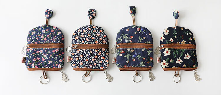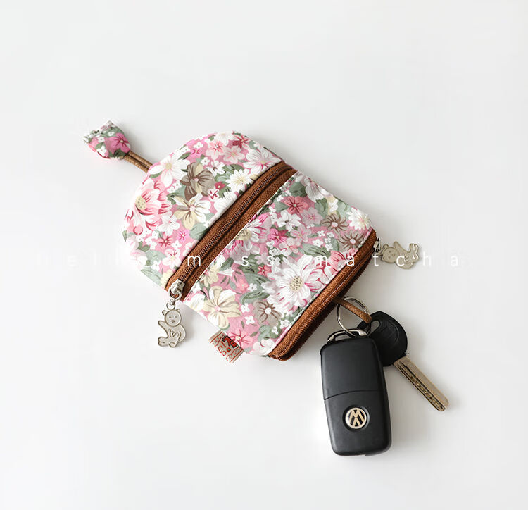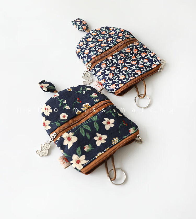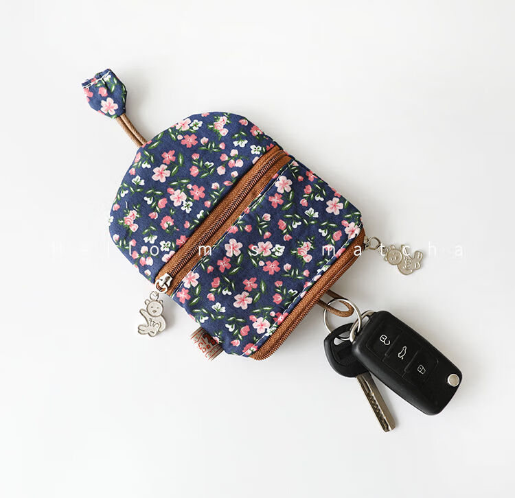 Large-capacity key bag with card slot for women, pull-out car multifunctional Japanese and Korean fabric cotton coin purse, fabric pineapple