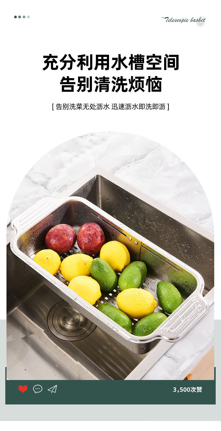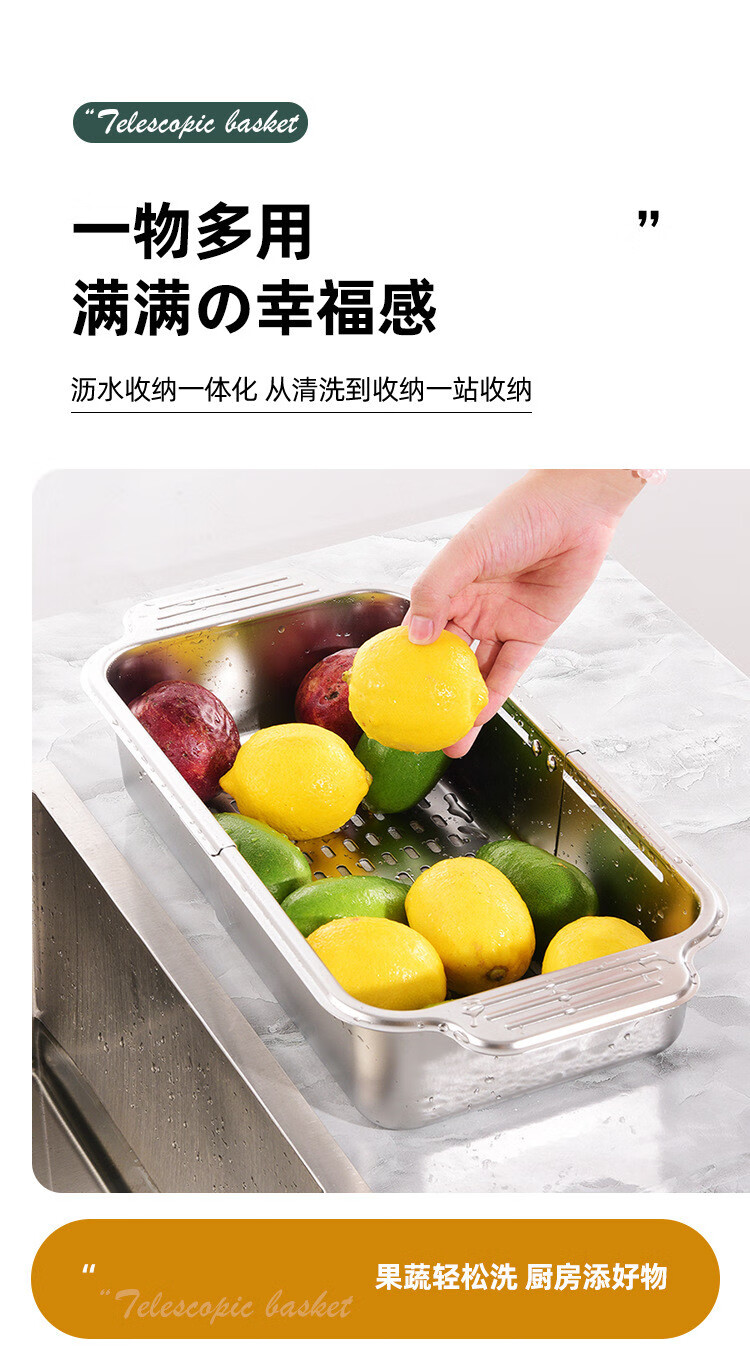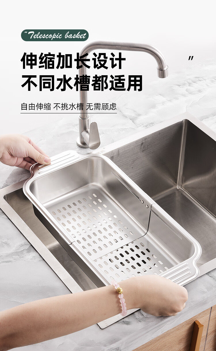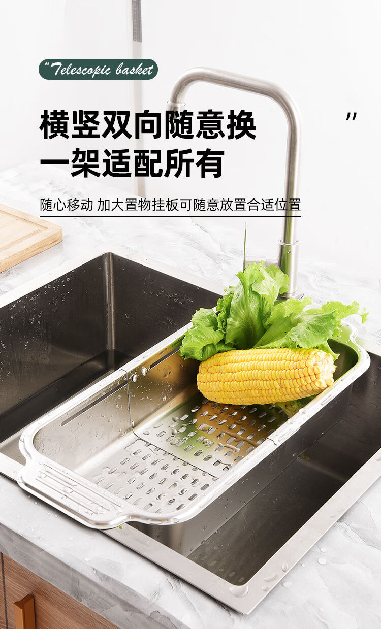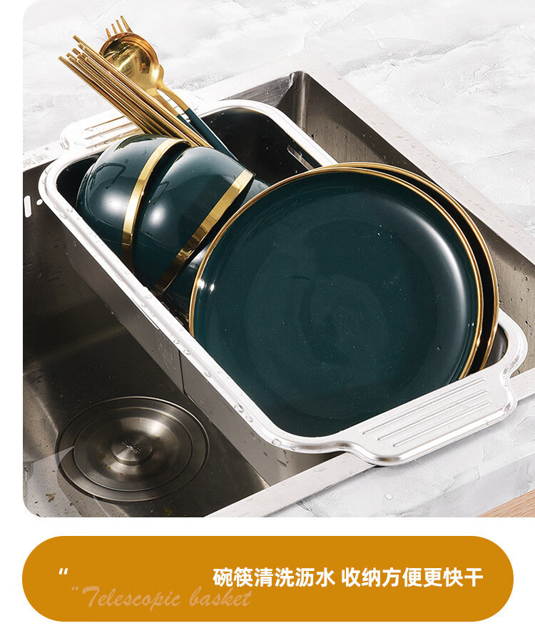 National Style Selection 304 Stainless Steel Retractable Drain Basket Drain Rack Dishes Chopsticks Bowls Kitchen Sink Storage Rack Integrated Large 304 Stainless Steel Drain Basket