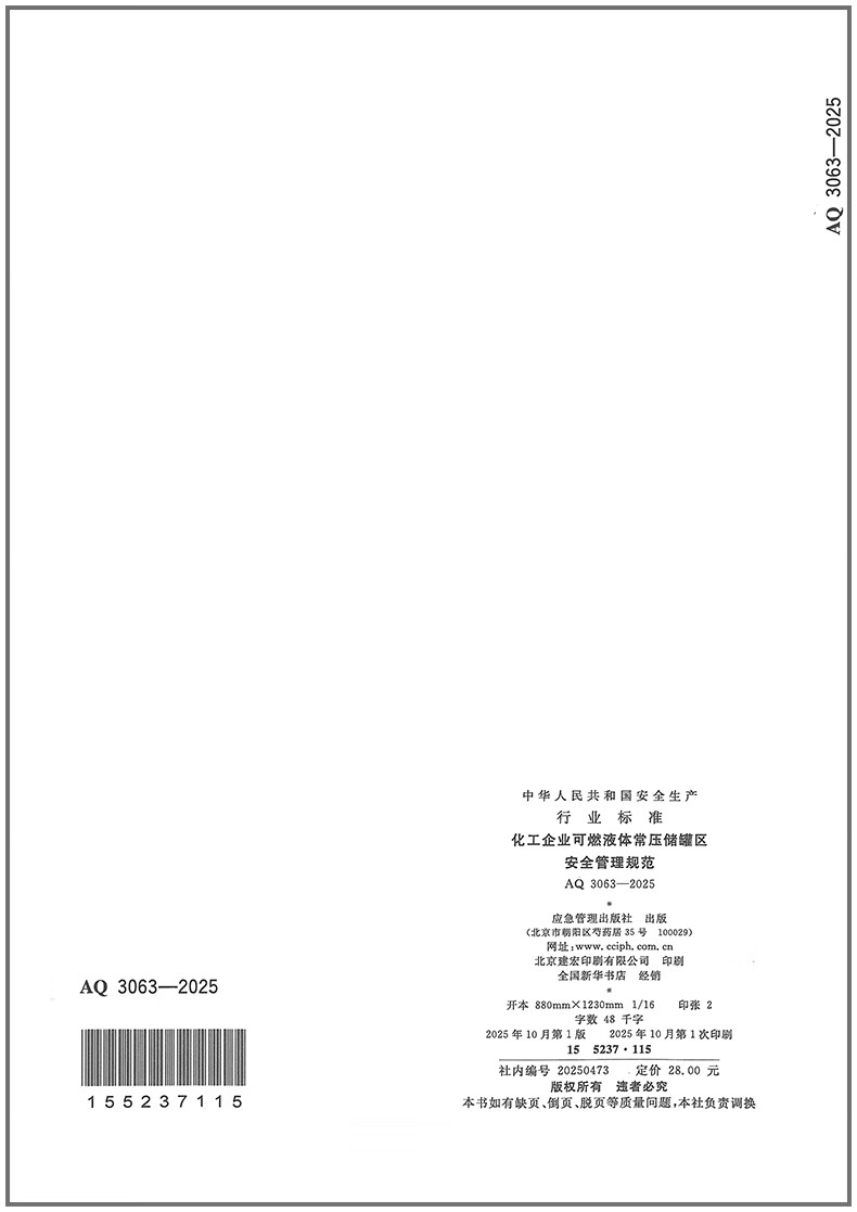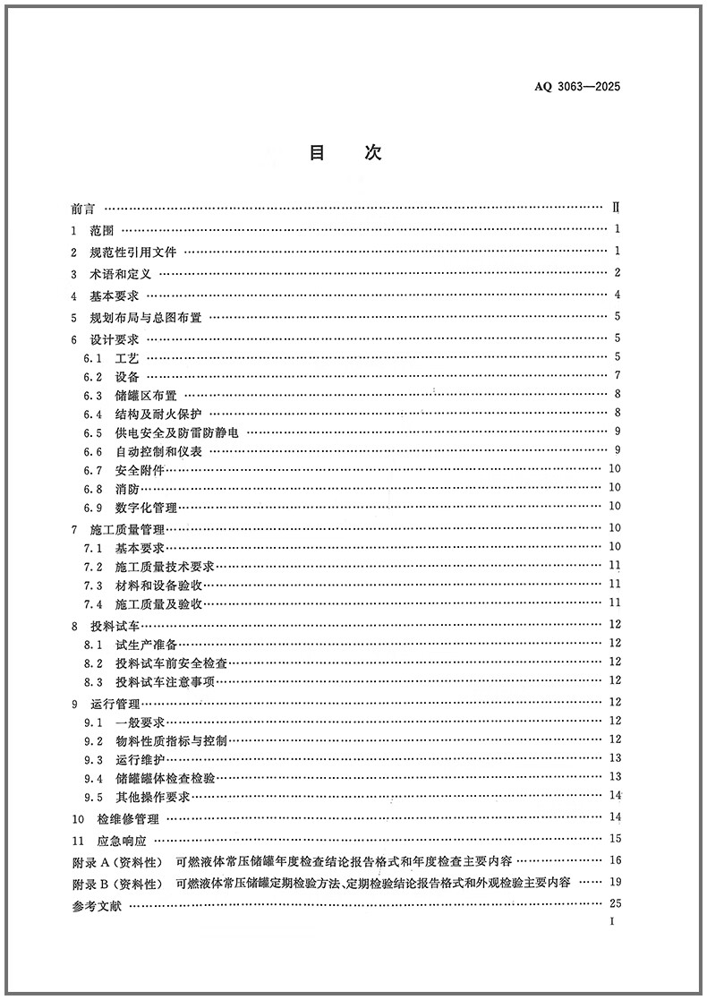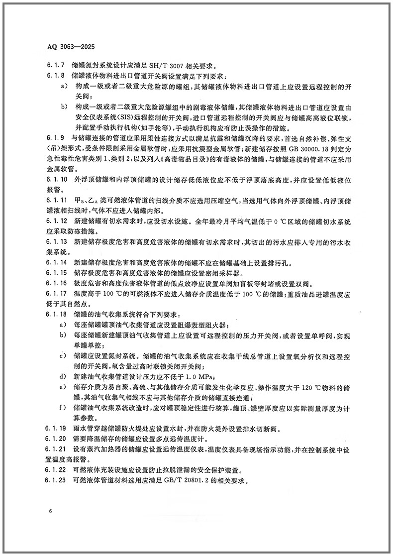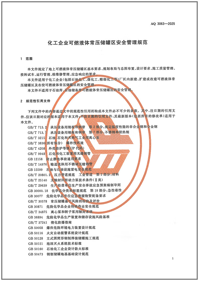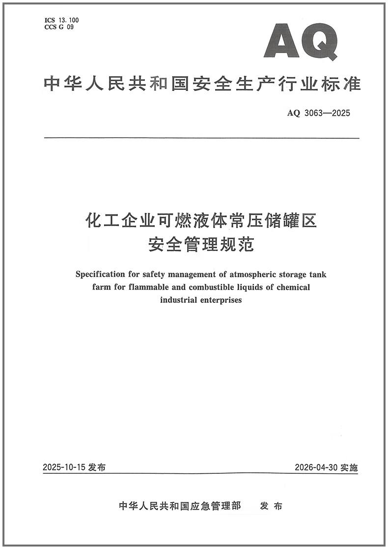 Genuine spot AQ 3063-2025 Safety management specifications for flammable liquid normal pressure storage tank areas in chemical enterprises