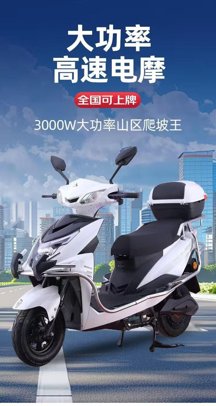 Feiye 2025 New God of War 3000 Watt 96v Electric Motorcycle High Power Mountain Climb King Takeaway New Energy Battery Car Matte Black Equipped with Guardrail Tail Box + NFC Card to Start 96V38A3000w Climb King 8 Black Gold Batteries