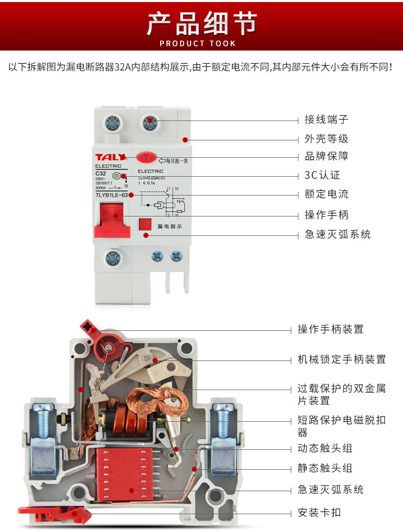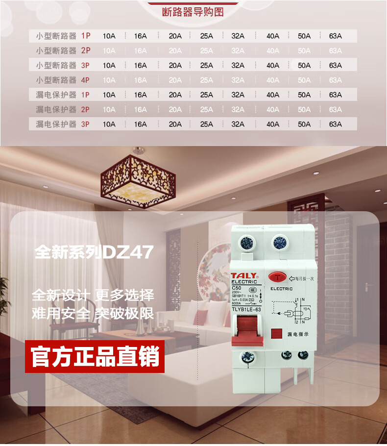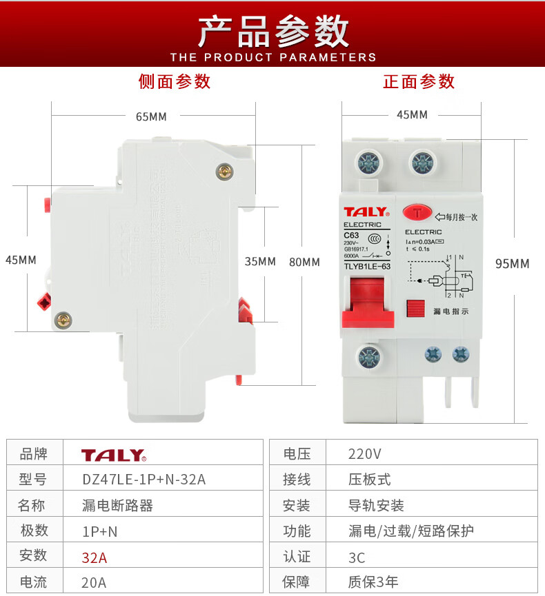 TALy Taili Jiye leakage protector empty switch household electric gate two-phase leakage protection 2p63a small circuit breaker 32A 2P