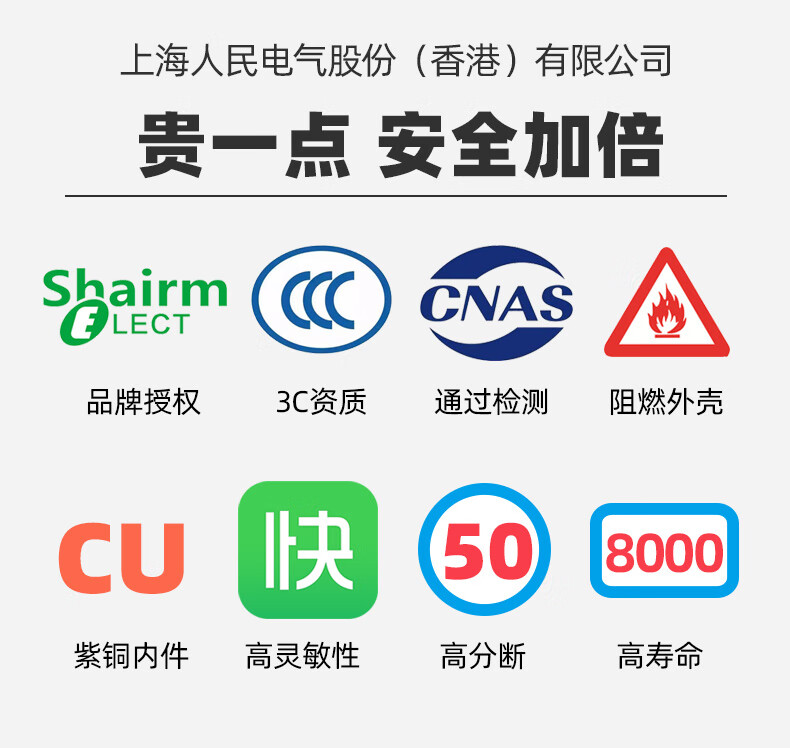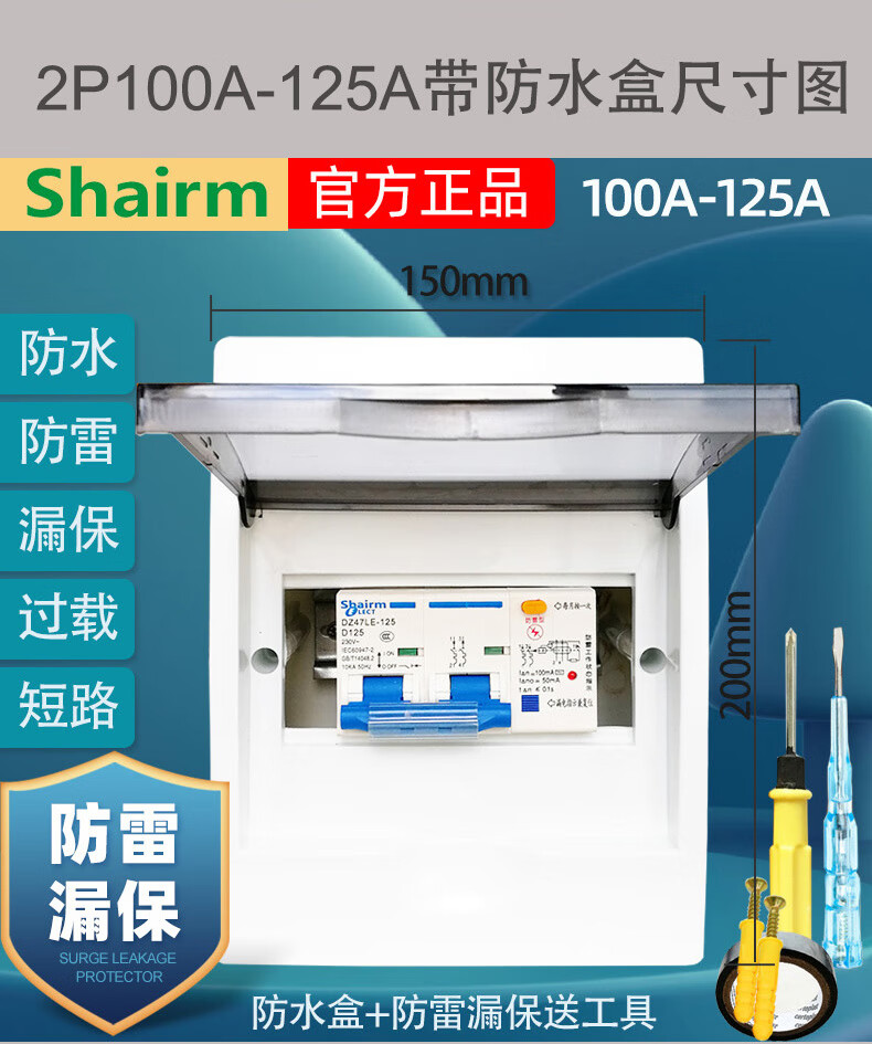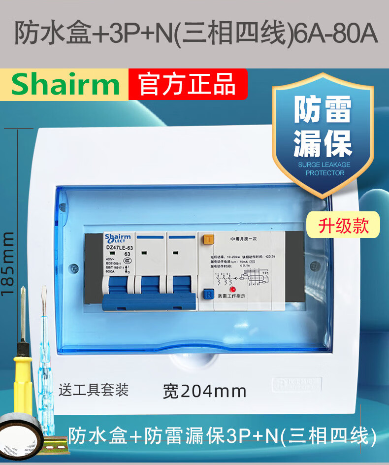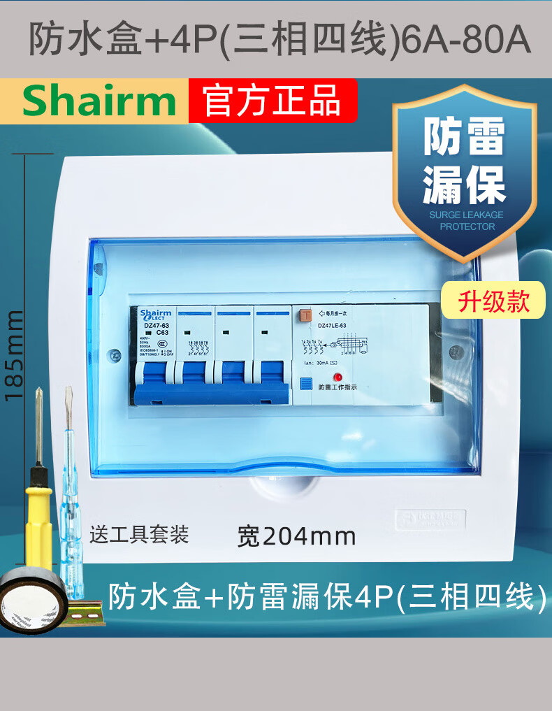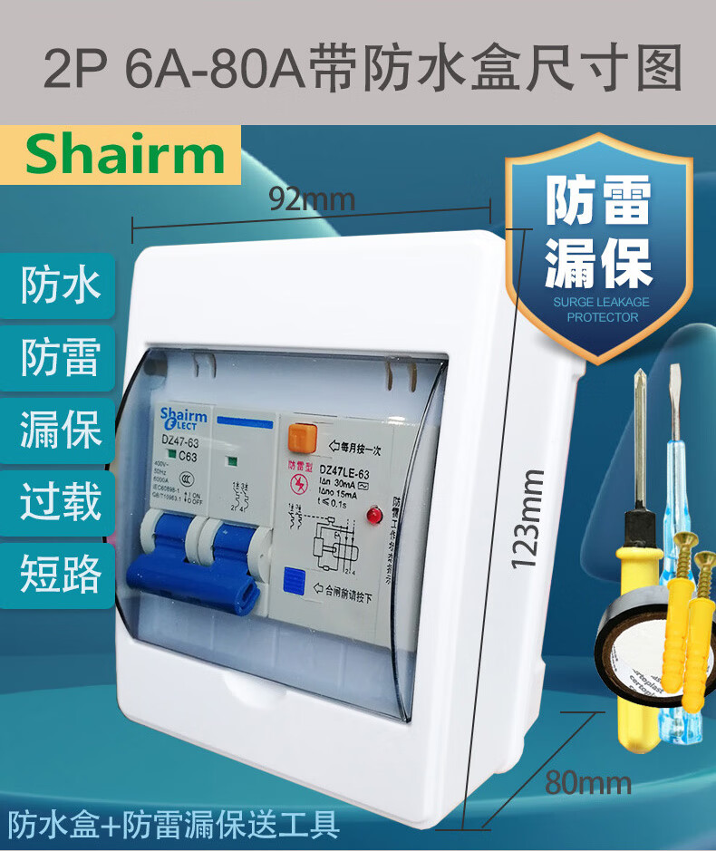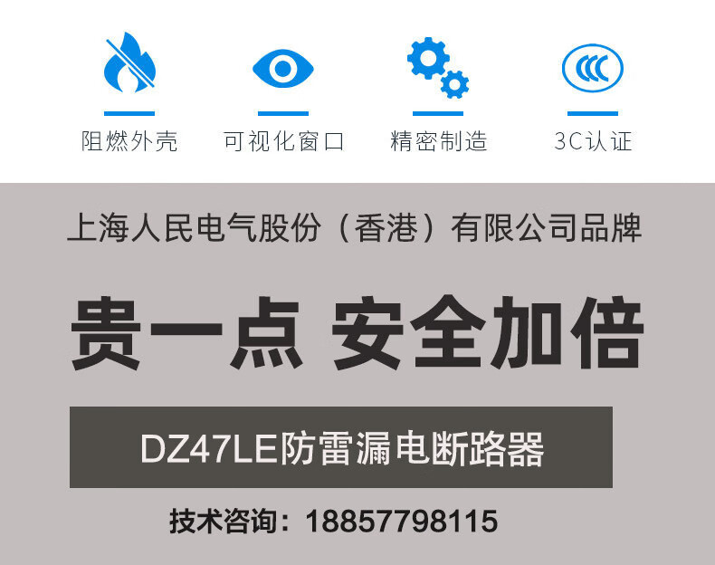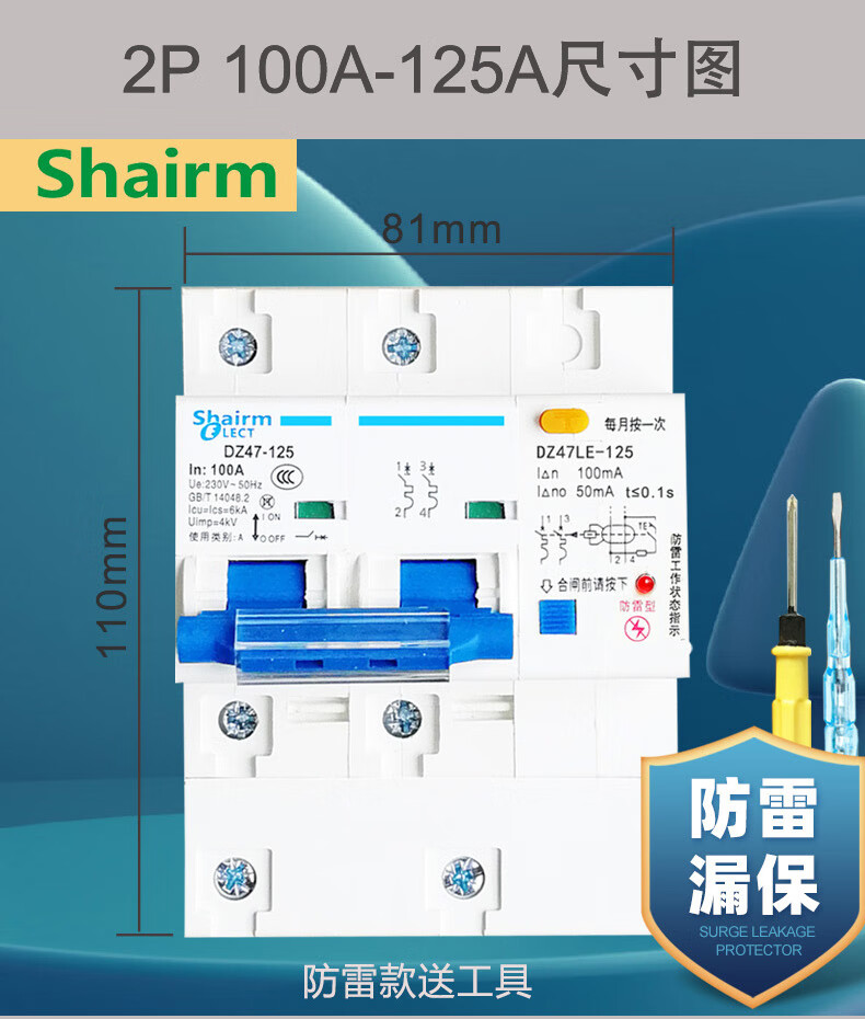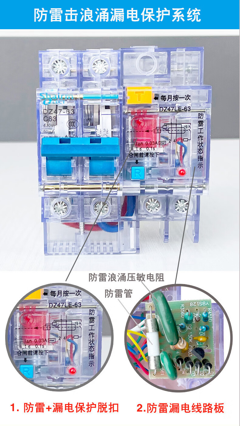 Shanghai People's lightning protection leakage circuit breaker household 2P air switch with leakage protector 63a32A anti-electric shock lightning protection leakage protection 2P (220V) 63A