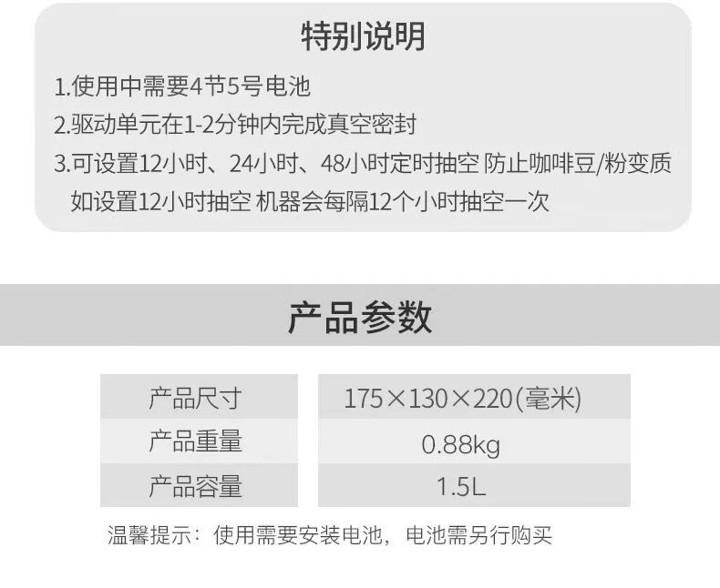 Electric vacuum coffee bean powder sealed tank storage tank milk powder tea tank vacuum tank milky white