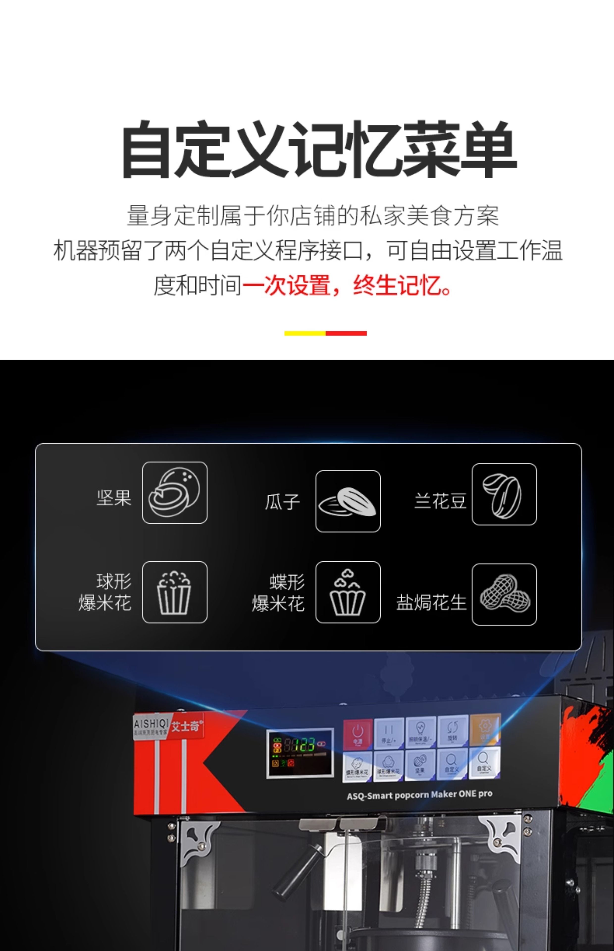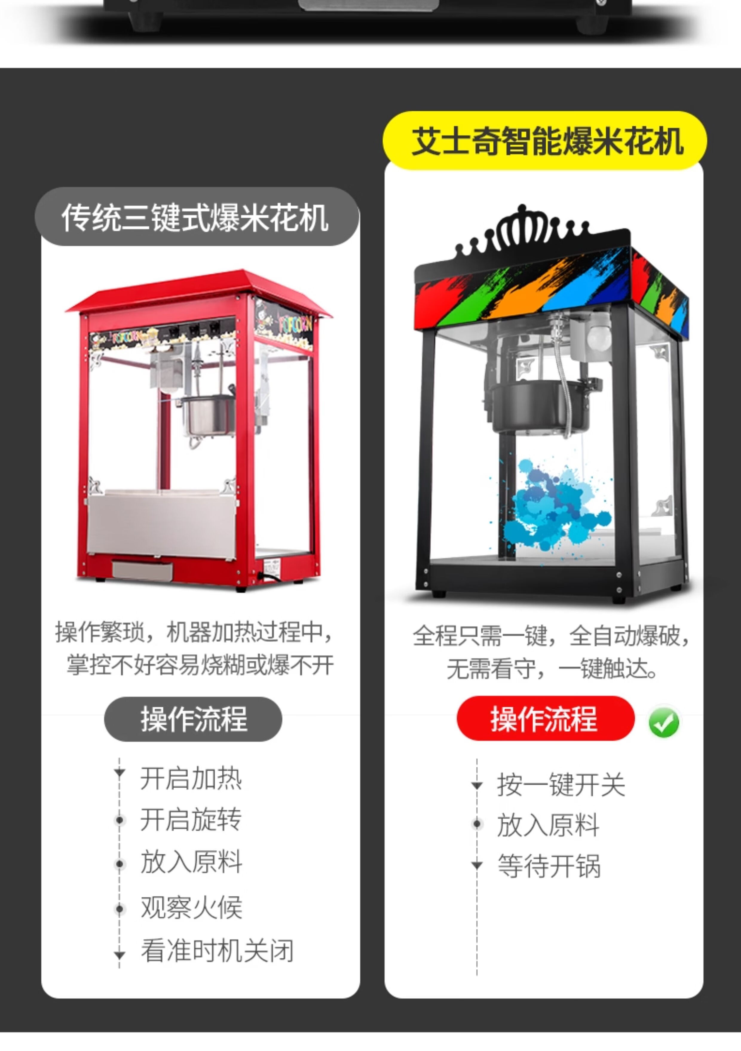 AISHIQI AISHIQI popcorn machine commercial fully automatic popcorn machine electric heated popcorn machine electric street stall AI smart popcorn machine (free raw materials + paper cups)