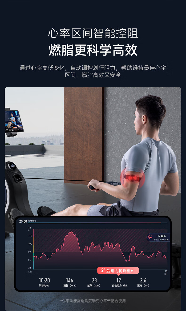 Merrick Intelligent Water Sense Magnetic Resistance Q5 Rowing Machine Home Super Full Body Sports Fitness Rowing Equipment Black