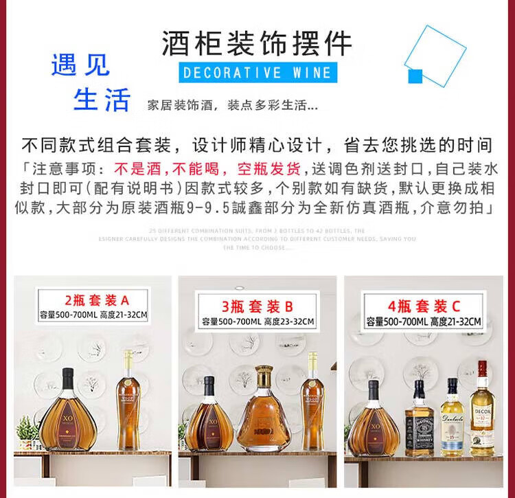 Decorative wine bottle, simulated foreign wine display, wine cabinet decoration, model room wine, foreign wine XO glass bottle, wine set, 42 bottles of all foreign wine, 10 bottles of XO