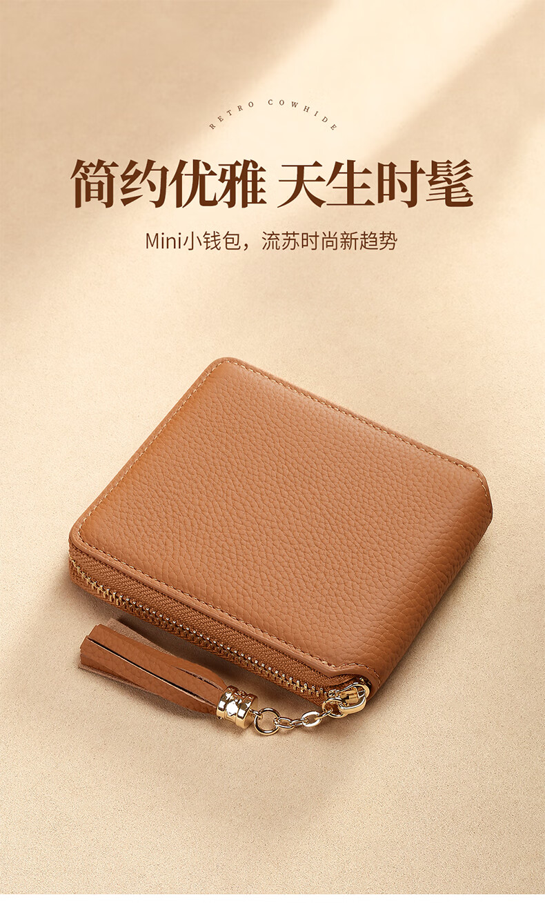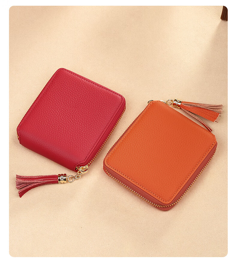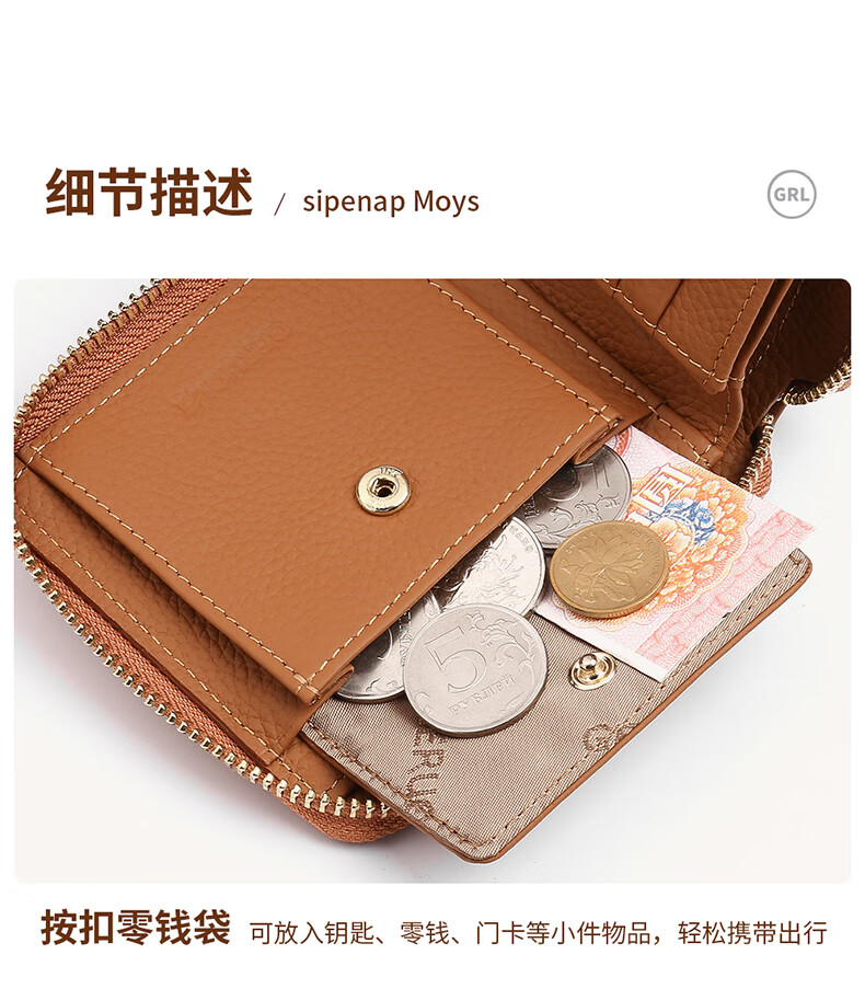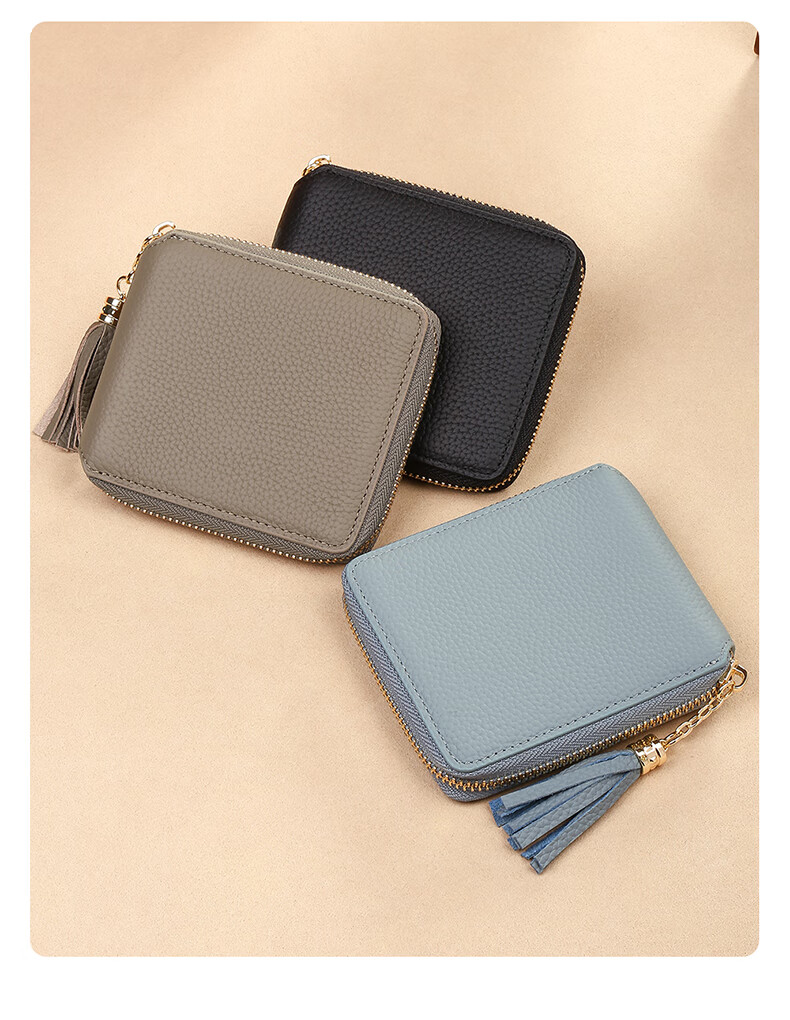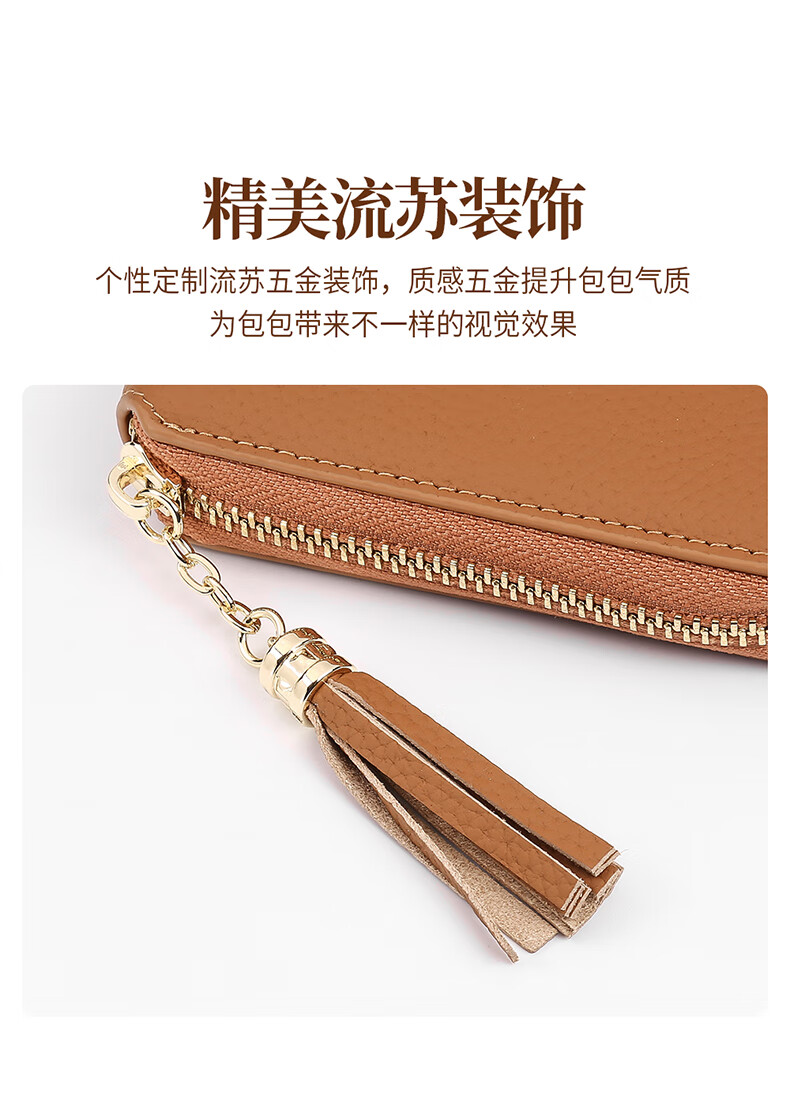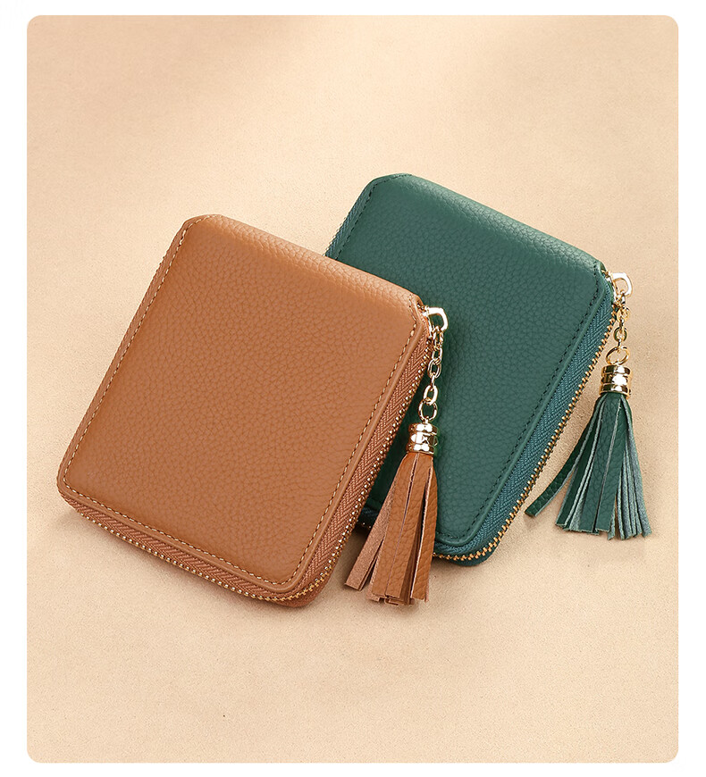 Gorola genuine leather wallet for women 2025 new fashion simple versatile coin purse card holder integrated zipper tassel driver's license Mocha brown - first layer cowhide anti-theft brush
