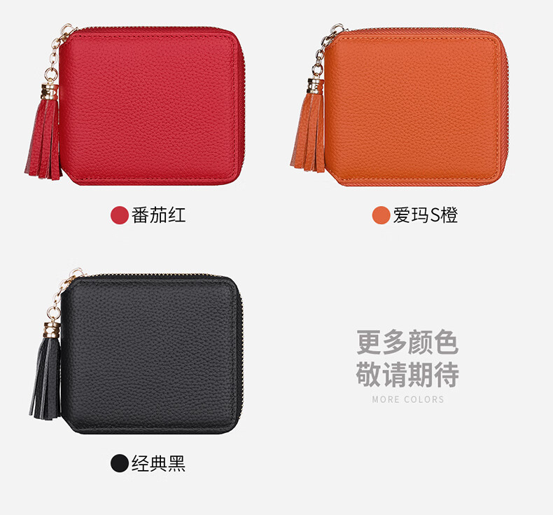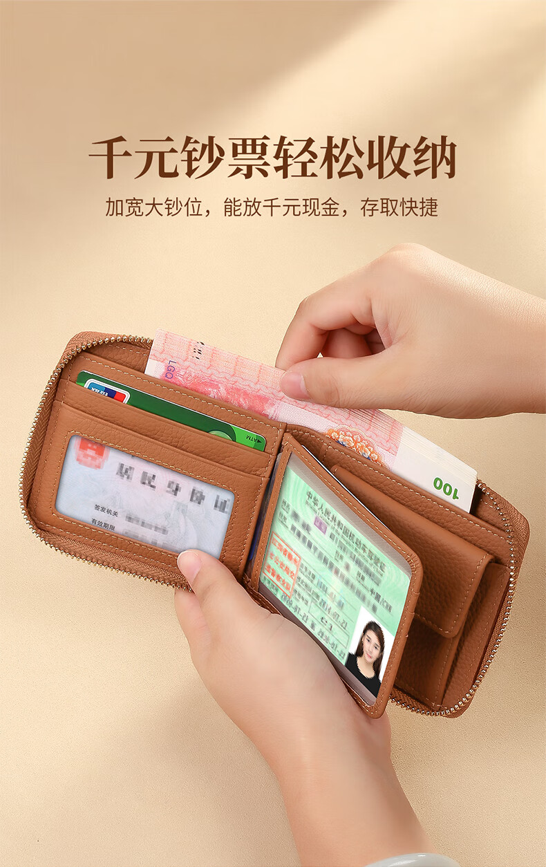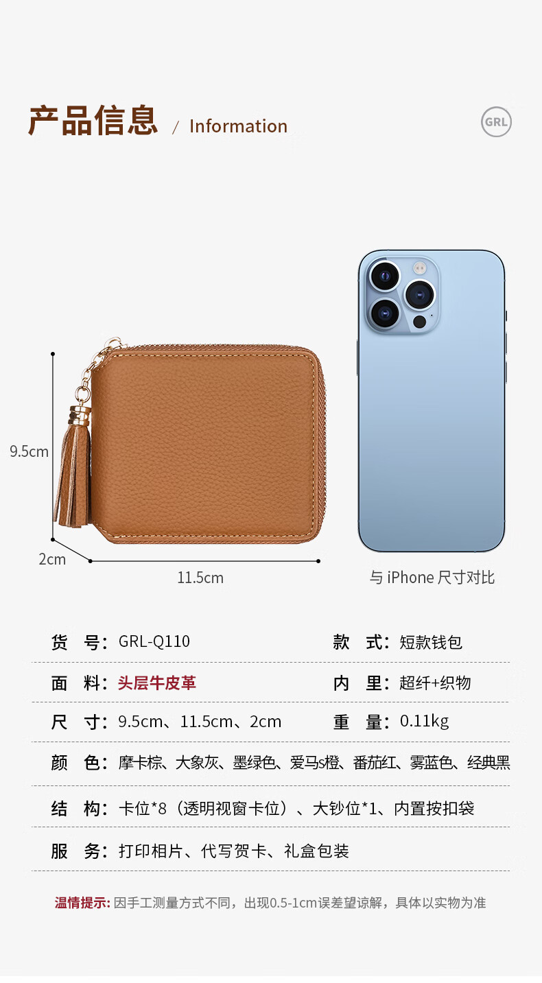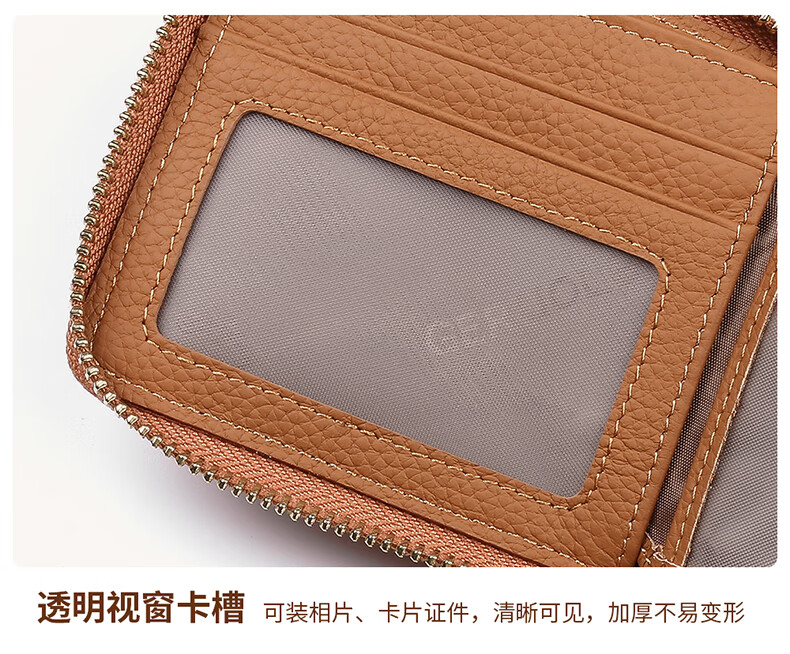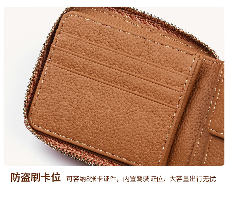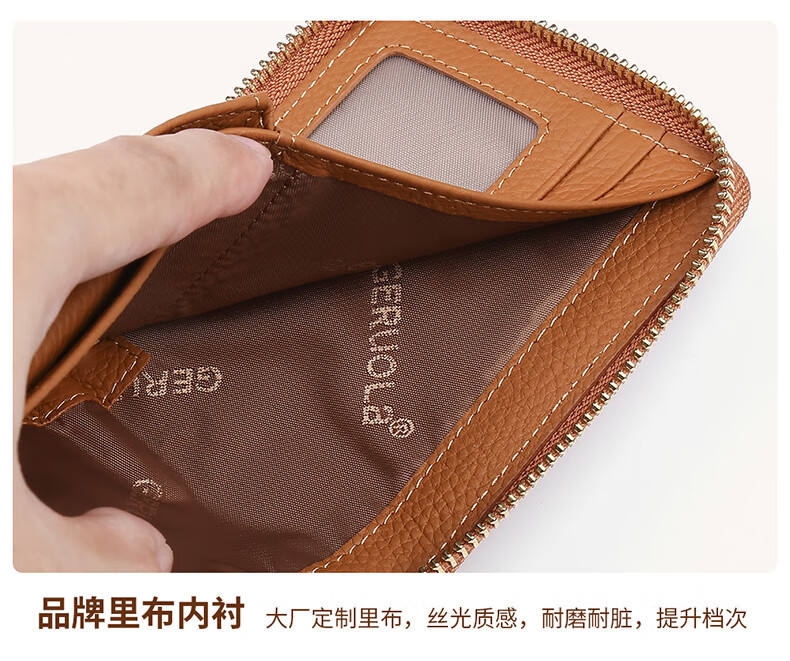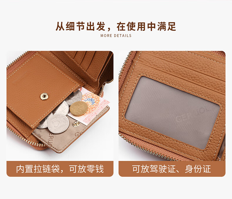 Gorola genuine leather wallet for women 2025 new fashion simple versatile coin purse card holder integrated zipper tassel driver's license Mocha brown - first layer cowhide anti-theft brush