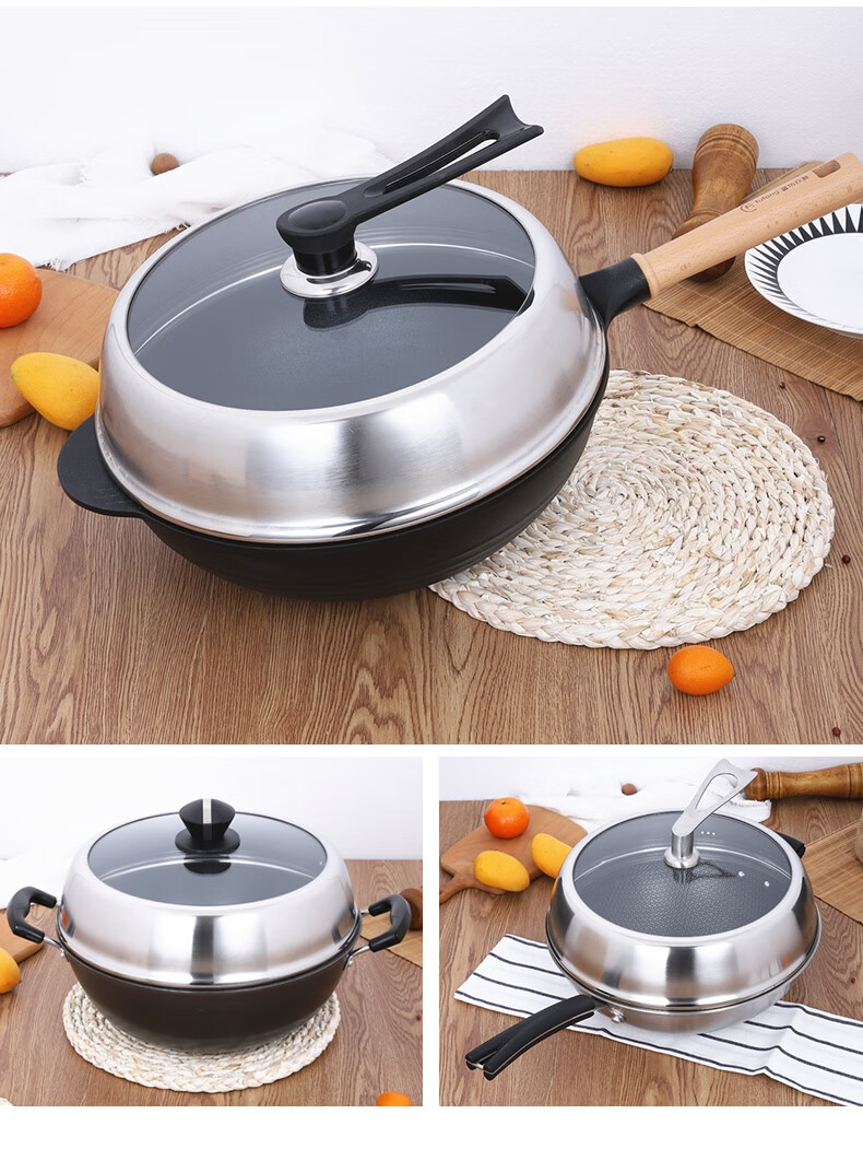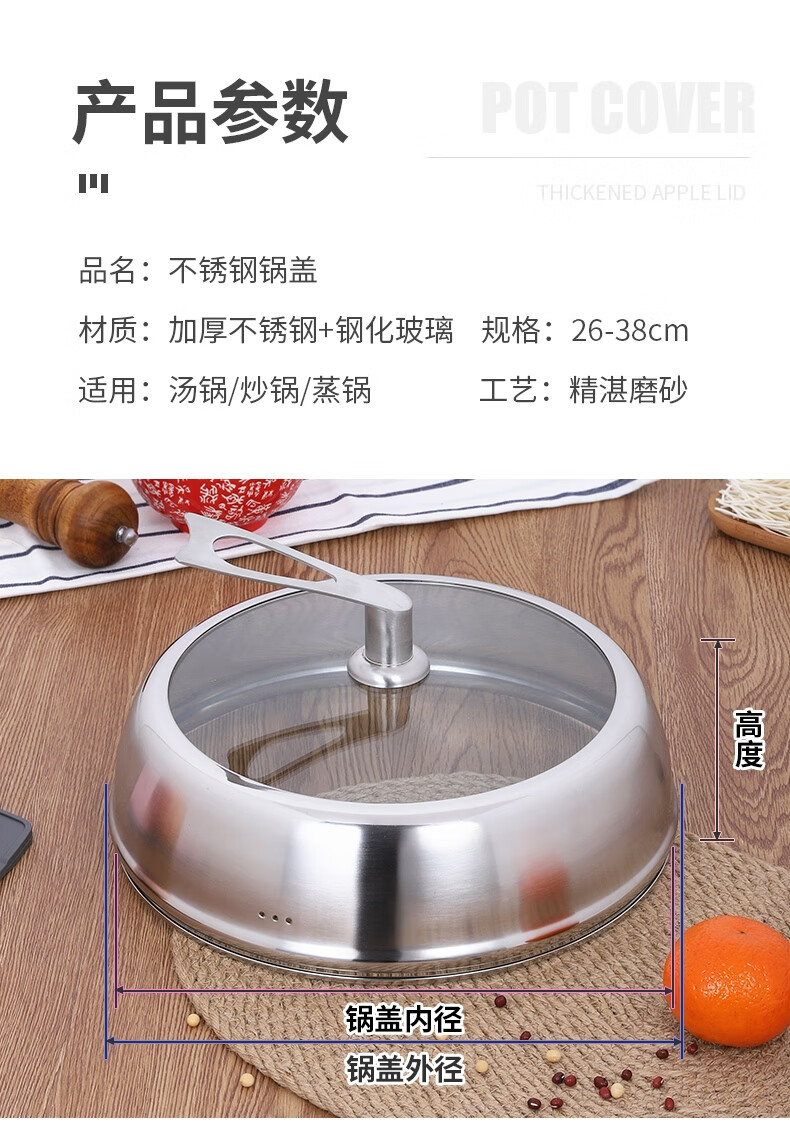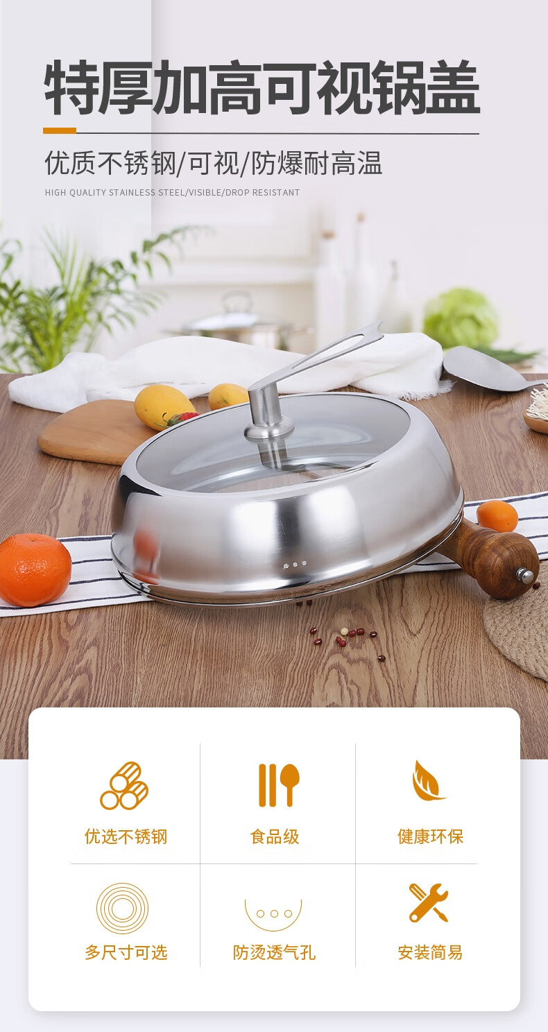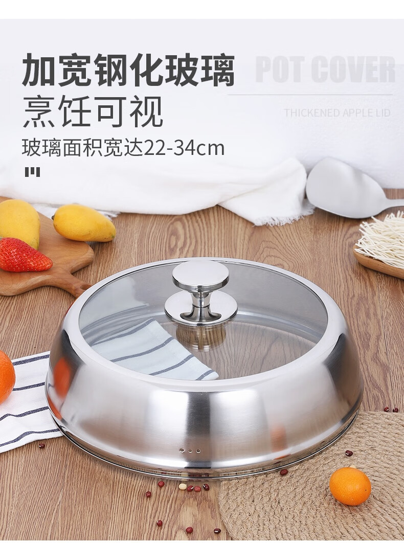 COOKER KING heightened pot lid household thickened stainless steel tempered glass pot lid wok steamer lid glass lid universal thickening and height 36 cm all steel can stand please measure