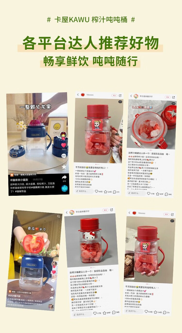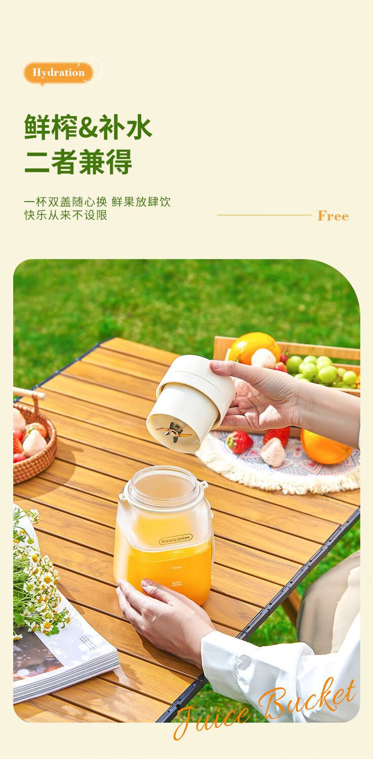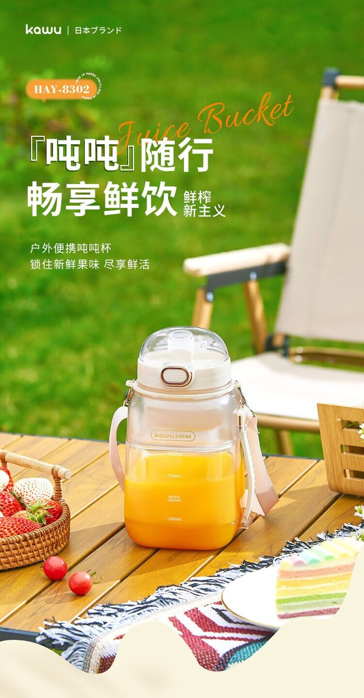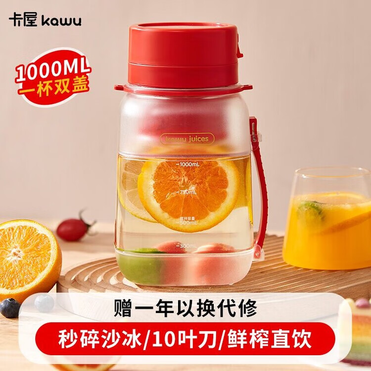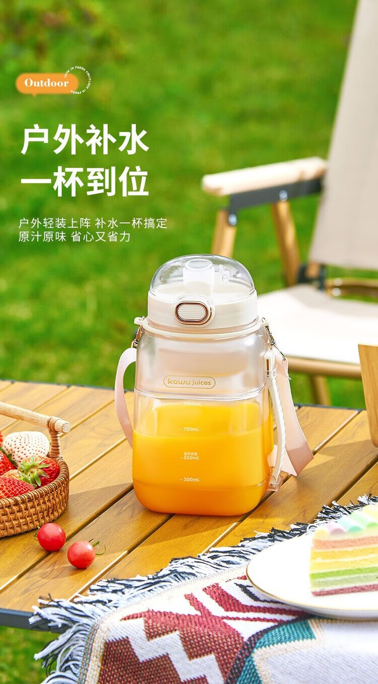 Kawu Juicer Home Small Juicing Cup Portable Blender Large Capacity Ice Crusher Juice Cup Ton Bucket 1000ML (Send Straw + Shoulder Strap) - Peacock Blue $10 - Double Cups, Double Covers - Free Data Cable