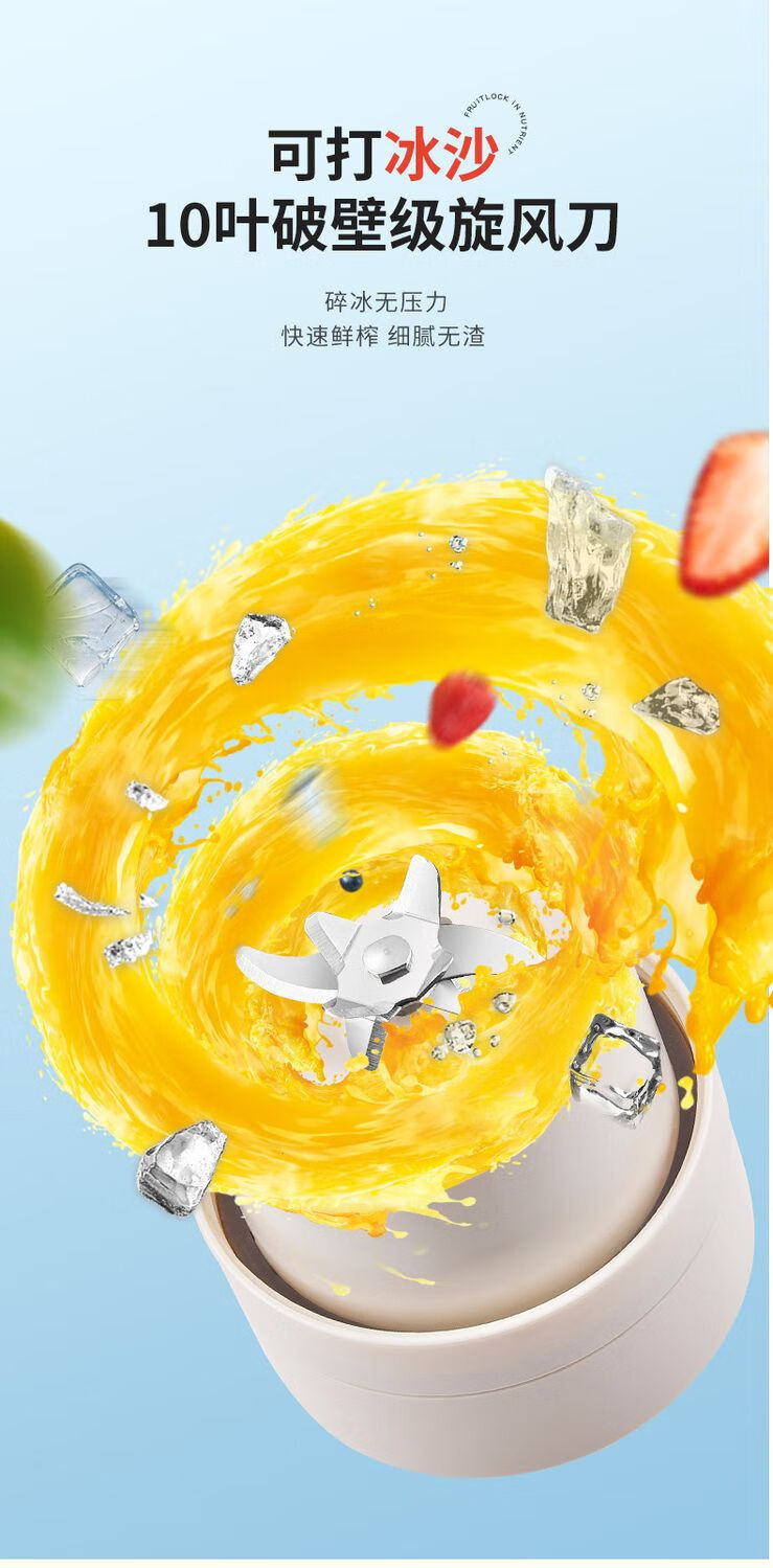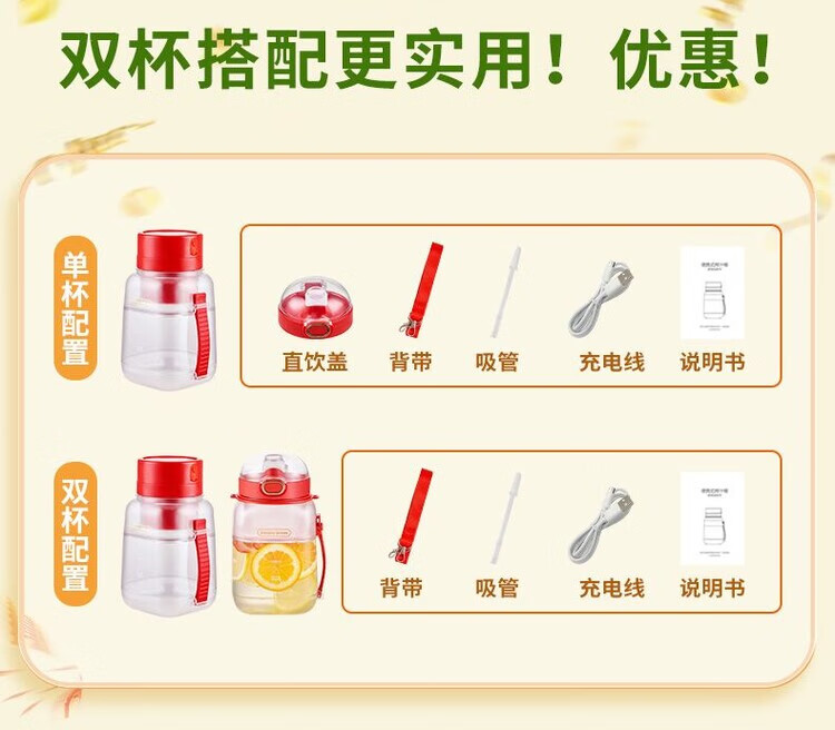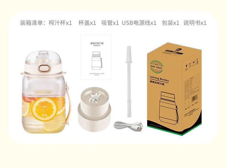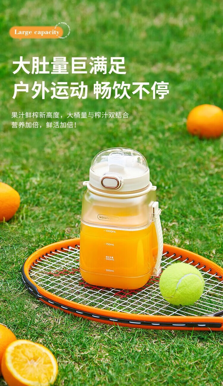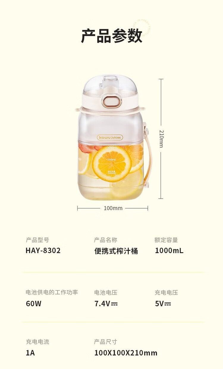 Kawu Juicer Home Small Juicing Cup Portable Blender Large Capacity Ice Crusher Juice Cup Ton Bucket 1000ML (Send Straw + Shoulder Strap) - Peacock Blue $10 - Double Cups, Double Covers - Free Data Cable