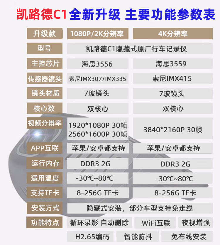 Kailude C1 driving recorder 4K dual lens is specially used for 2012-2025 Haval H6 original factory without wiring