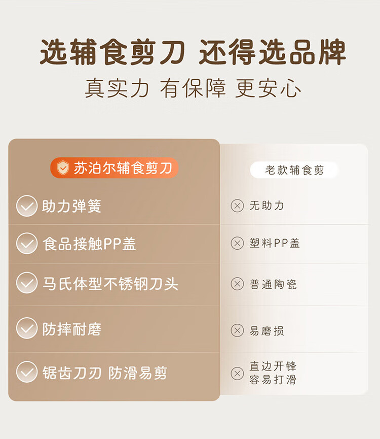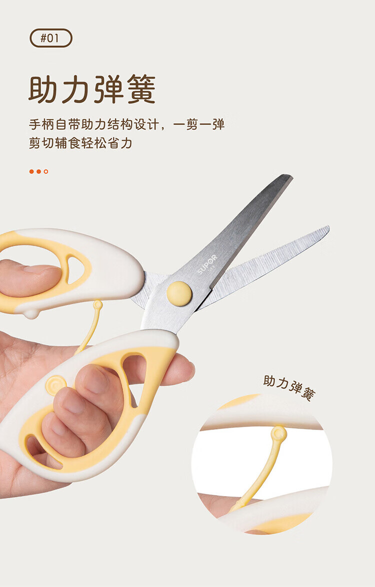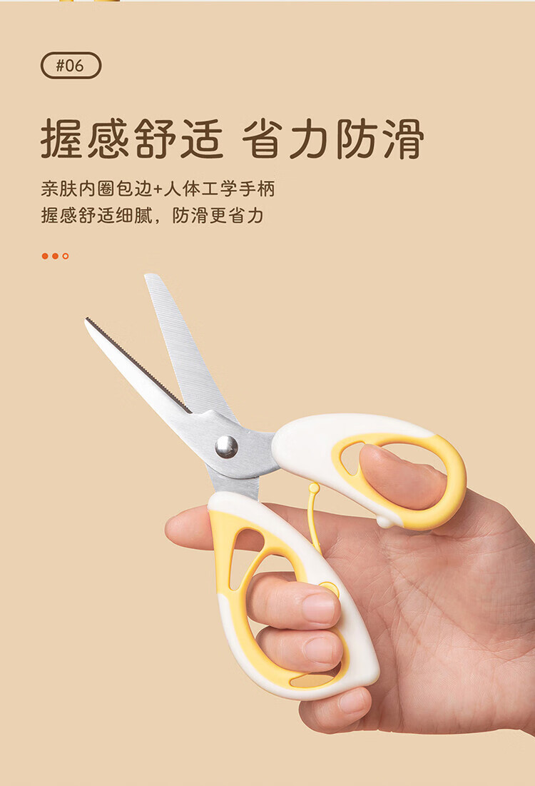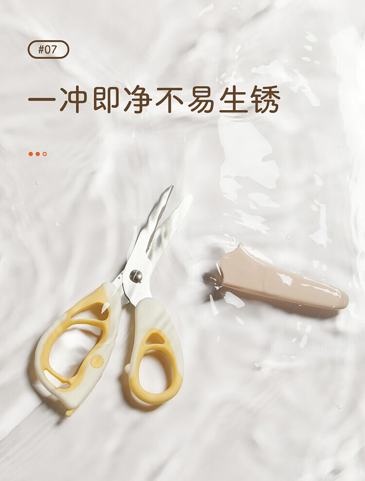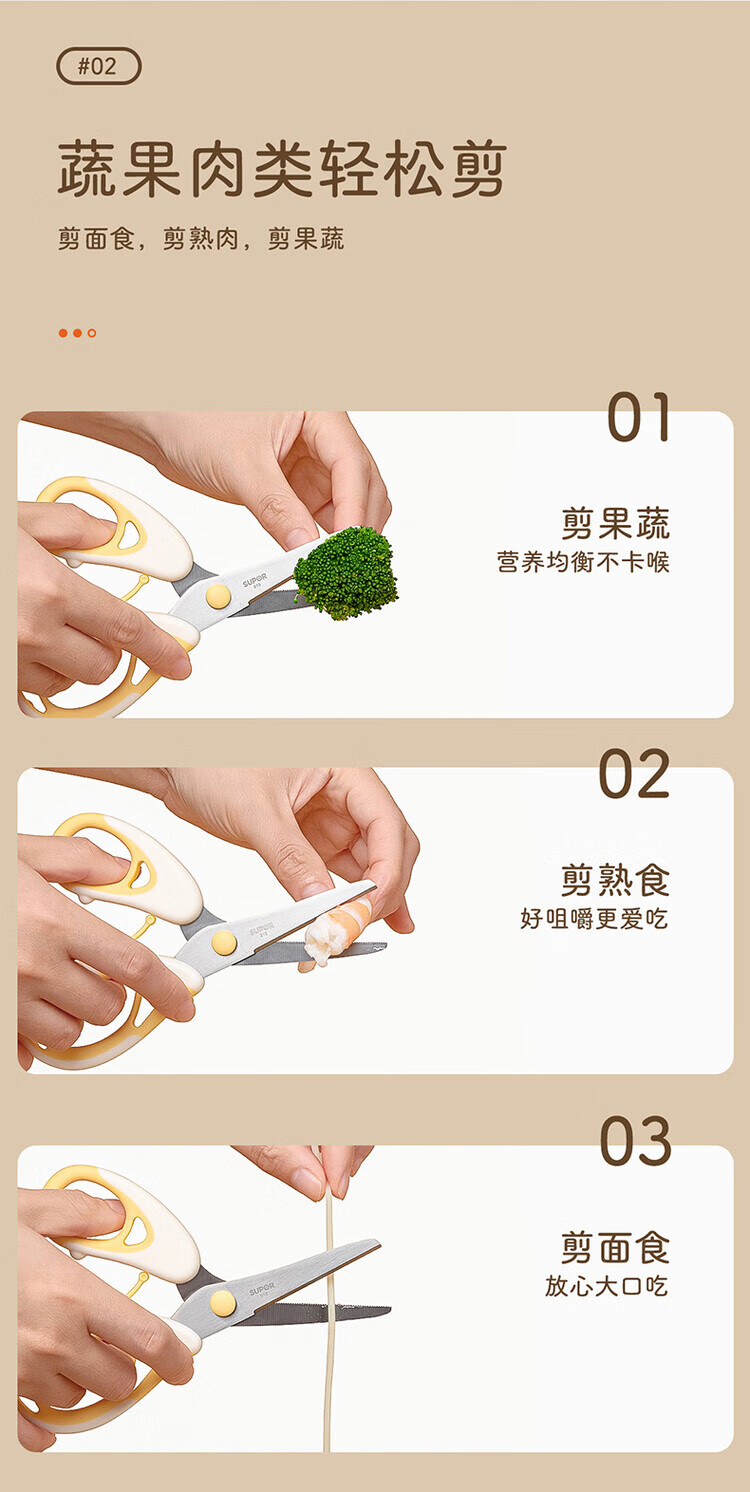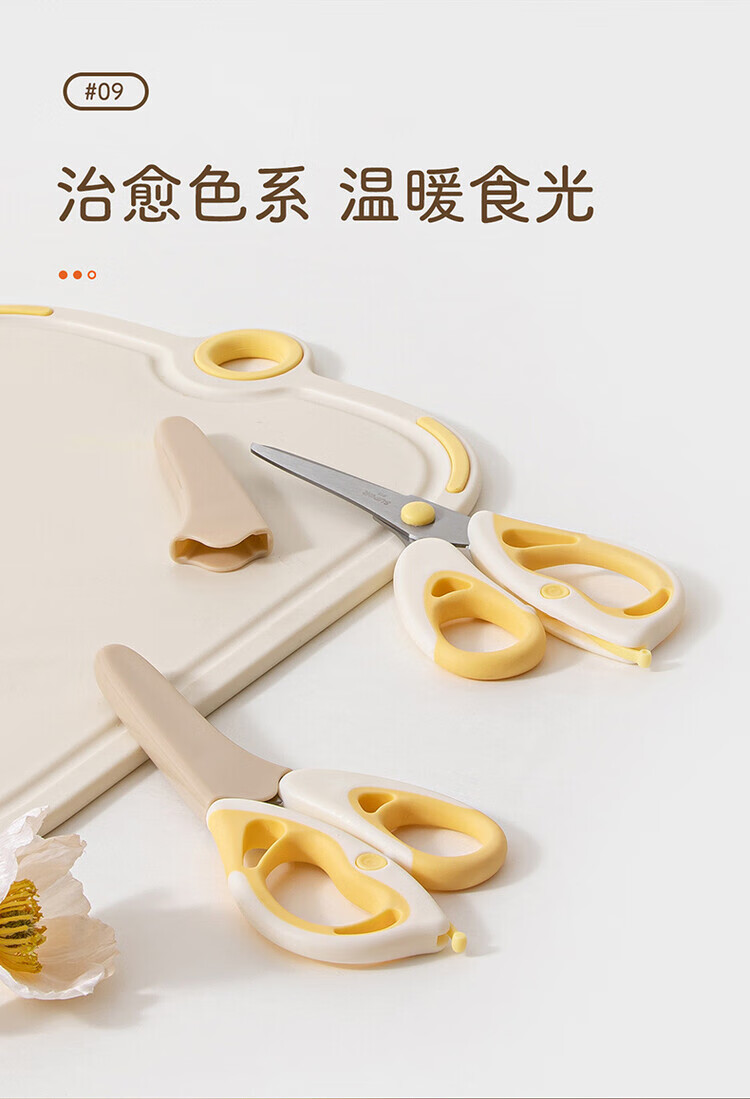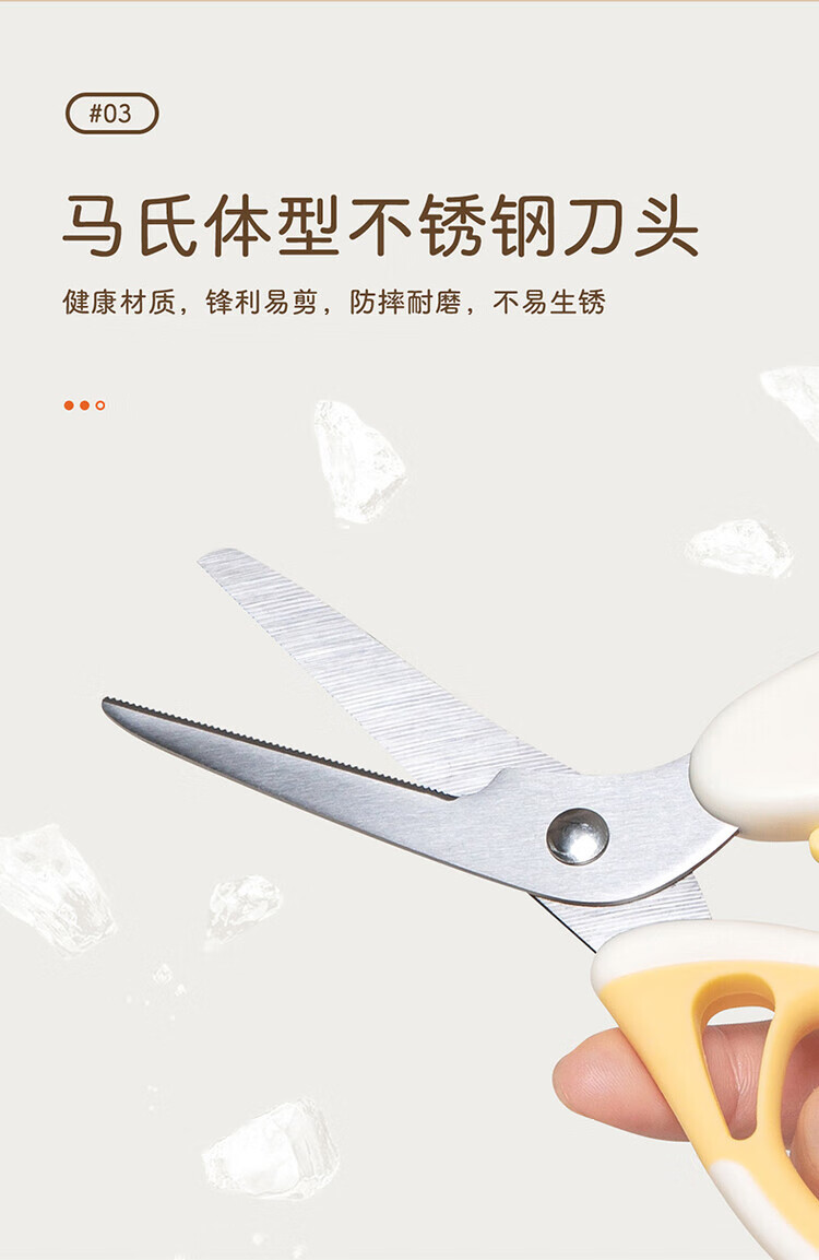 Stainless steel non-staple food scissors baby special meat cutting baby knife tool set KGF01AP10 light yellow