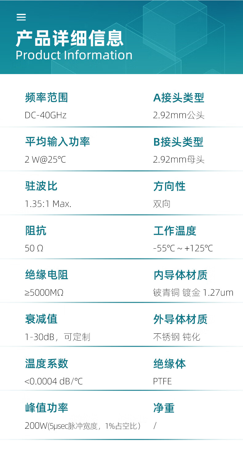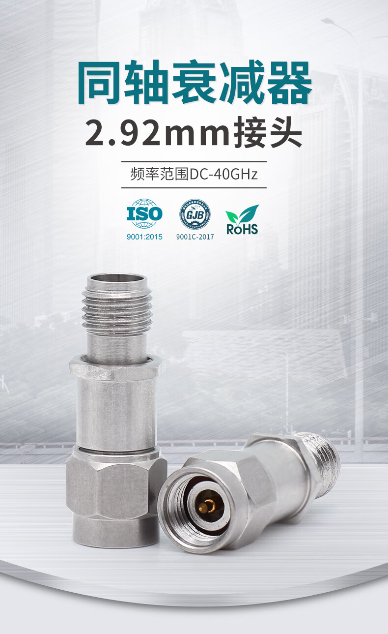 XINQY Xinqiyuan Technology 2.92mm RF coaxial attenuator 2W 0-40GHz high frequency millimeter wave K head 10dB/30dB stainless steel fixed attenuation head 2.92JKS-40-2W attenuation value 20dB