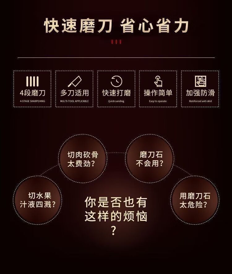 Zishi 3-second knife sharpening tool from Germany, manual sharpening stone, whetstone, household kitchen knife, quick and easy to sharpen, 4.0 special offer, high configuration, high hardness, ceramic sheet, tungsten steel, diamond model, 4 sections