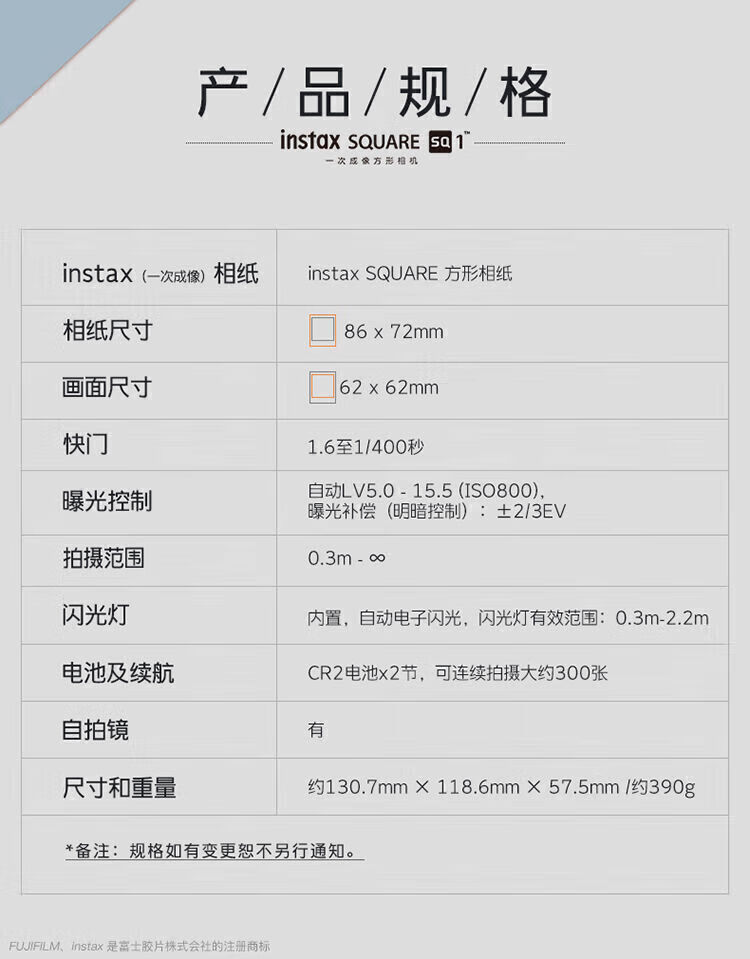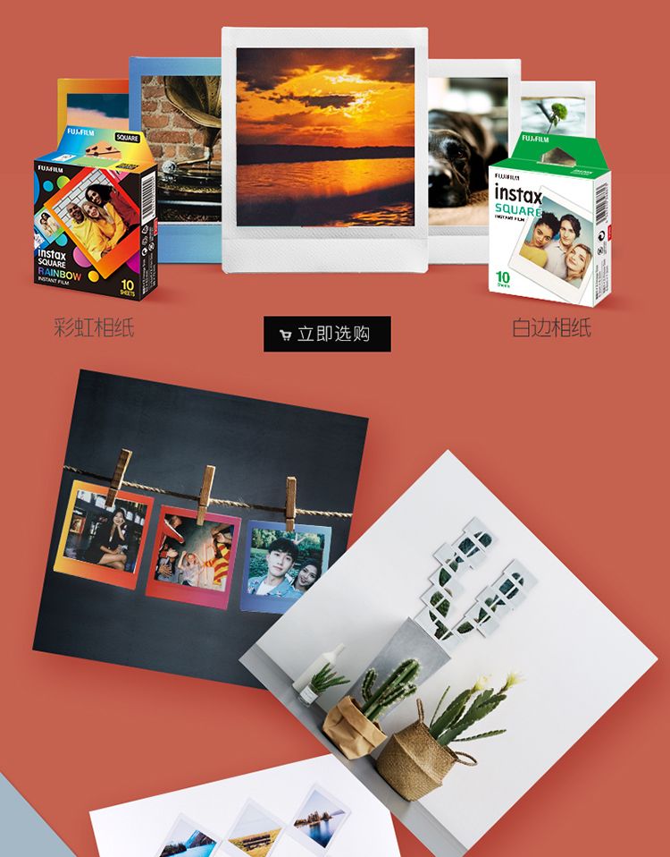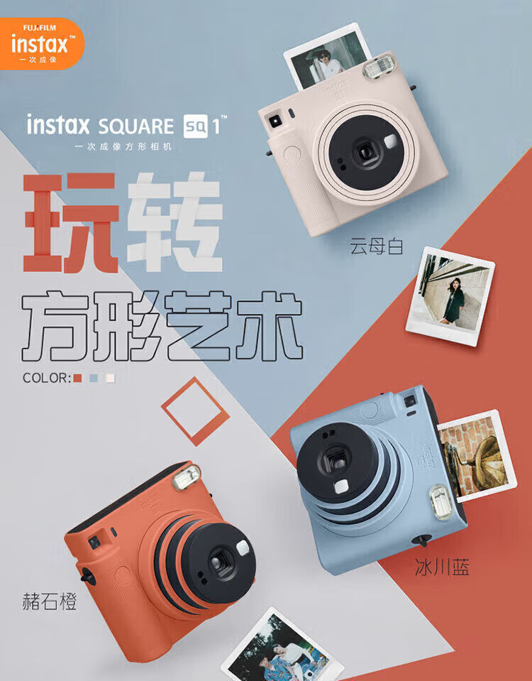 Fuji instax Polaroid SQUARE SQ1 one-time imaging camera square retro camera ocher orange package three