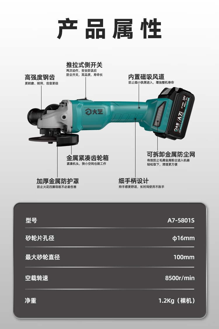 Dayi Dayi 5801S angle grinder brushless lithium electric polisher multi-function cutting machine polishing hand grinder genuine 8.0Ah dual battery standard charger