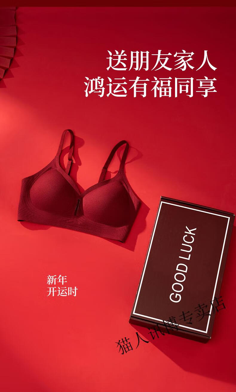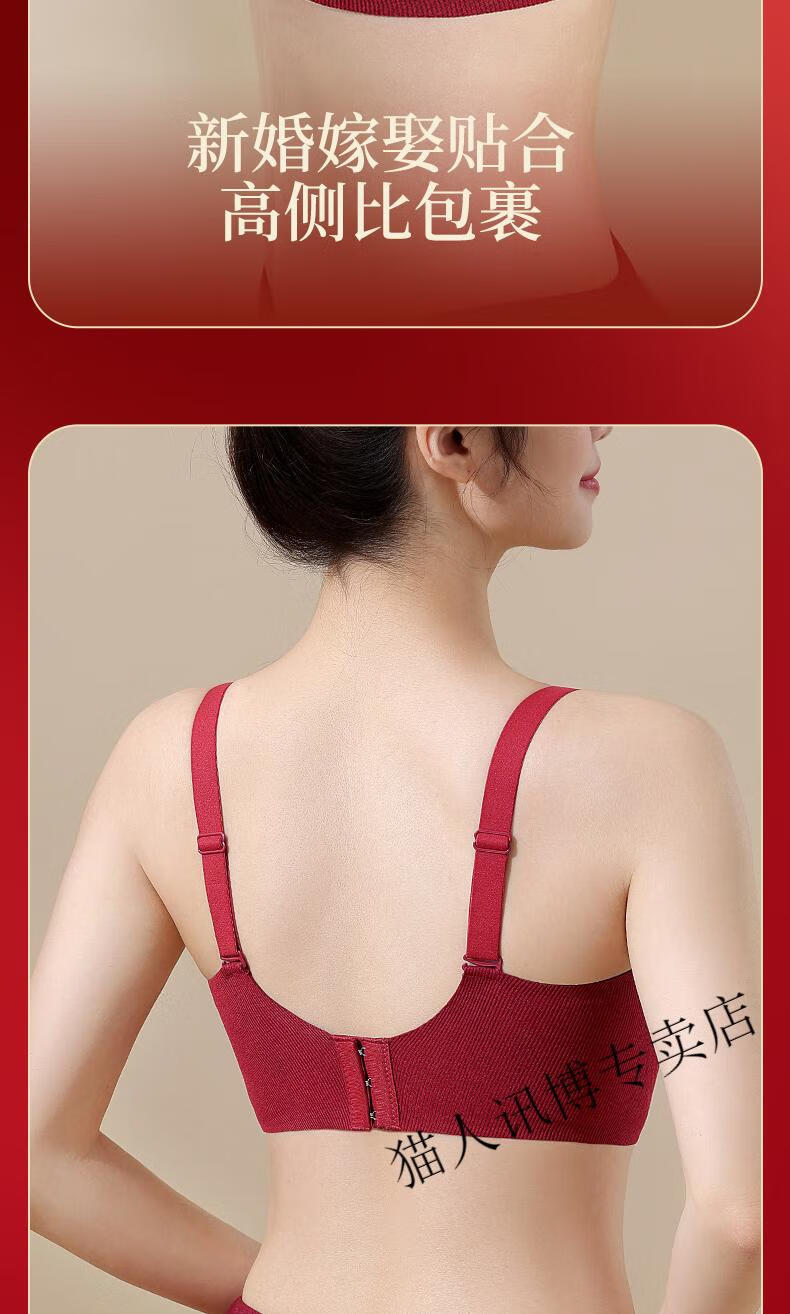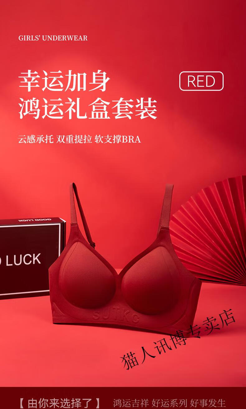 MiiOW Anchor Red Women's Bra Set Small Breast Push-Up Wireless Side Clamping Anti-Sagging Seamless Gift Box Bra ZHE3189A (4701NK) Single Set + Gift Box* L (Recommended 105-120 catties)