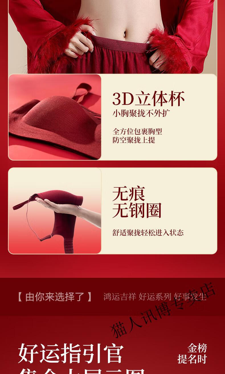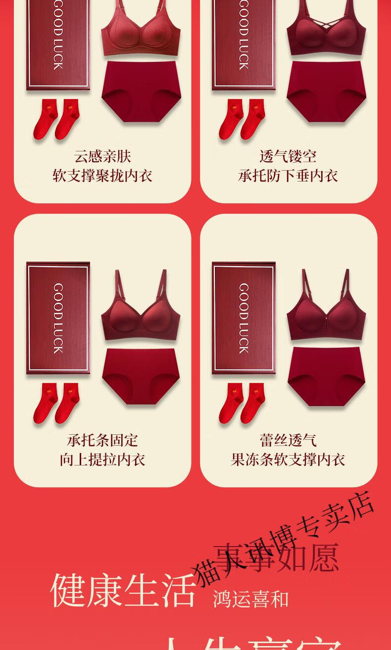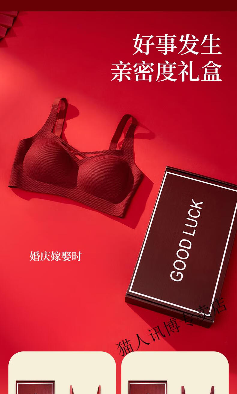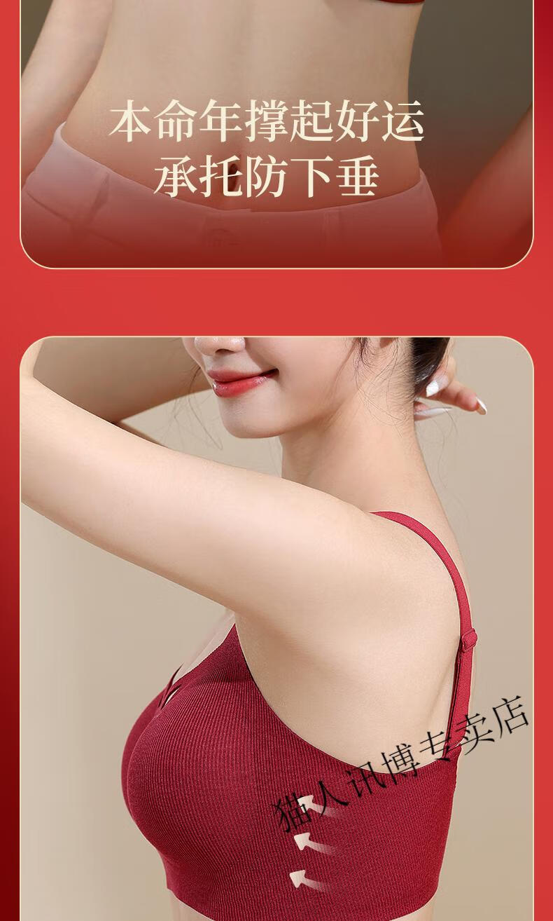 MiiOW Anchor Red Women's Bra Set Small Breast Push-Up Wireless Side Clamping Anti-Sagging Seamless Gift Box Bra ZHE3189A (4701NK) Single Set + Gift Box* L (Recommended 105-120 catties)